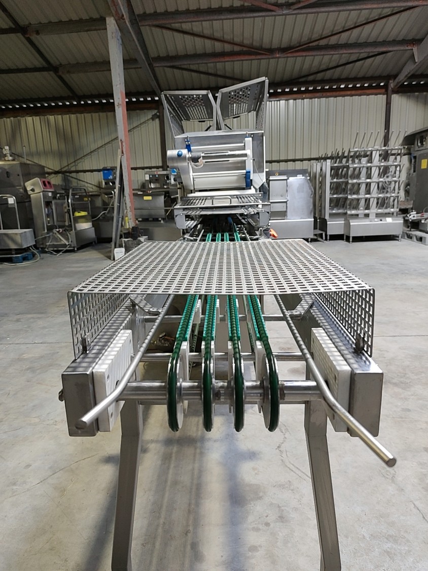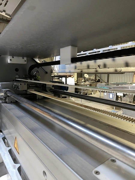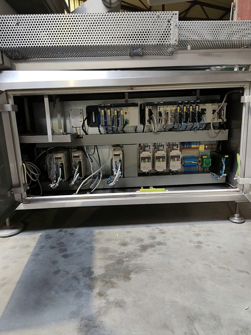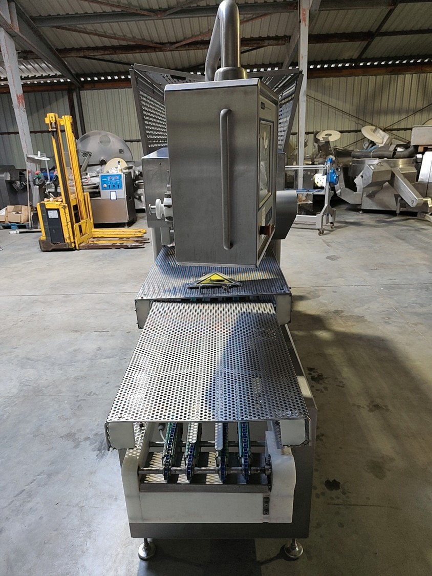 Sealpac traysealer, model: 800+, serial number: TVG 01 1124 01, year of construction: 2004, 400 / 230 V, 3 Ph, 50 Hz, 10 kW, weight: 2000 kg, dye dimensions: (6x) 170 mm x 130 mm, total dimensions: 6600 mm x 900 mm x 2200 mm. Including trolley for dyes, dimensions 1600 mm x 1000 mm x 1400 mm.