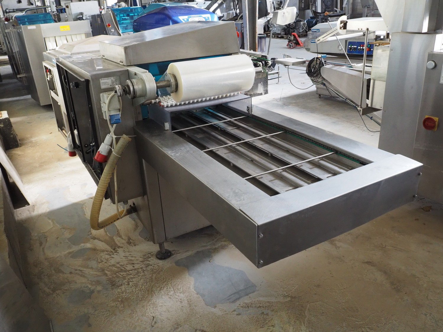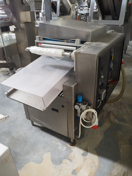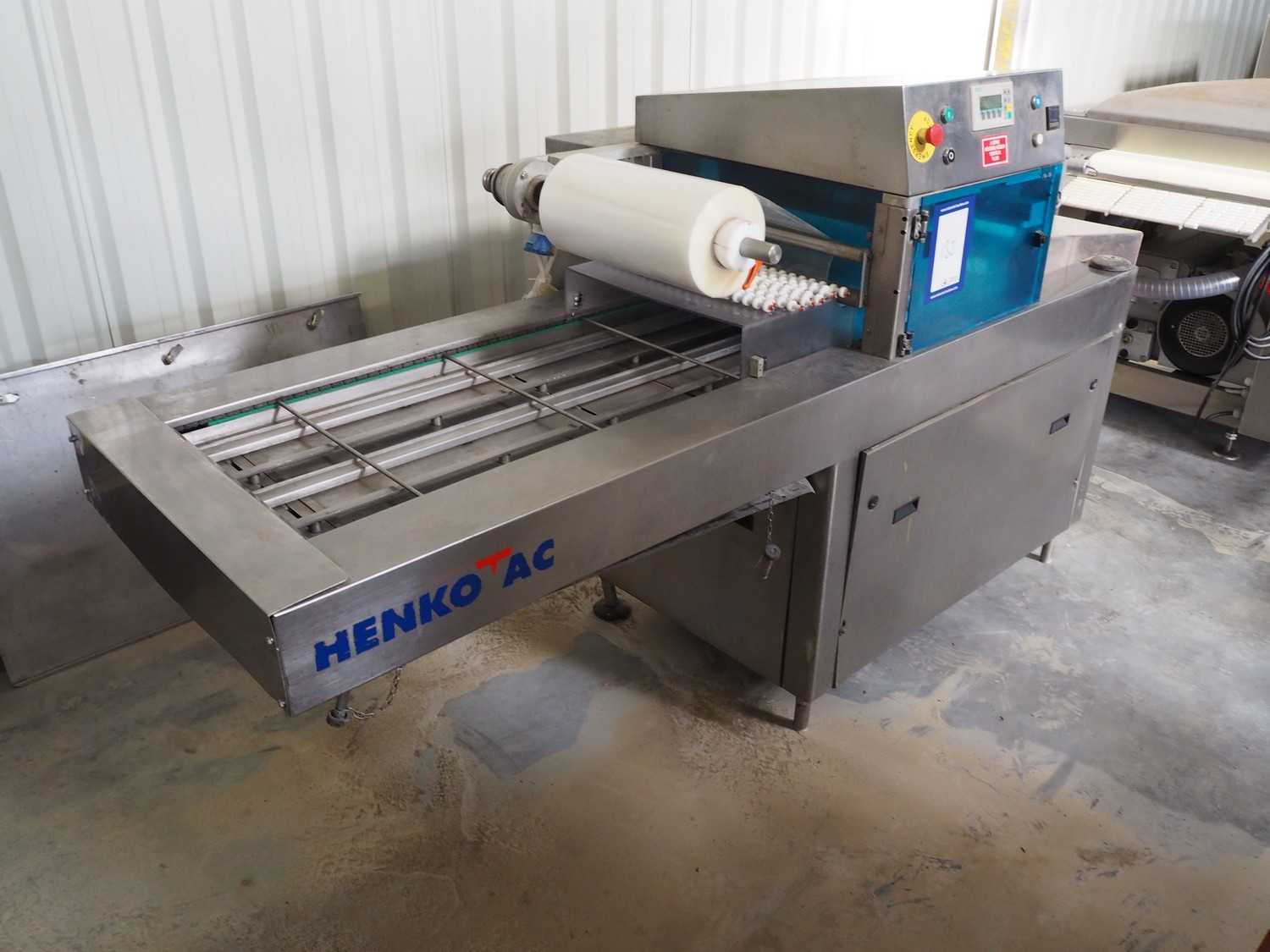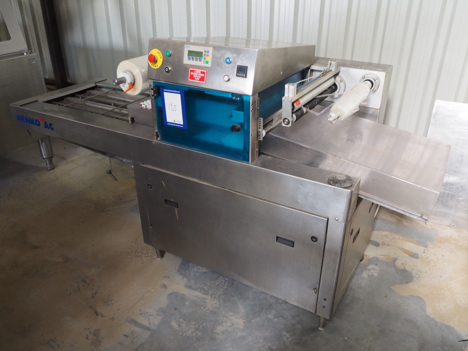 Henkovac traysealer, model: TPS-950, serial number: 29.07.10.22, year of construction: 2007, 400 V, 3 Ph, 50 Hz, 15 A, weight: 500 kg, dimensions dyes: (2x) 250 mm x 165 mm, outfeed roller conveyor, roller width: 490 mm, total dimensions: 2650 mm x 1040 mm x 1400 mm. Missing cover.