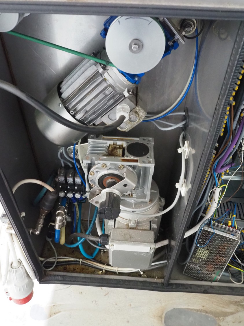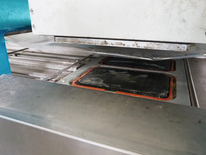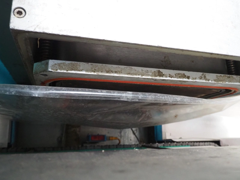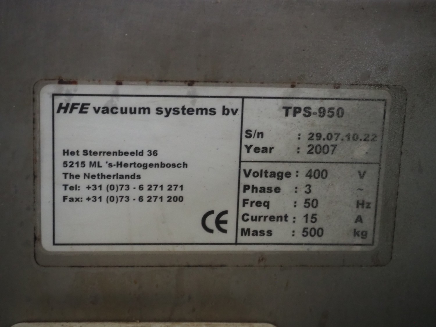 Henkovac traysealer, model: TPS-950, serial number: 29.07.10.22, year of construction: 2007, 400 V, 3 Ph, 50 Hz, 15 A, weight: 500 kg, dimensions dyes: (2x) 250 mm x 165 mm, outfeed roller conveyor, roller width: 490 mm, total dimensions: 2650 mm x 1040 mm x 1400 mm. Missing cover.