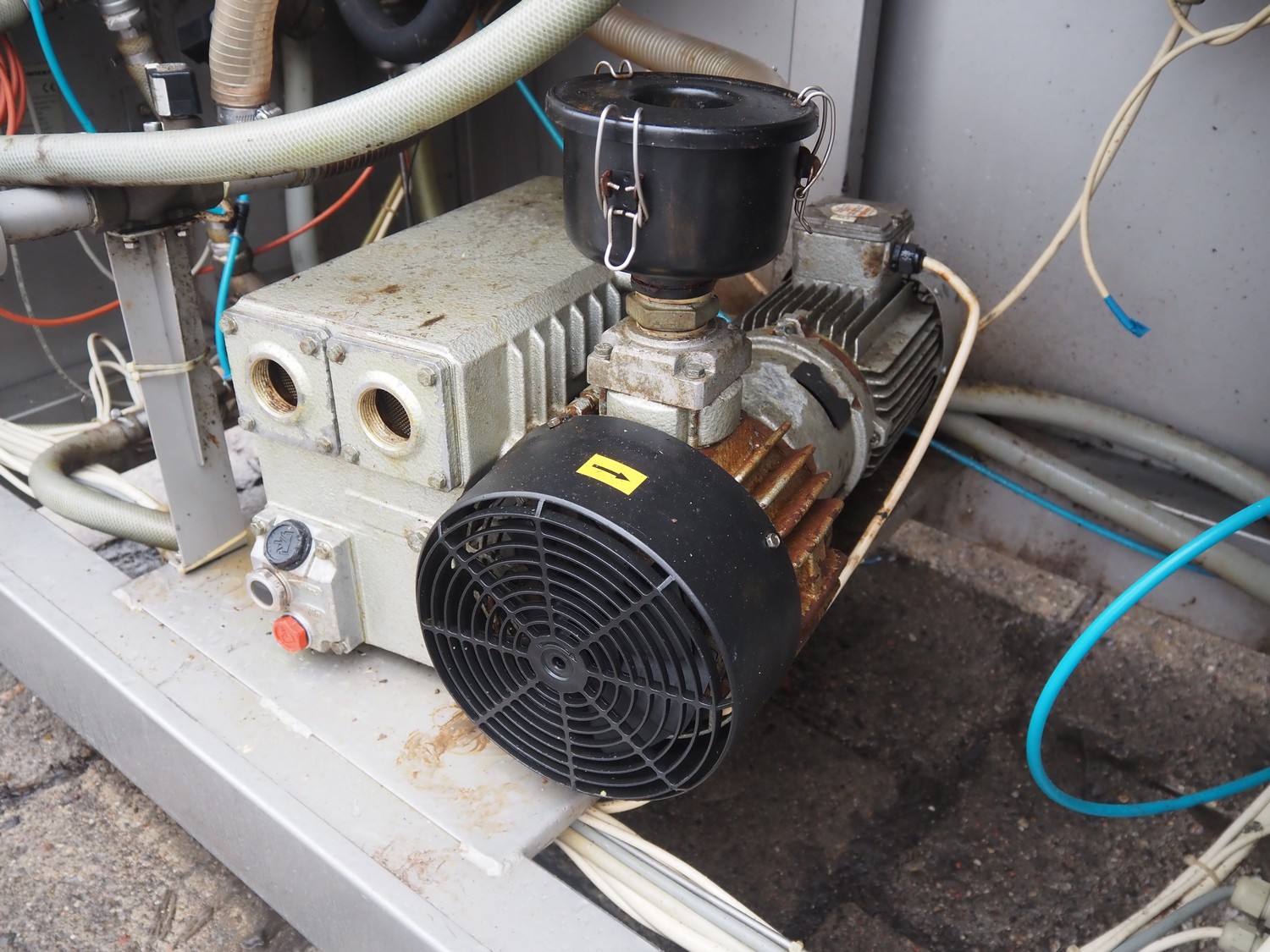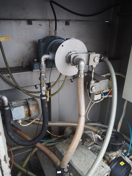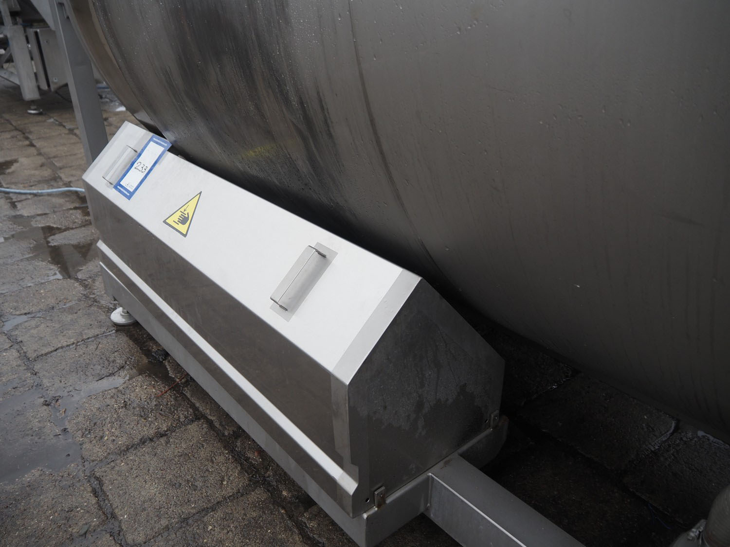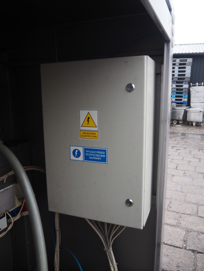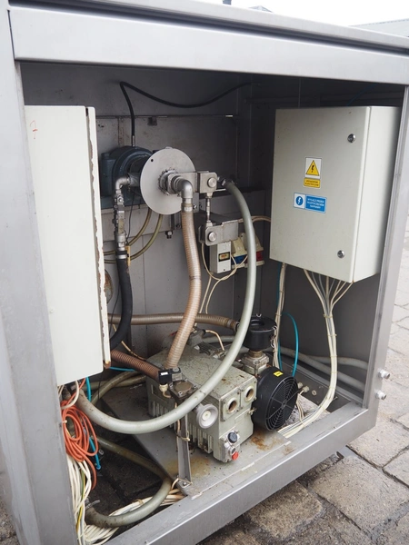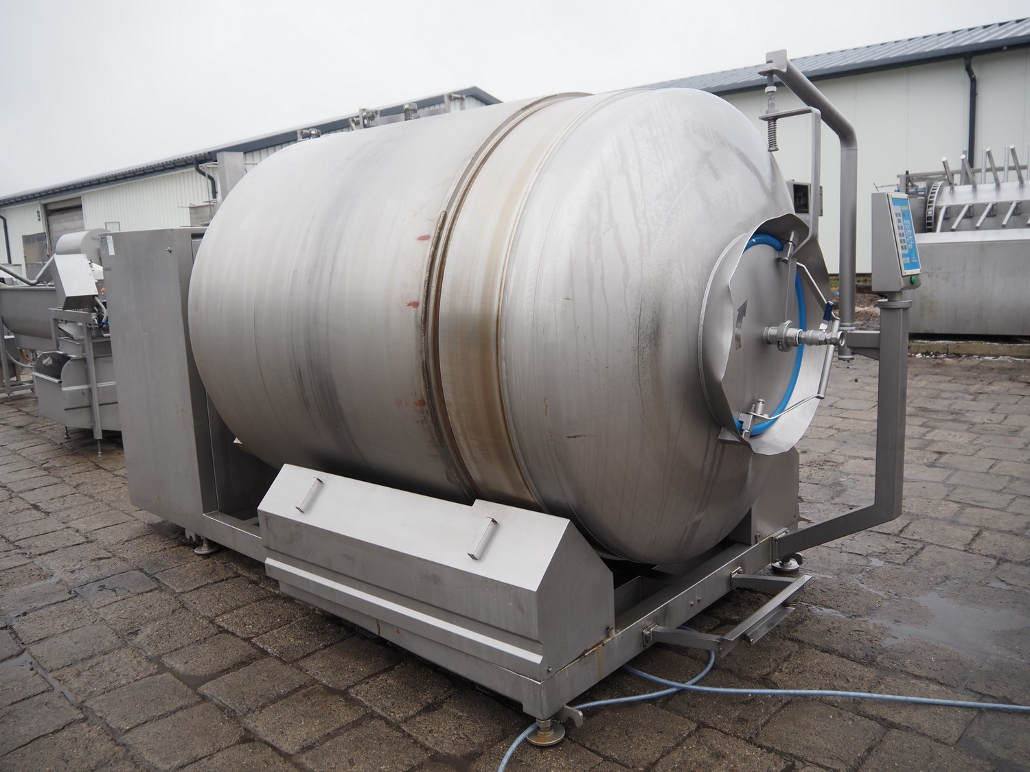 Nowicki s/s vacuum tumbler, type: MA-3600 PSCH, serial number: 22703025, year of construction 2003, 400 V, 3 Ph, 5.3 / 11.1 kW, capacity: 3600 liter, weight: 2000 kg, clearance: Ø 600 mm, with Busch vacuum pump, type: RC 0063 E 501, serial number: 03007773, 20 hPa, total dimensions: 3200 mm x 1750 mm x 2050 mm.