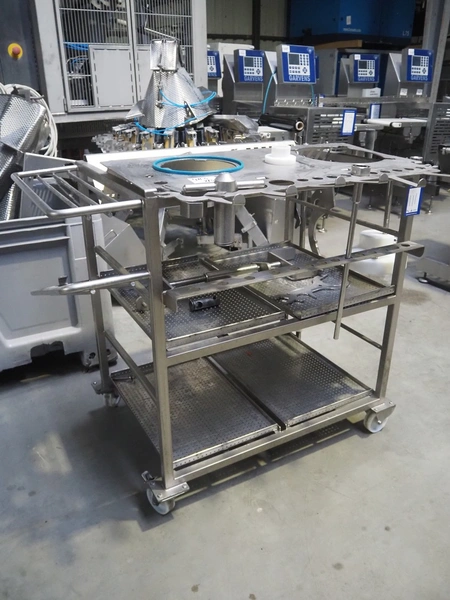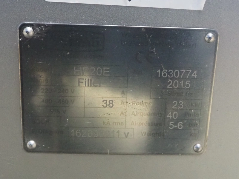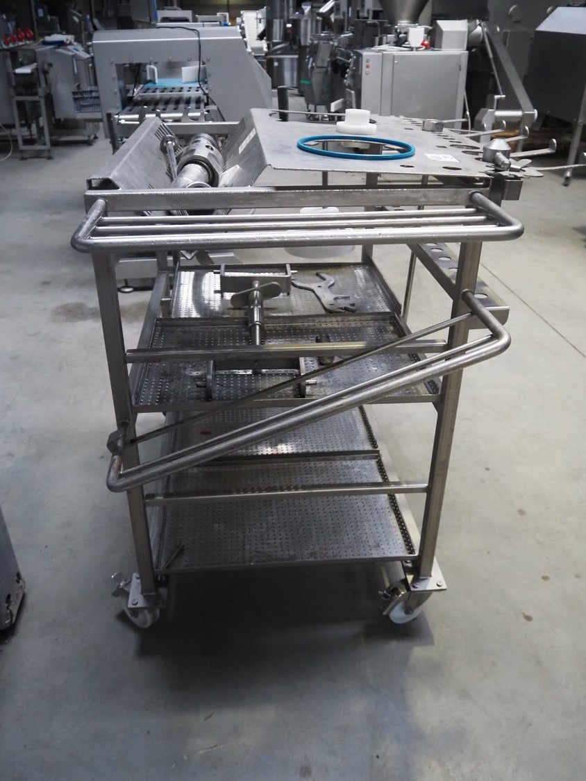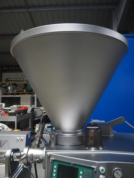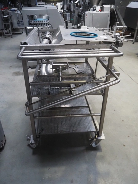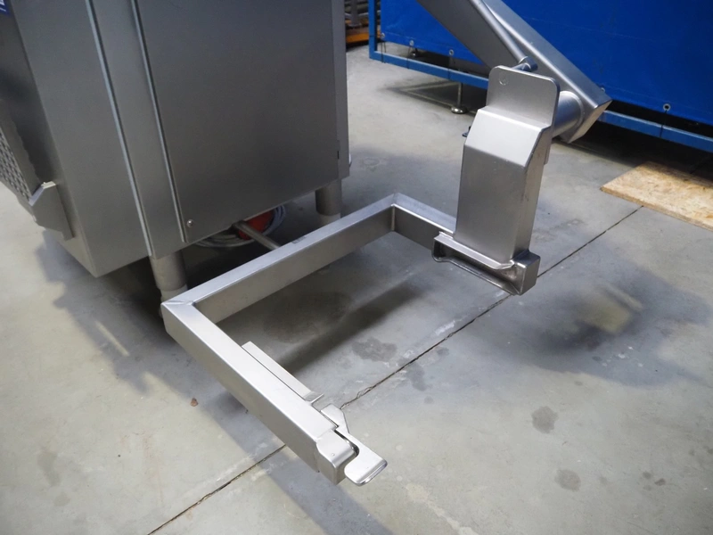 Vemag Maschinenbau GmbH vacuum filling machine with lifter for 200 liter meat bins, model: PH20E, number: 1630774, year of construction: 2015, 400-460 V, 3 Ph, 50/60 Hz, 38 A, 23 kW, dimensions: 2200 mm x 1400 mm x 2130 mm. Including s/s tool trolley.