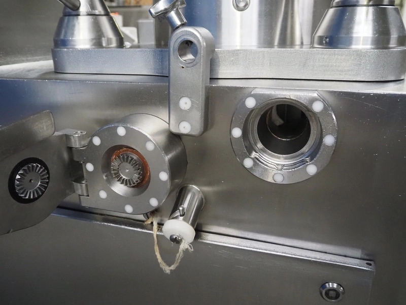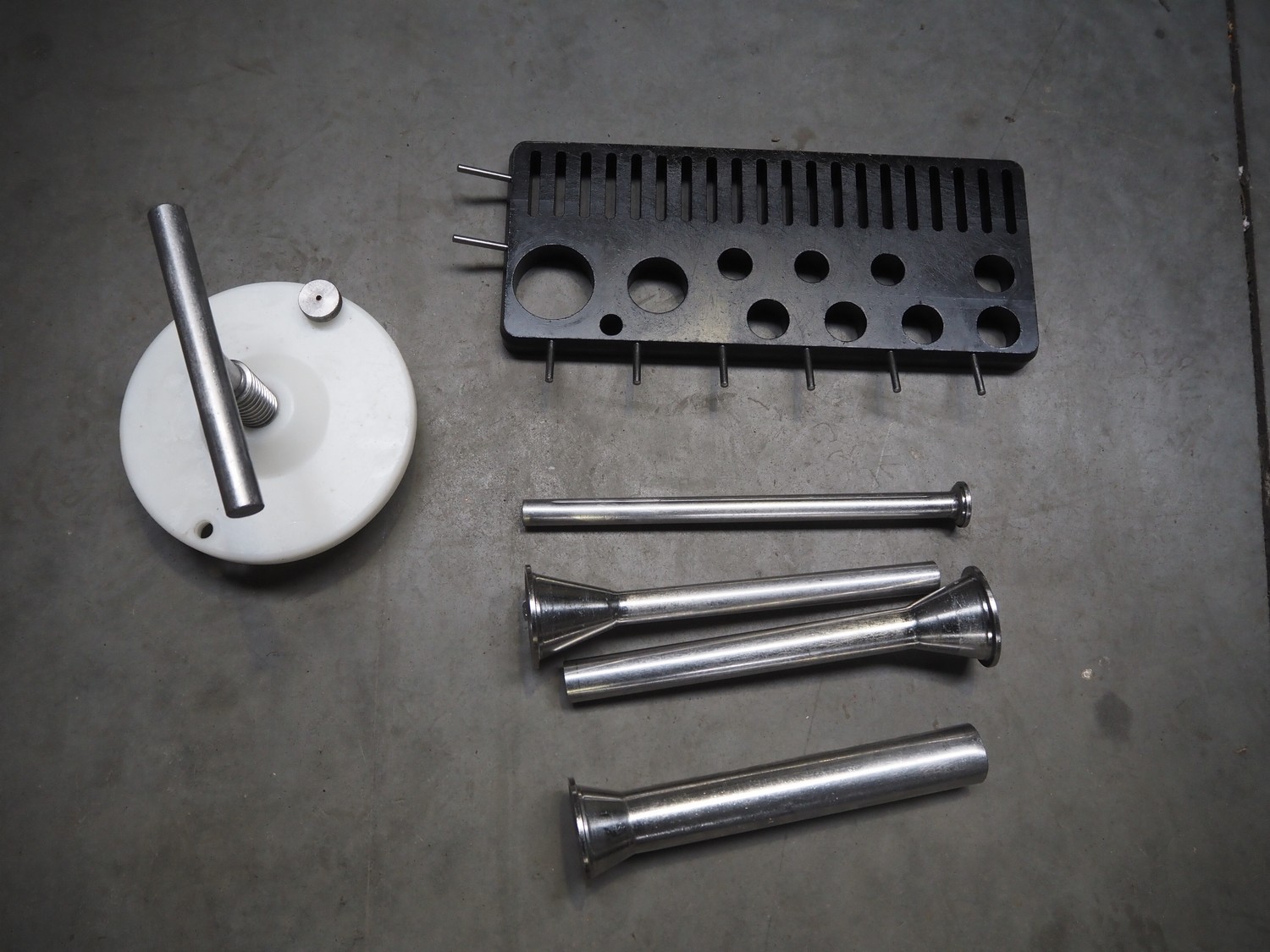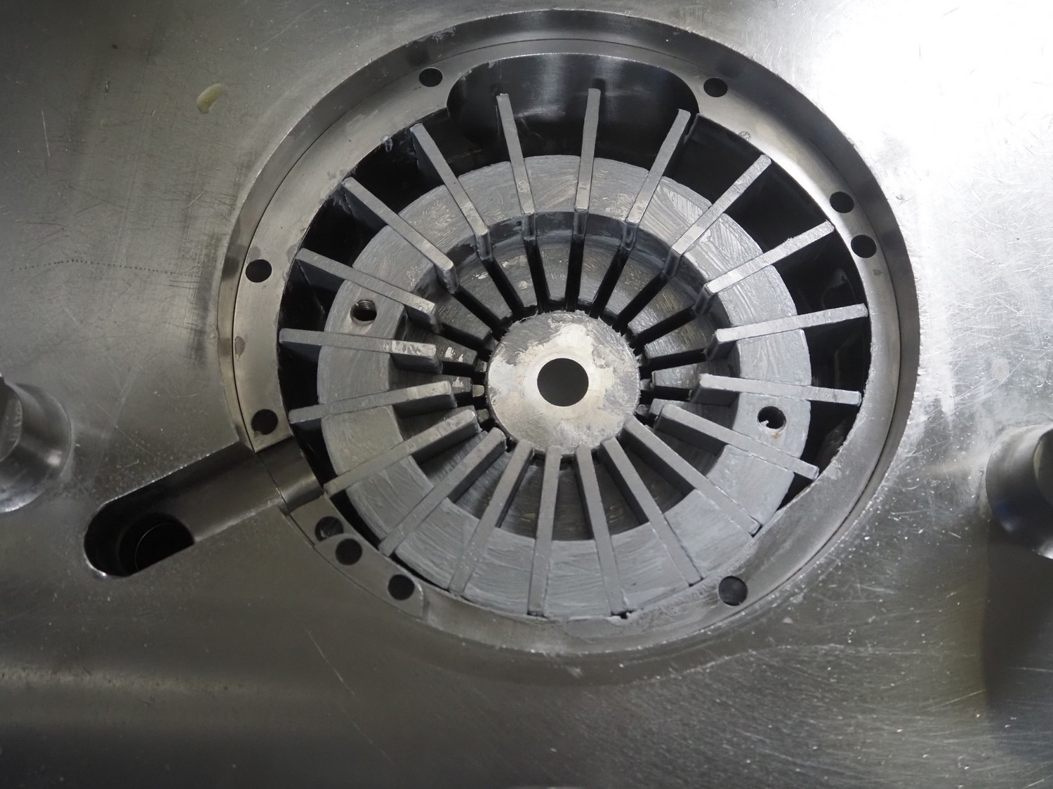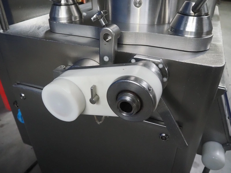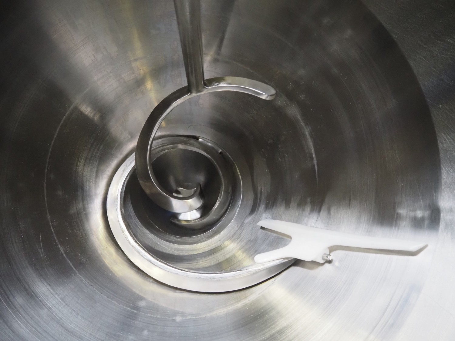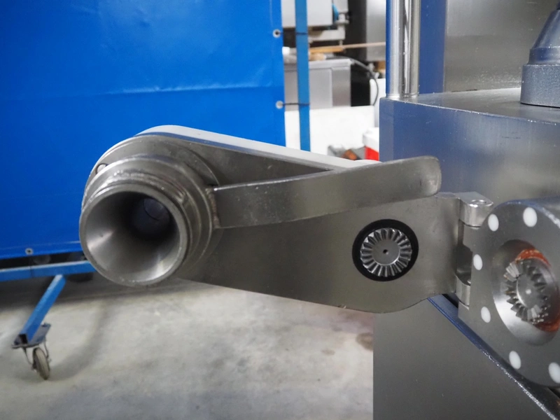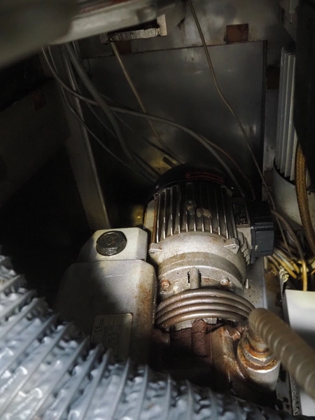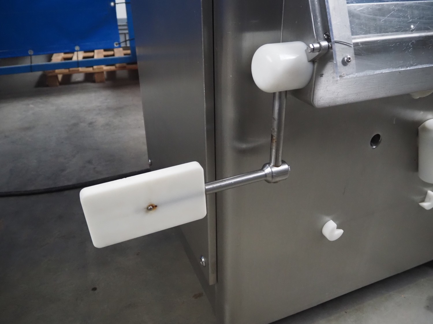Frey vacuum filling machine with lifter for 200 liter meat bins and linking attachment, type: KONTI-T250, serial number: KT250007402, 400 V, 50 Hz, 11.7 kW, with Busch vacuum pump, type: RB 0021 C 3Z3, serial number: D15150344, Vmax = 24 m³/h, total dimensions: 2100 mm x 1200 mm x 2040 mm. Including extra parts.