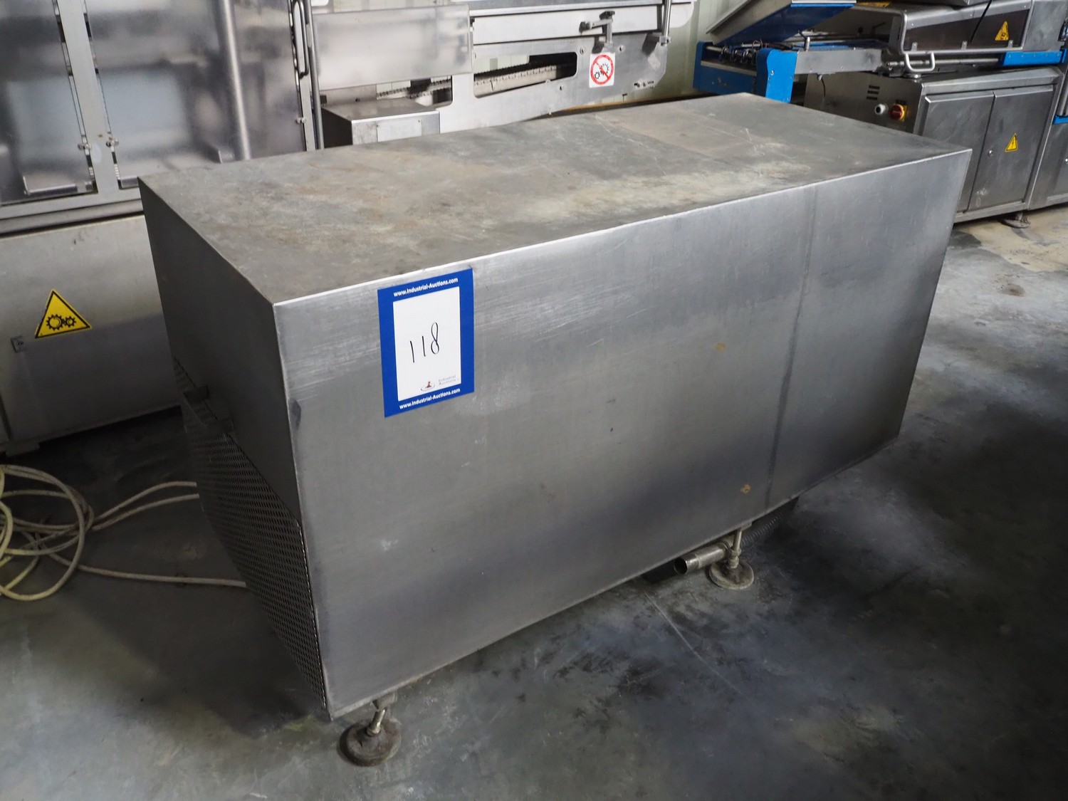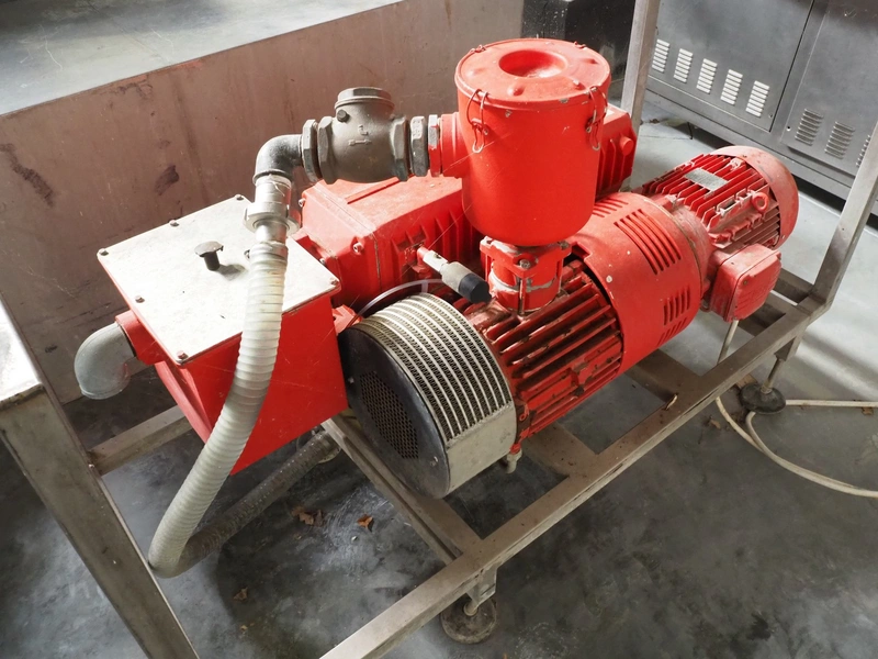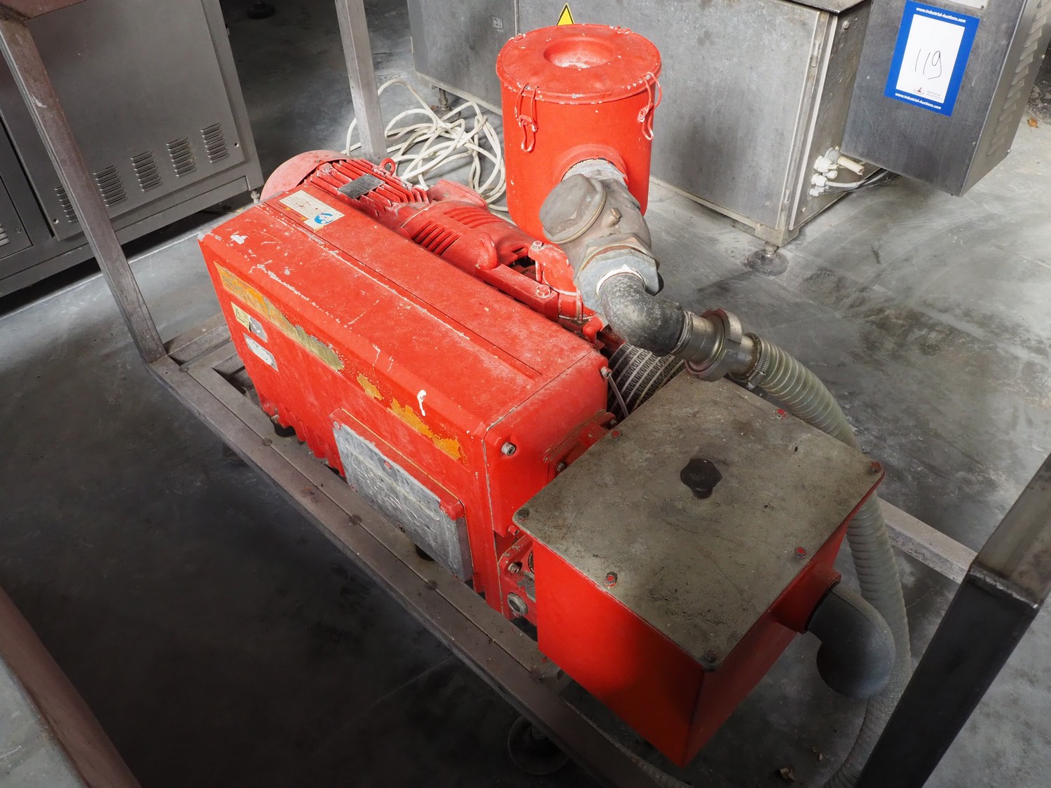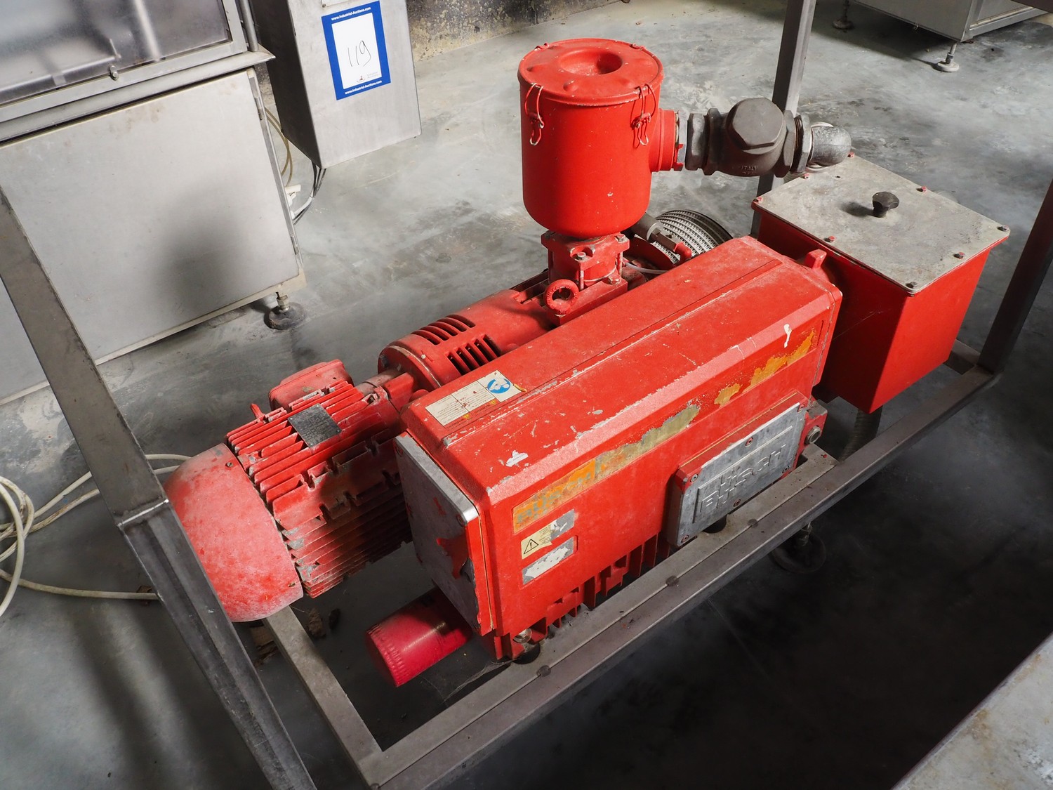 Busch rotary vane vacuum pump, type: R5 RA 0302 D, capacity: 300 m³/h, on s/s frame with s/s cover, dimensions: 1500 mm x 650 mm x 970 mm.
