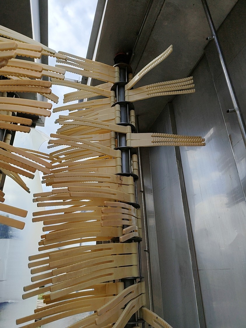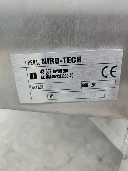 Niro-Tech three-shaft whip washer, capacity: 120 pcs/h, 400 V, 6.6 kW, dimensions: 1950 mm x 1750 mm x 3700 mm.