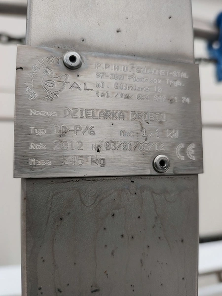 Drobtech poultry divider, type: DD-P/6, serial number: 03/01/03/12, year of construction: 2012, 1.1 kW, dimensions: 6500 mm x 1350 mm x 2100 mm.