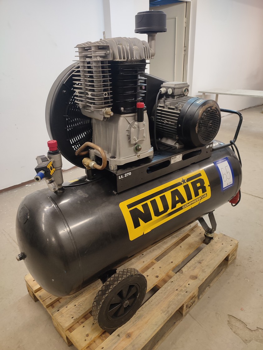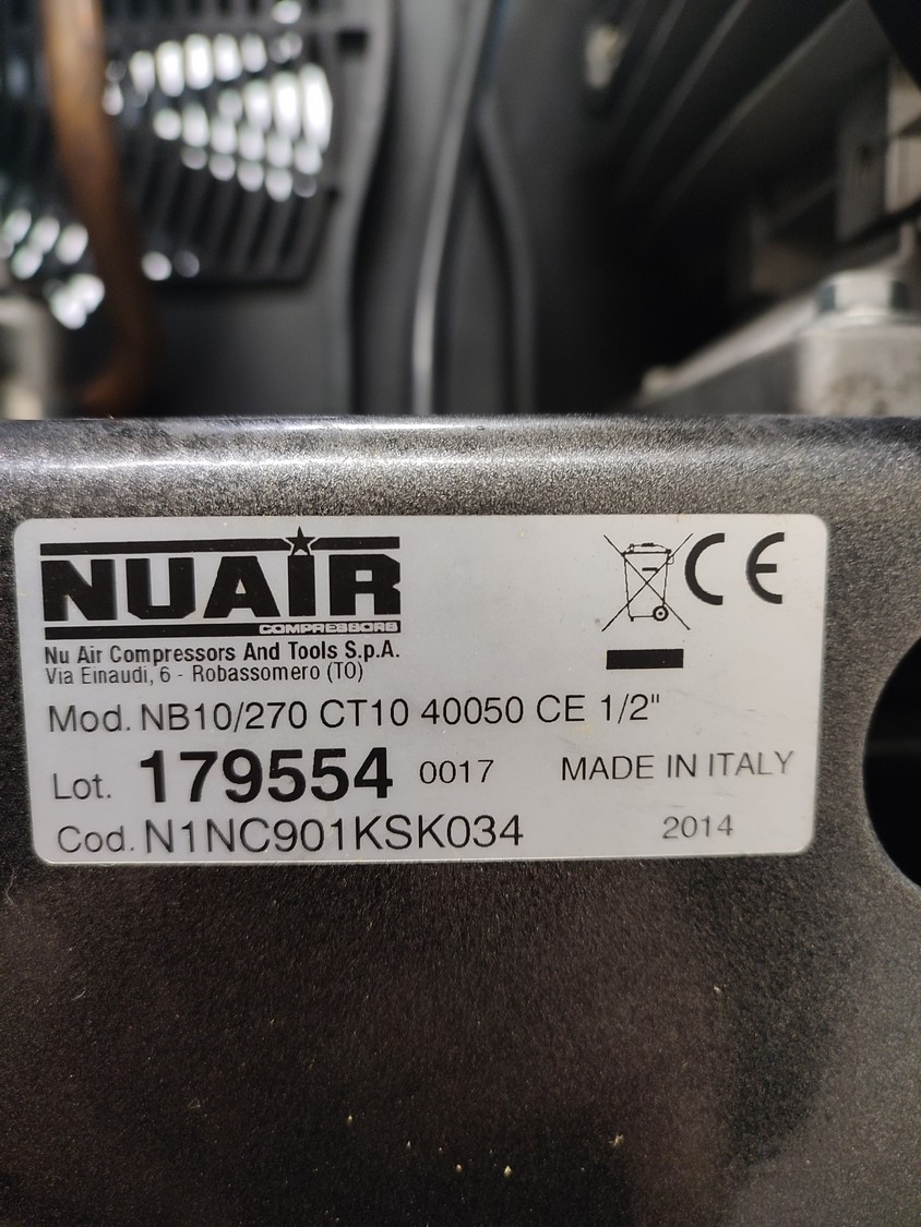 Nu Air Compressors And Tools S.p.A. mobile air compressor with receiver, model: NB10/270 CT10 40050 CE 1/2", year of construction: 2014, dimensions: 1500 mm x 580 mm x 1400 mm.