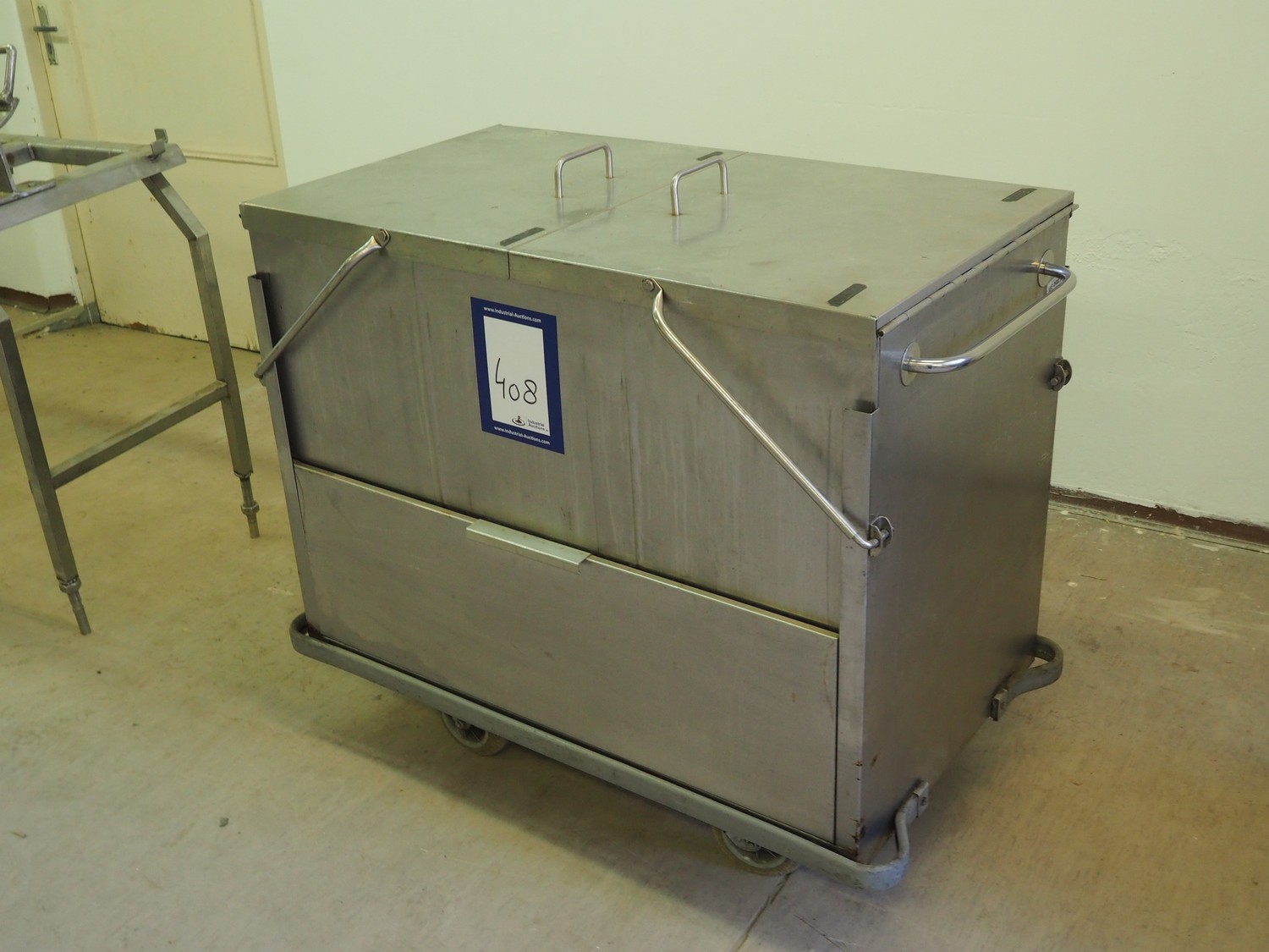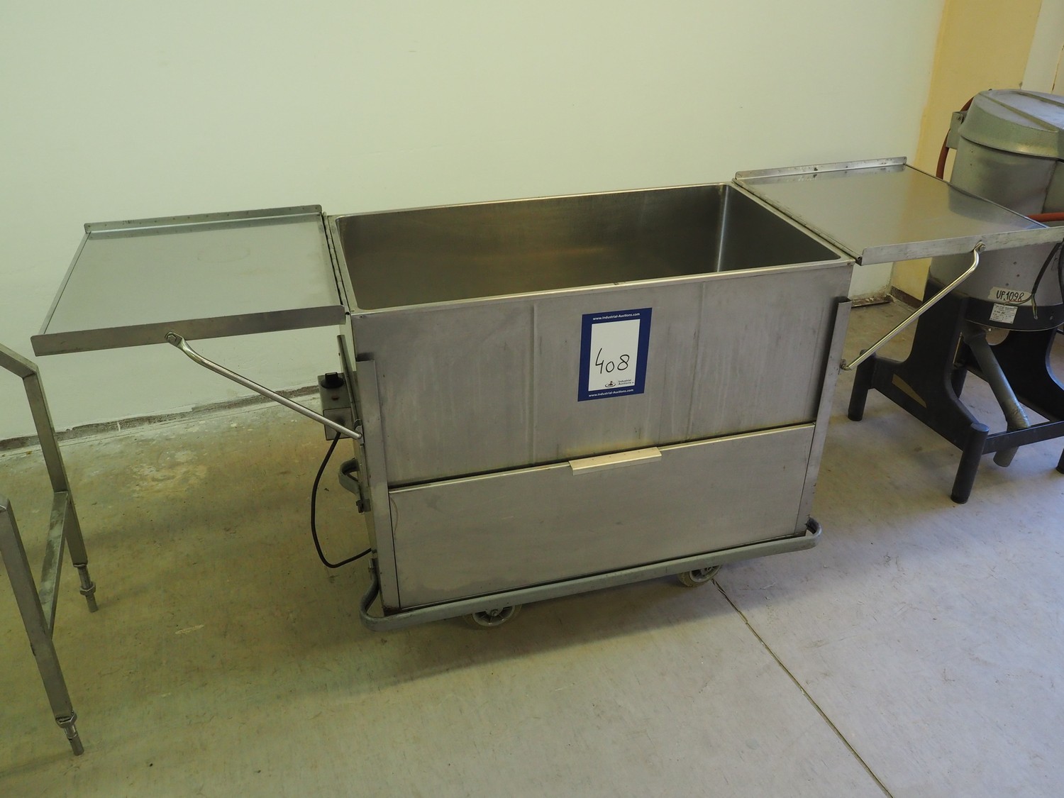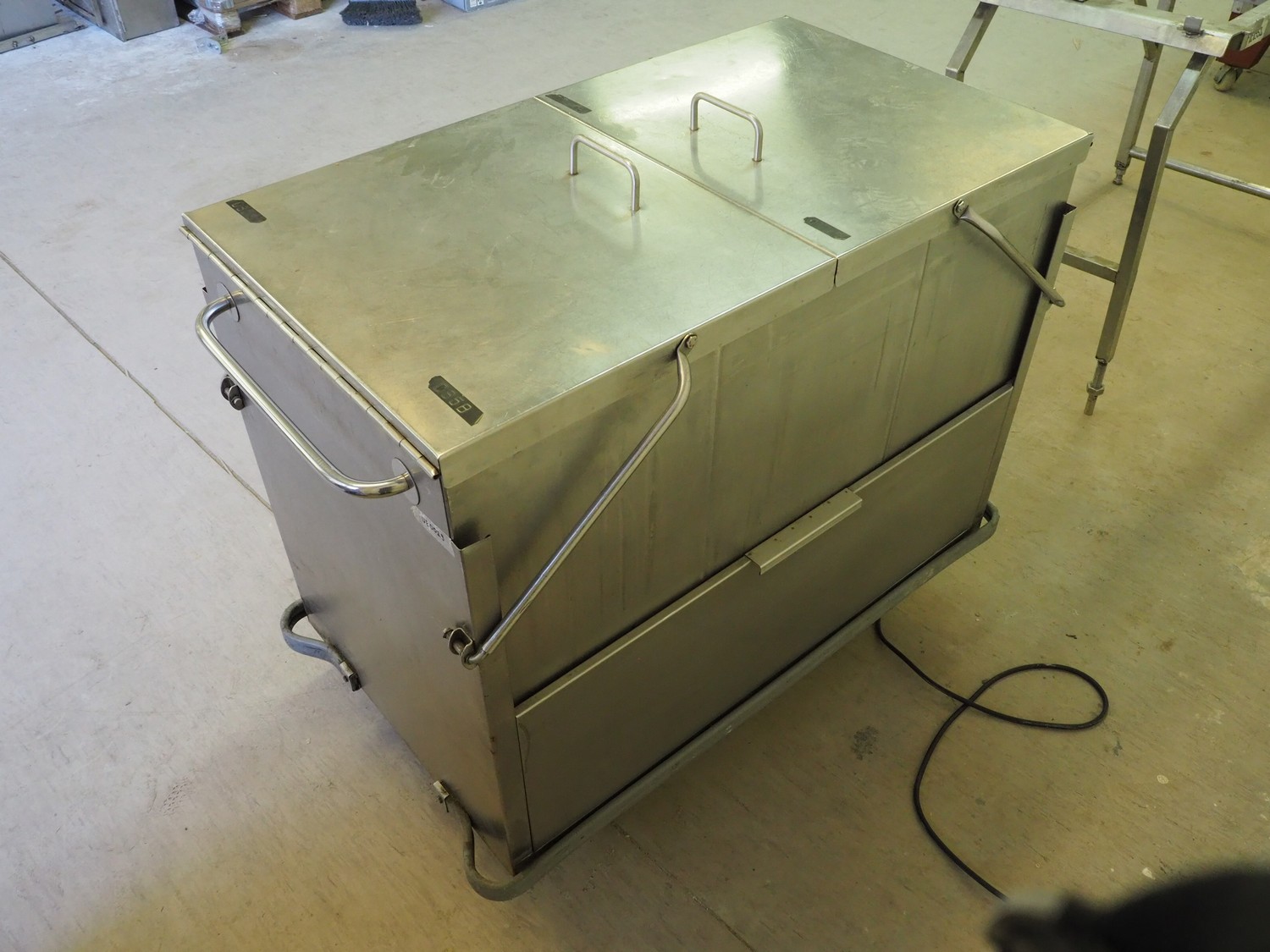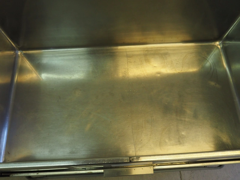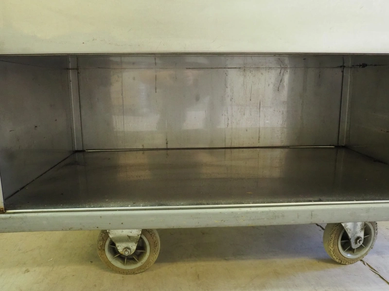 Mobile au-bain marie, inside dimensions: 1020 mm x 540 mm x 320 mm, total dimensions: 1100 mm x 650 mm x 950 mm.