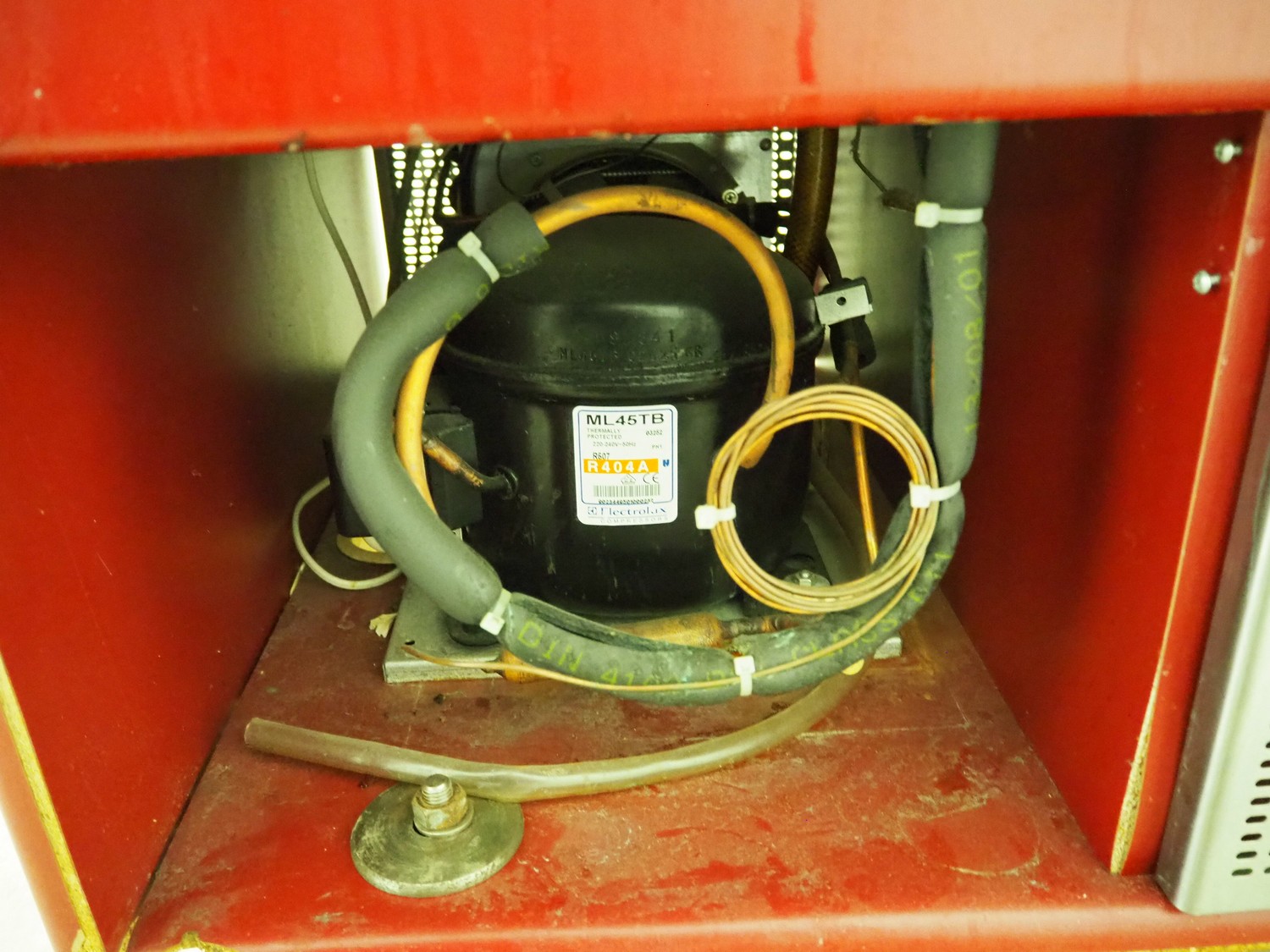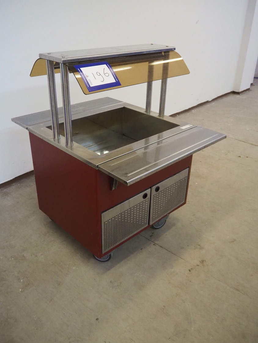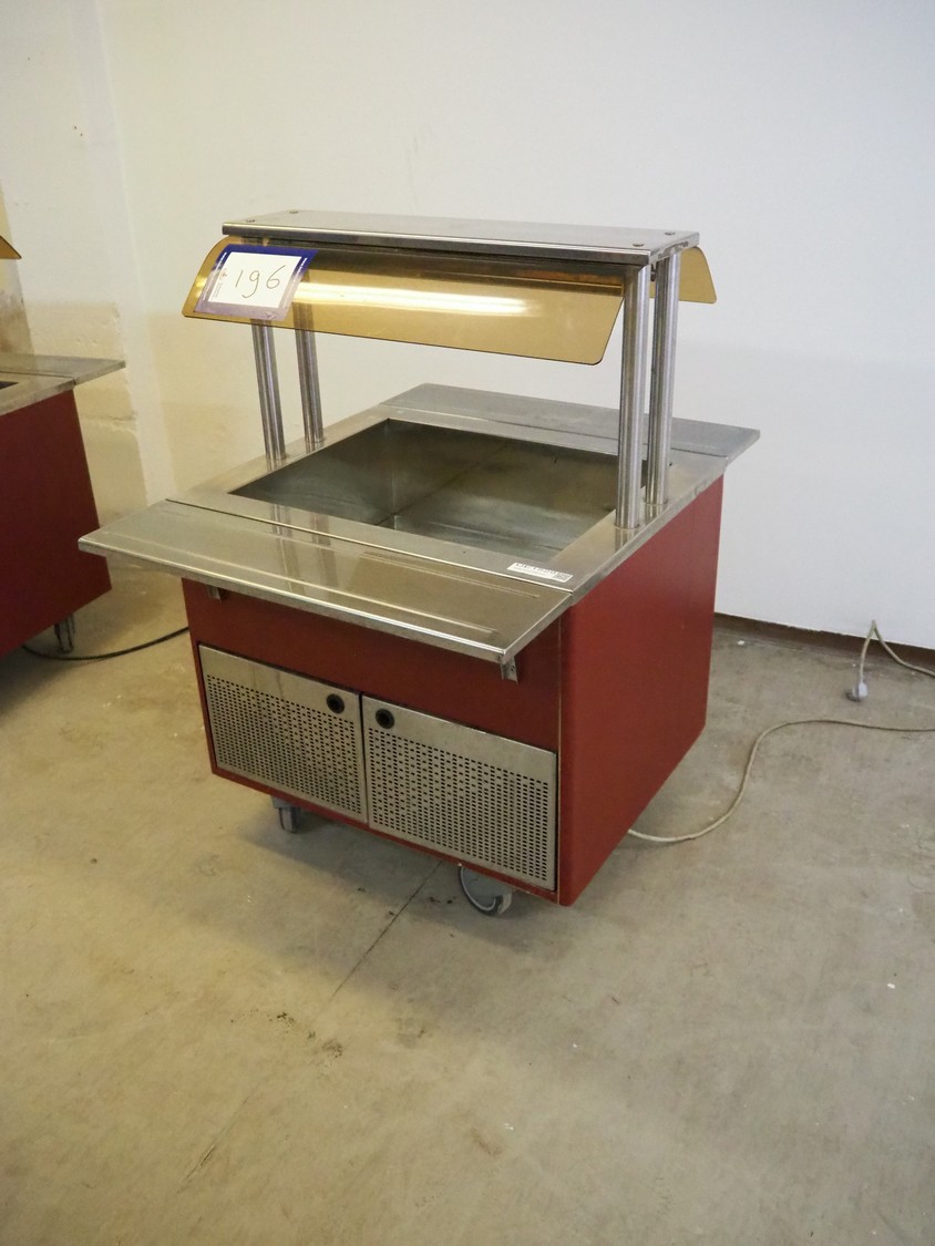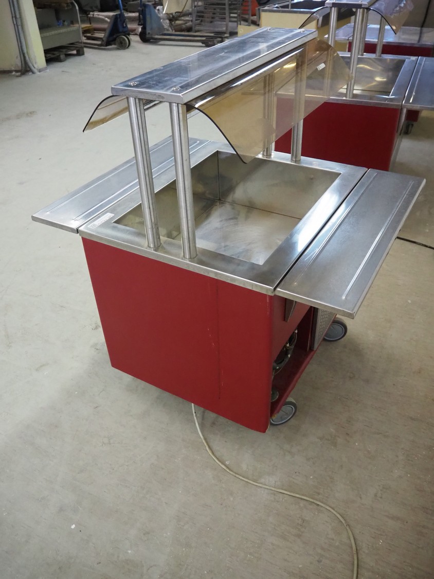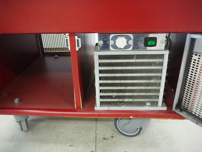 Mobile refrigerated showcase, inside dimensions: 640 mm x 500 mm x 220 mm, total dimensions: 1060 mm x 800 mm x 1170 mm.