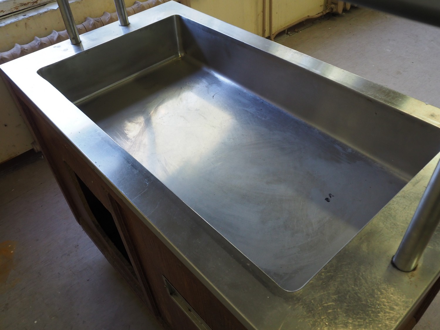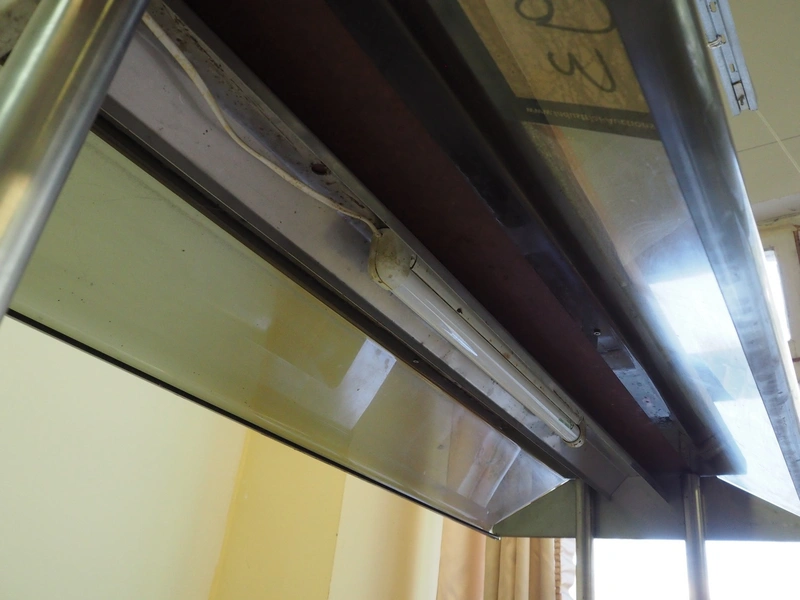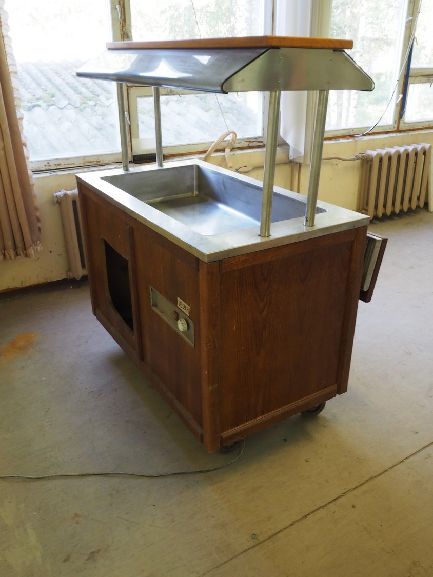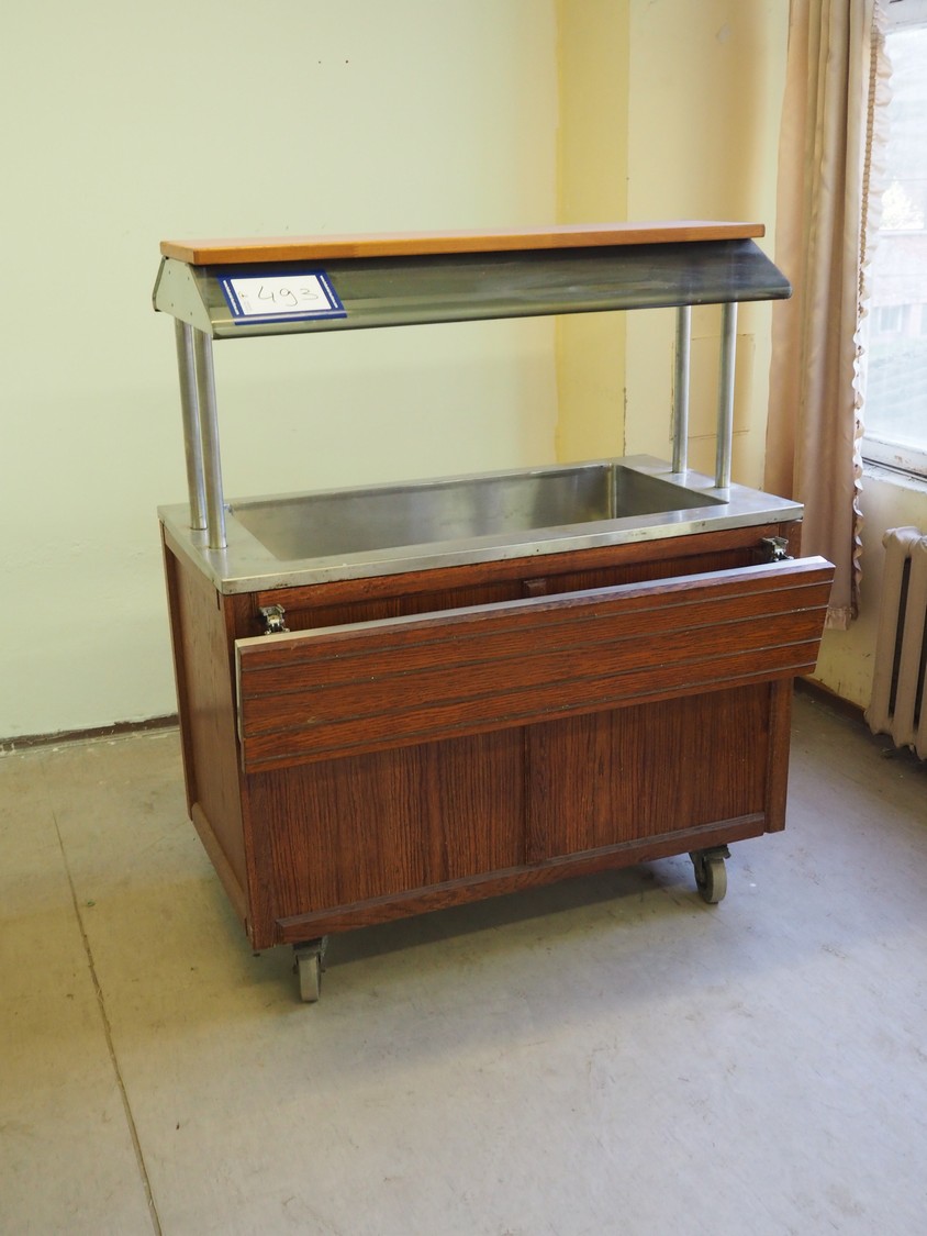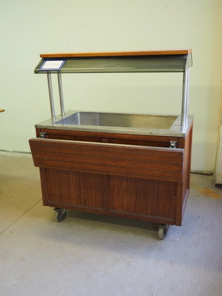Mobile refrigerated showcase, inside dimensions: 950 mm x 510 mm x 160 mm, total dimensions: 1200 mm x 800 mm x 1460 mm.