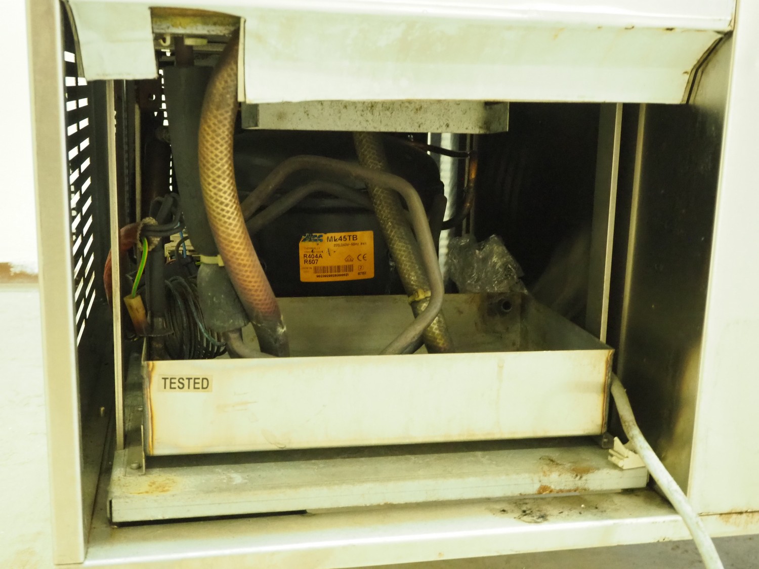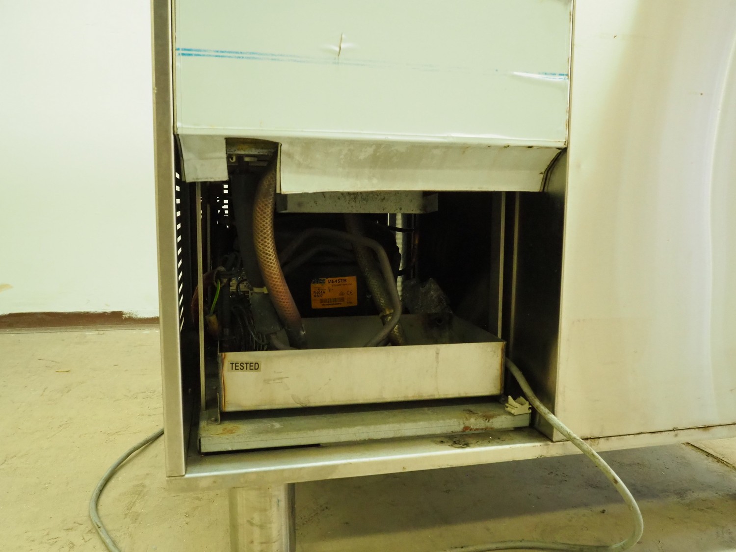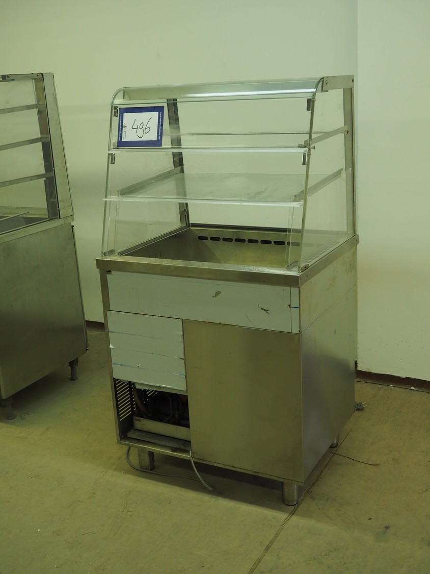 Metos refrigerated showcase, dimensions: 800 mm x 650 mm x 1500 mm.
