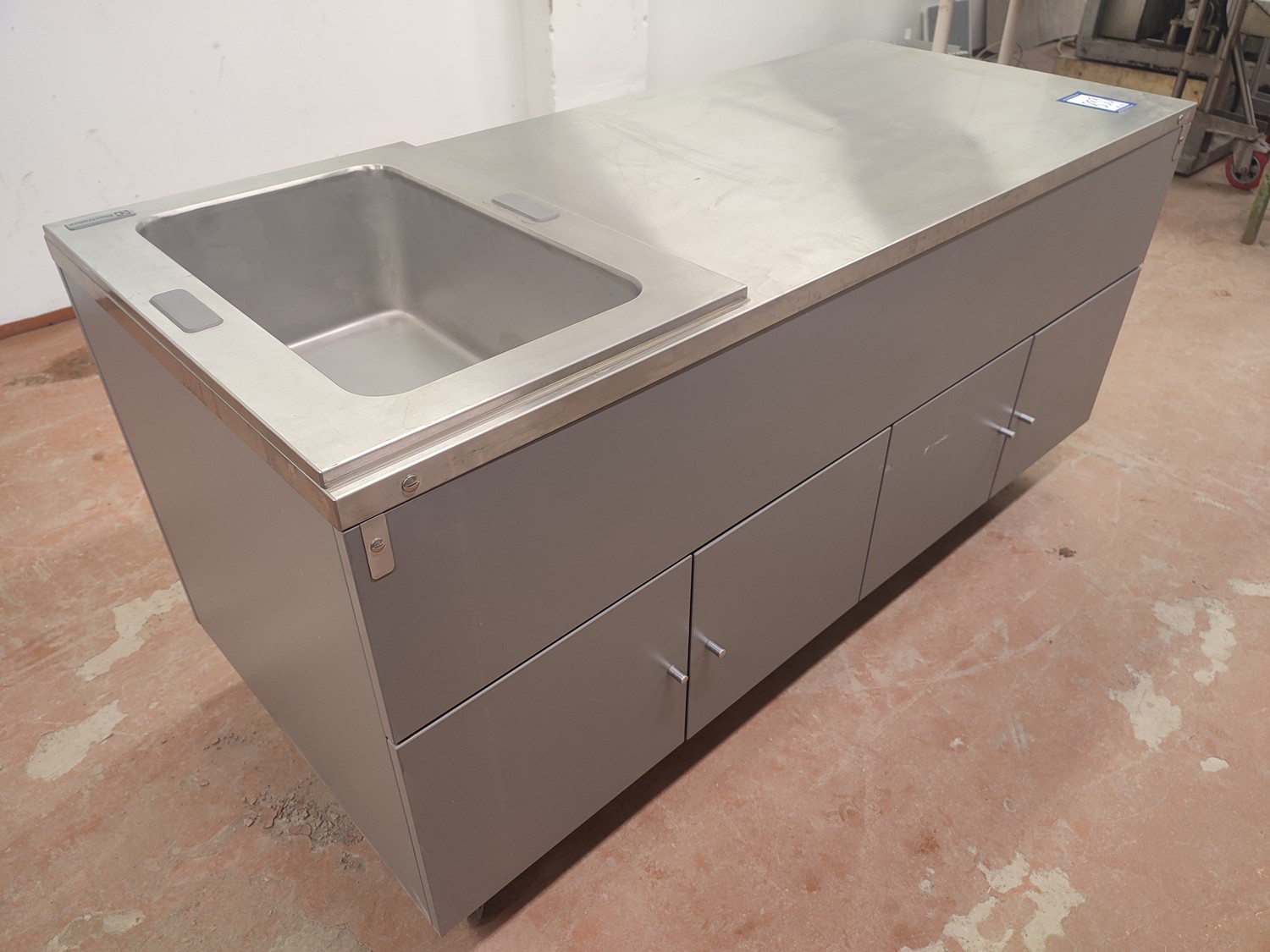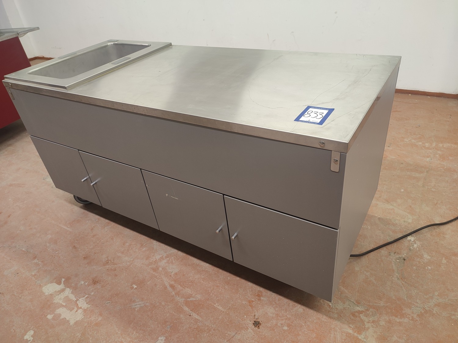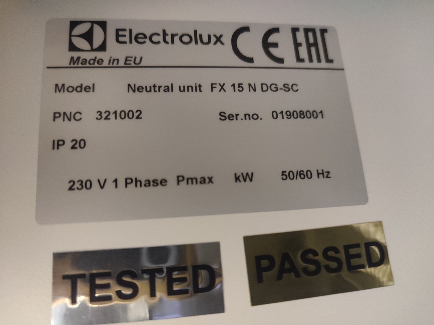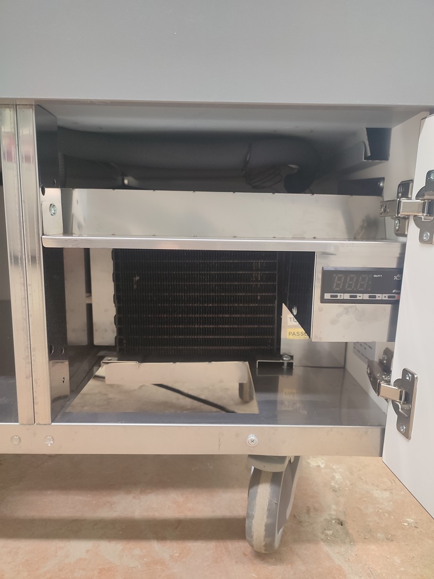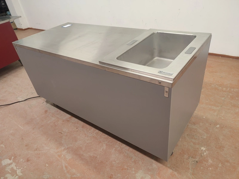 Electrolux refrigerated mobile counter, model: Cold well GN 1/1 / Neutral unit FX 15 N DG-SC, serial number: 01908003 / 01908001, 230 V, 1 Ph, 50/60 Hz, 0.5 kW, refrigerant: R404A / 200 gram, inside dimensions: 500 mm x 300 mm x 200 mm, total dimensions: 1500 mm x 650 mm x 750 mm.