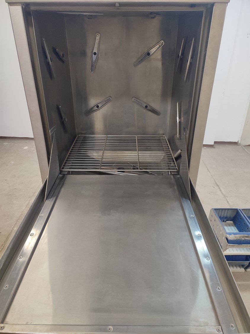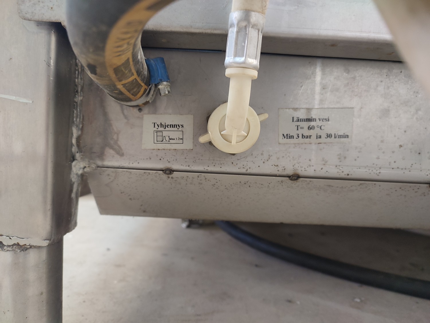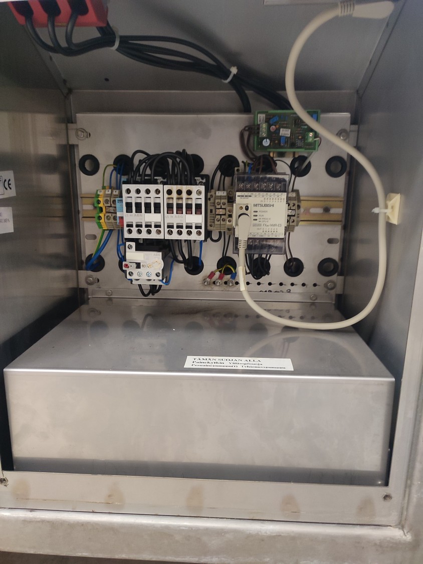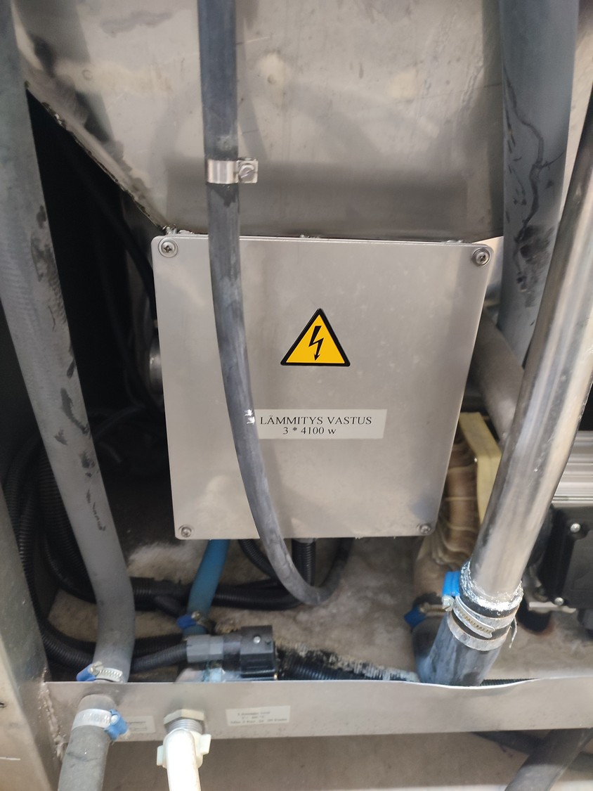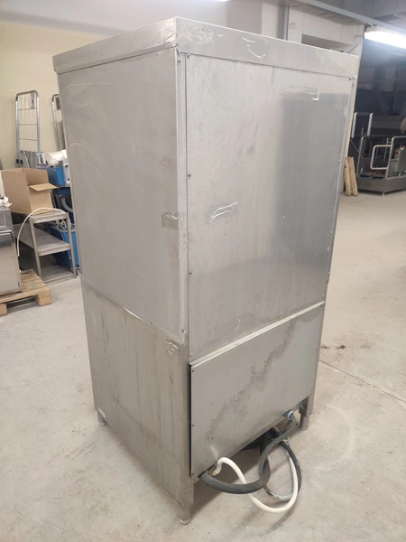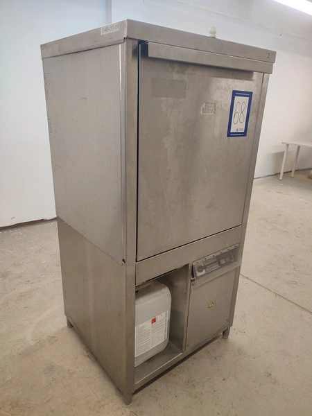 Pesutekno Oy dishwasher, type: Tuhti 02, number: 012001, 400 V, 3 Ph, 50 Hz, 22 A, 16.9 kW, dimensions: 800 mm x 800 mm x 1680 mm.