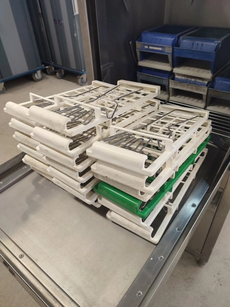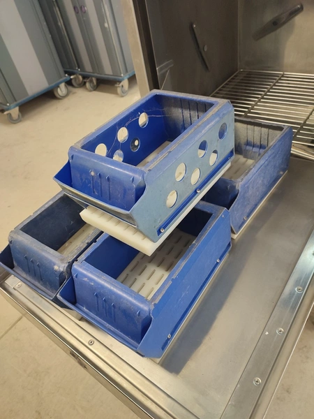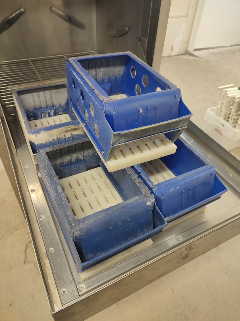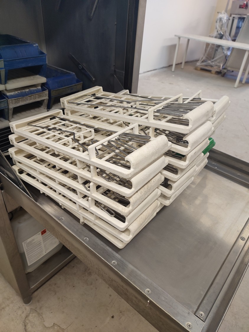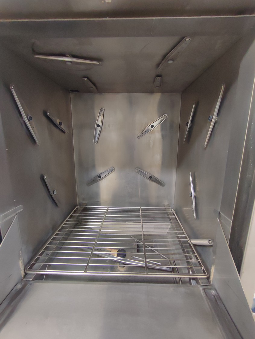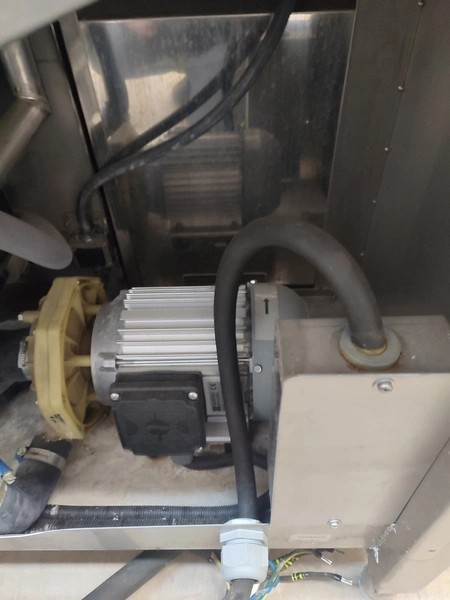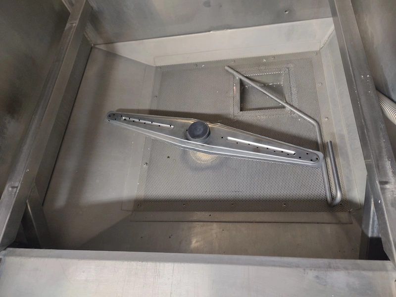 Pesutekno Oy dishwasher, type: Tuhti 02, number: 012001, 400 V, 3 Ph, 50 Hz, 22 A, 16.9 kW, dimensions: 800 mm x 800 mm x 1680 mm.