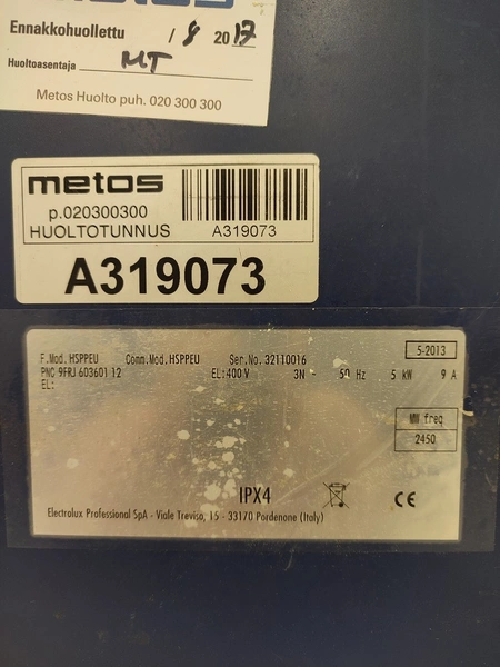 Electrolux sandwich panini grill, model: HSPPEU, serial number: 3210016, year of construction: 5-2013, 400 V, 3 Ph, 50 Hz, 9 A, 5 kW, dimensions: 350 mm x 600 mm x 600 mm.