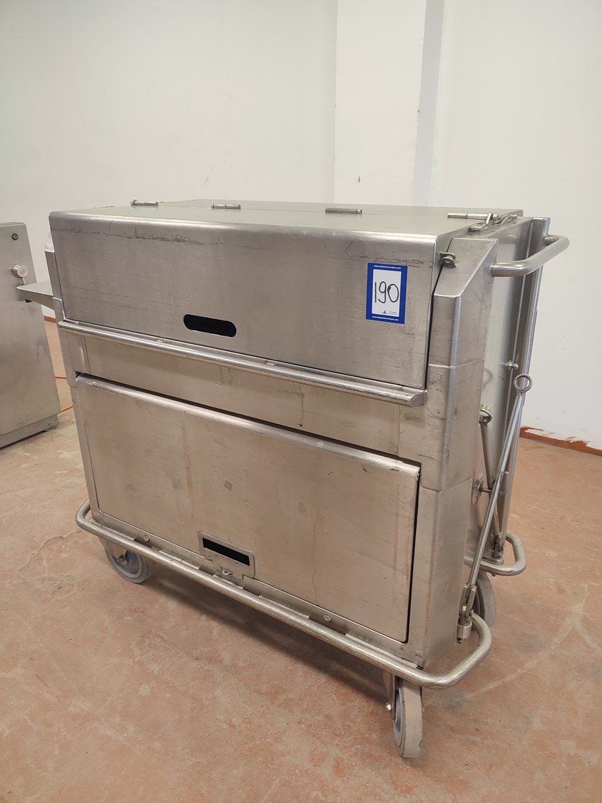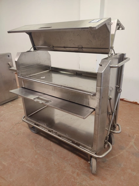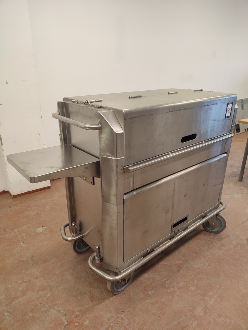 S/s heated trolley, dimensions: 1540 mm x 650 mm x 1160 mm.