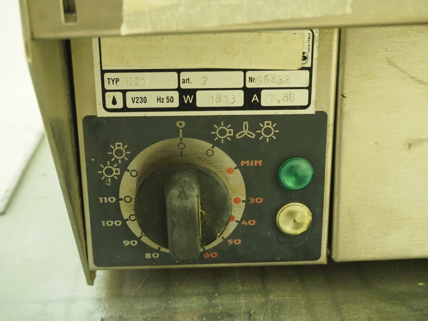Turbo heated showcase, type: HT1, number: 96432, 230 V, 50 Hz, 7.88 A, 1813 W, dimensions: 800 mm x 460 mm x 500 mm.