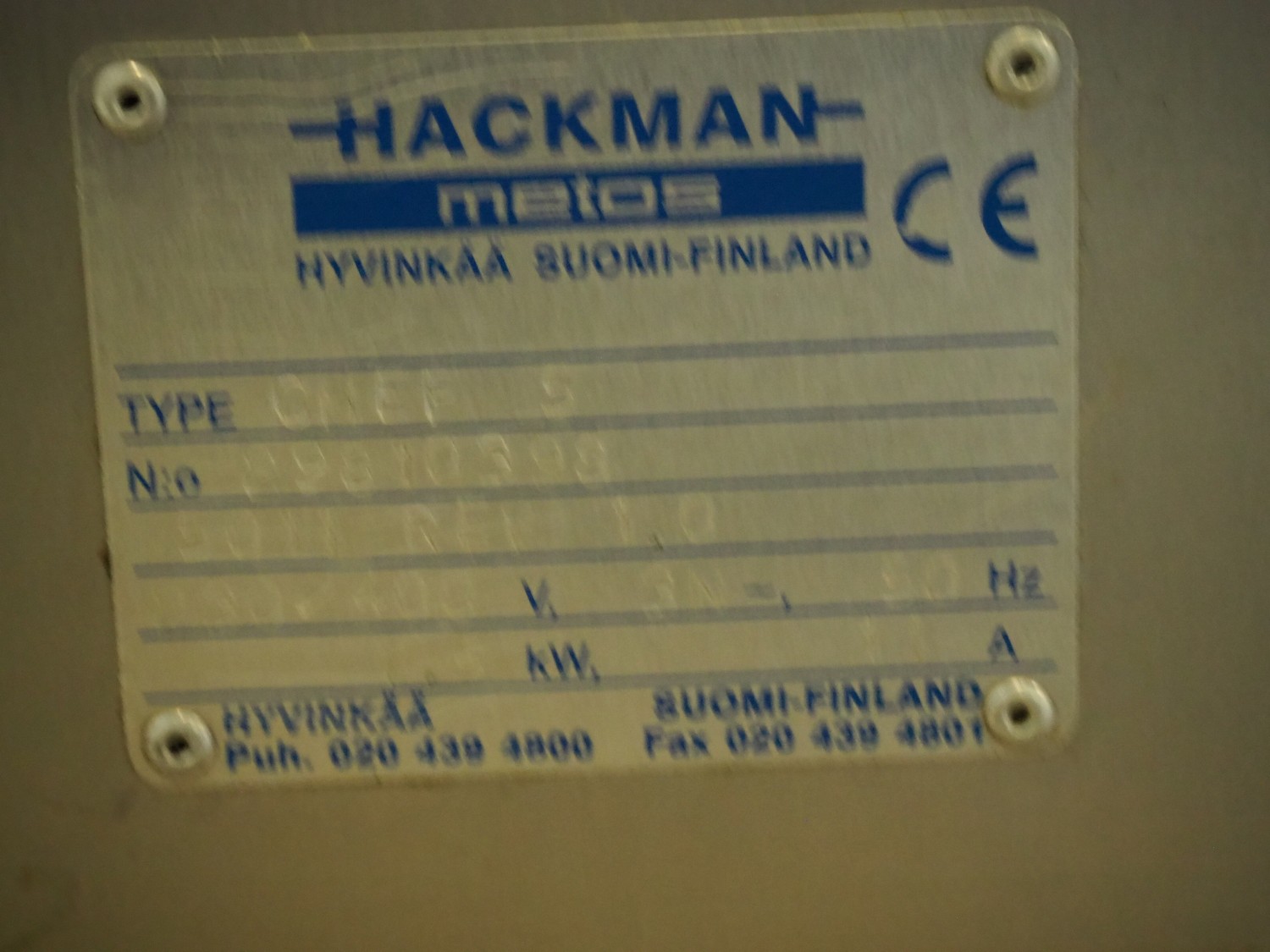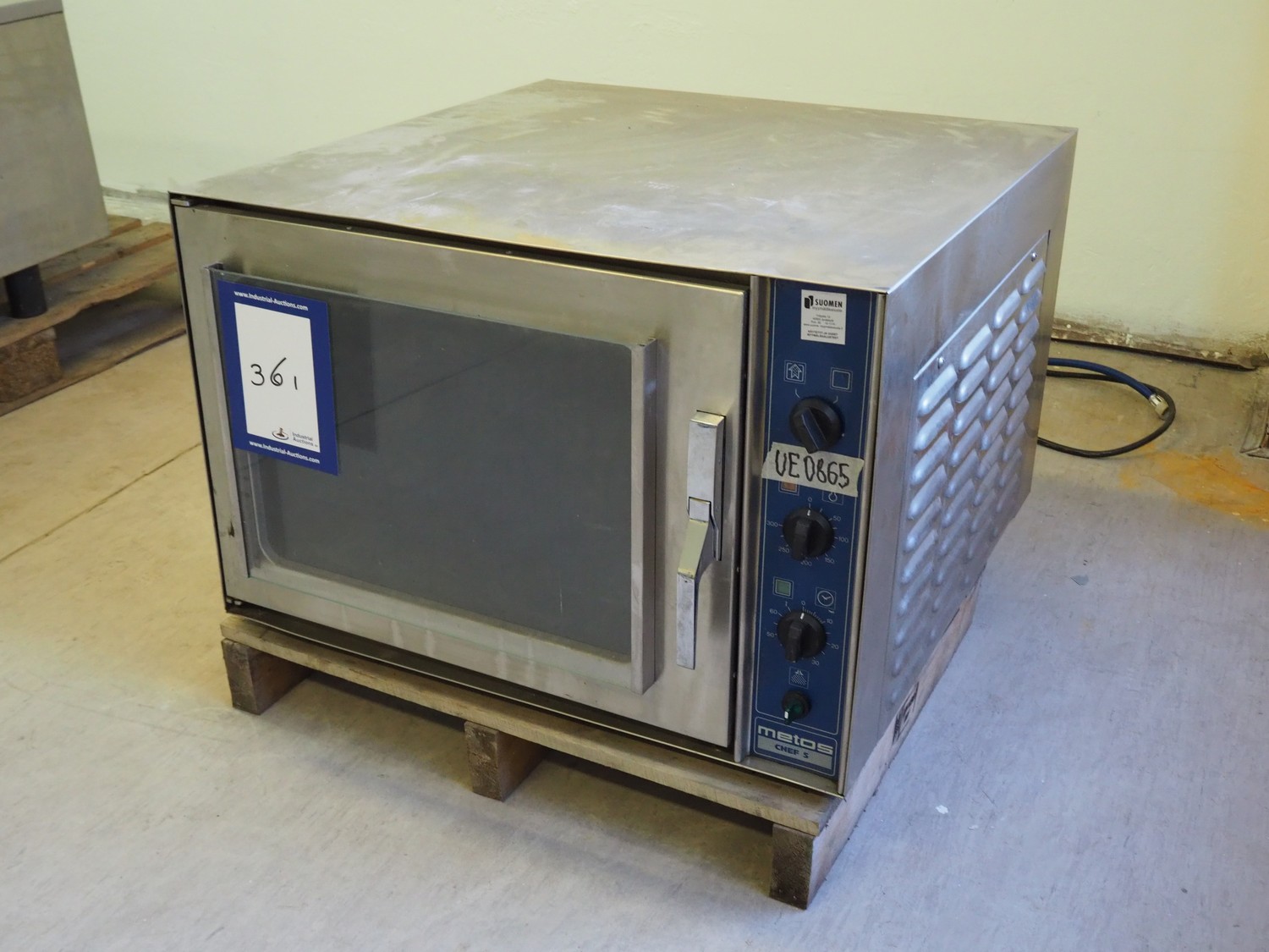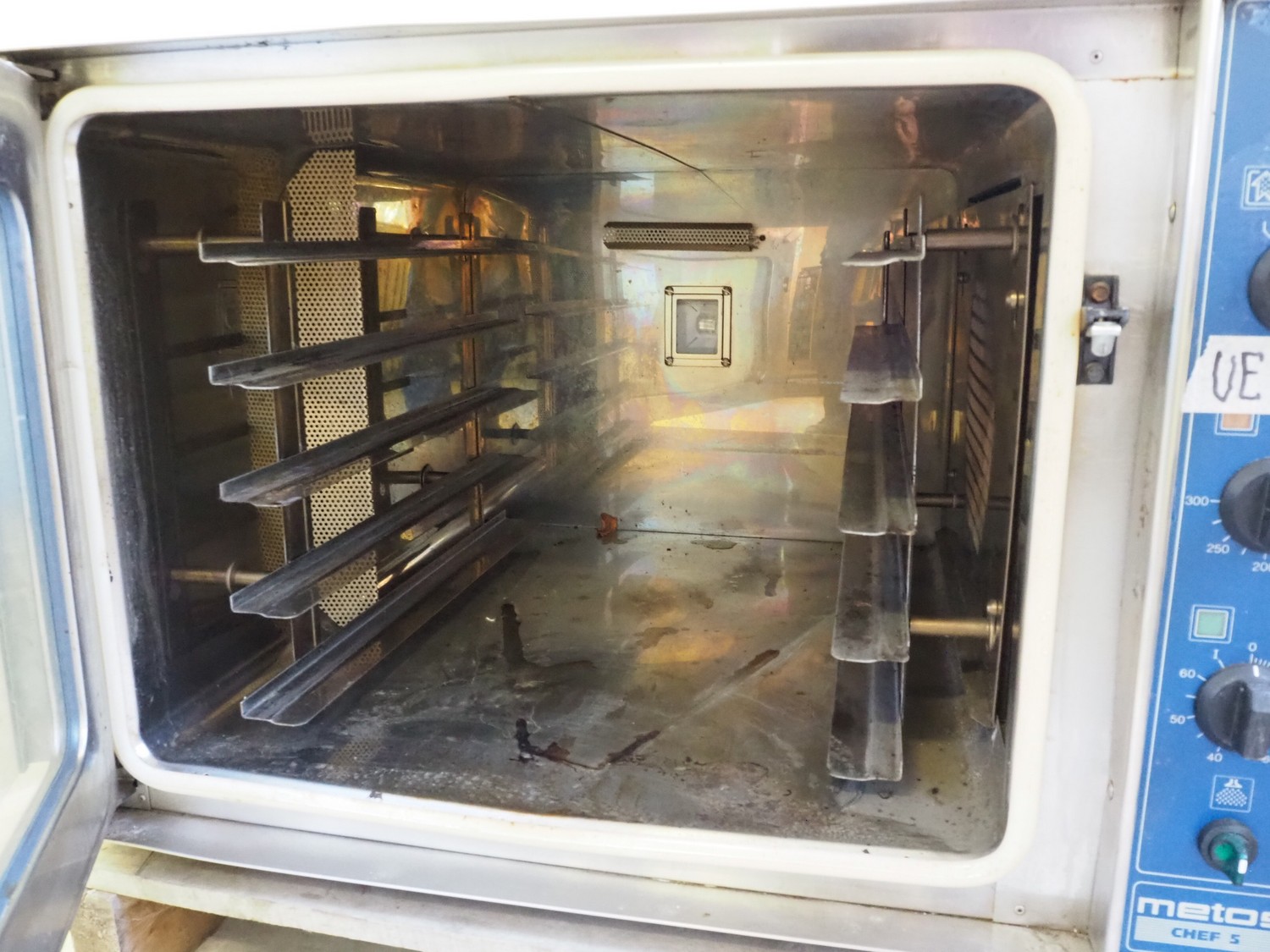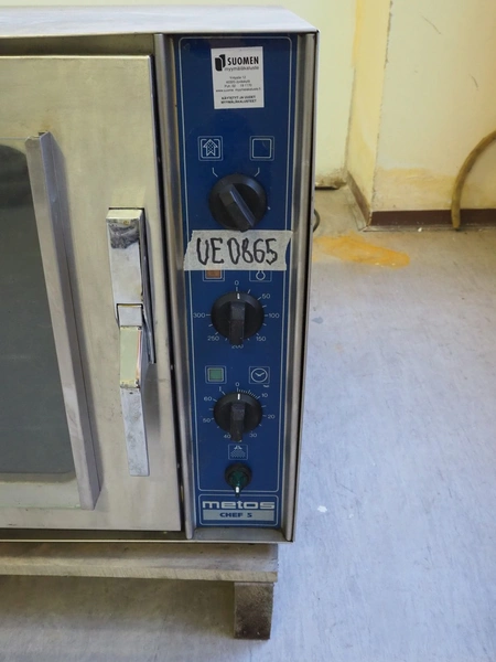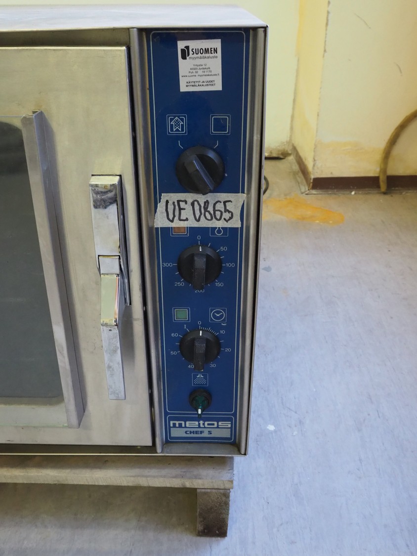 Metos/Hackman oven, type: CHEF 5, number: 29810398, 230/400 V, 3 Ph, 50 Hz, 11 A, 7.5 kW, 5 floors, floor dimensions: (5x) 580 mm x 480 mm, total dimensions: 800 mm x 800 mm x 550 mm.