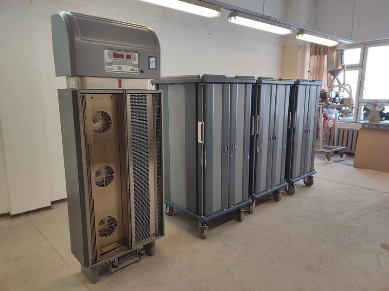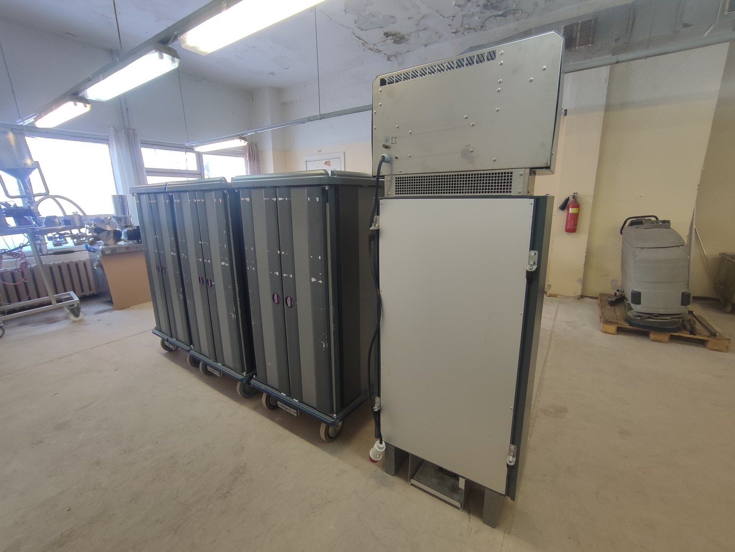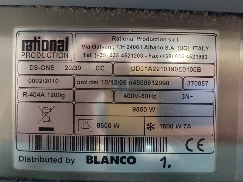 Rational dissociated convection system, consisting of: convection docking station and 3 insulated neutral shuttles, convection docking station, type: DS-ONE 20/30 CC, serial number: 0002/2010, 400 V, 3 Ph, 50 Hz, 9850 W, refrigerant: R-404A / 1200 gram, shuttle, type: TT DS-ONE 30 EN, GN, serial number: 0001/2010; 0006/2010; 0002/2010, docking station dimensions: 730 mm x 380 mm x 2000 mm, shuttle dimensions: (3x) 800 mm x 900 mm x 1630 mm.