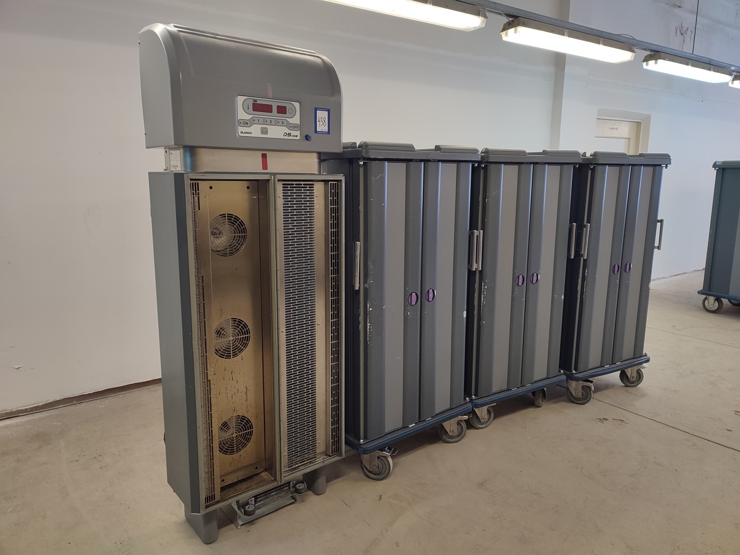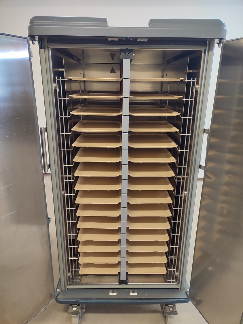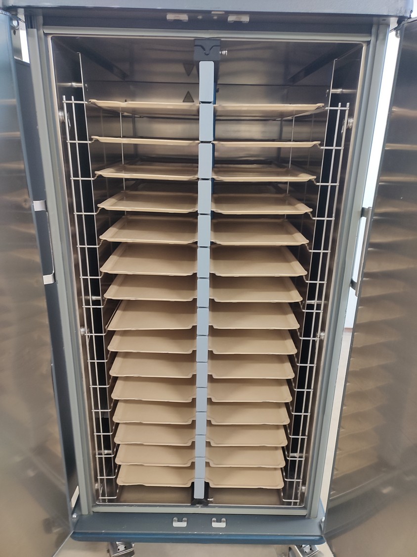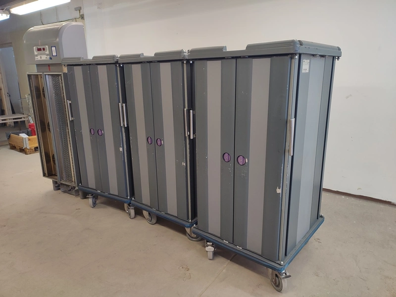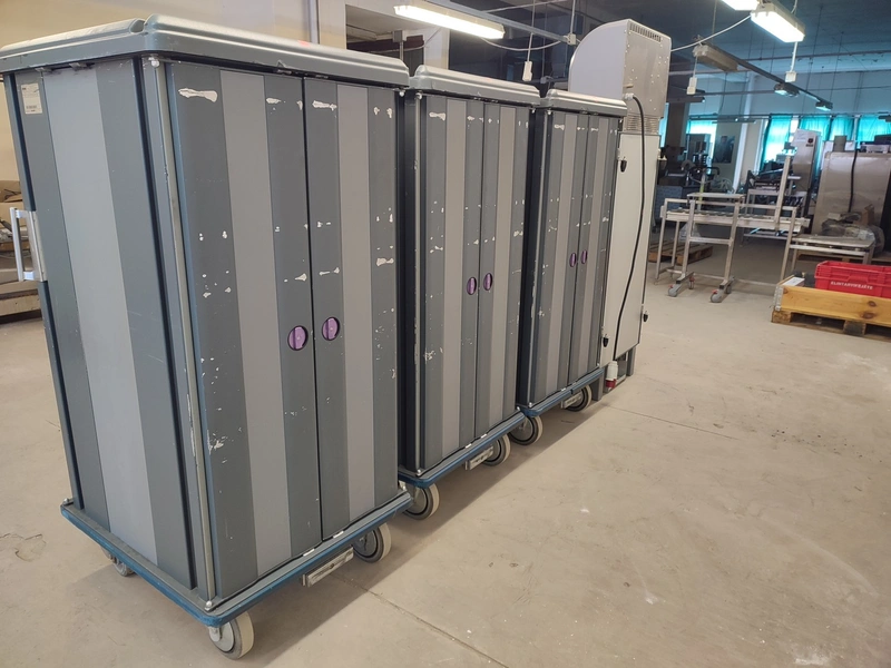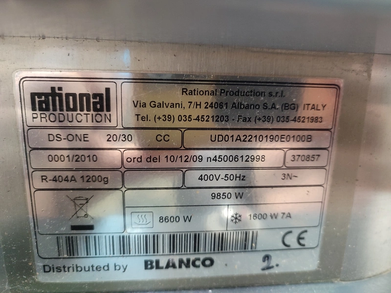 Rational Production s.r.l dissociated convection system. consisting of: convection docking station and 3 insulated neutral shuttles, convection docking station, type: DS-ONE 20/30 CC, serial number: 0001/2010, 400 V, 3 Ph, 50 Hz, 9850 W, refrigerant: R-404A / 1200 gram, shuttle, type: TT DS-ONE 30 EN, GN, serial number: 0005/2010; 0004/2010; 0003/2010, docking station dimensions: 730 mm x 380 mm x 2000 mm, shuttle dimensions: (3x) 800 mm x 900 mm x 1630 mm.