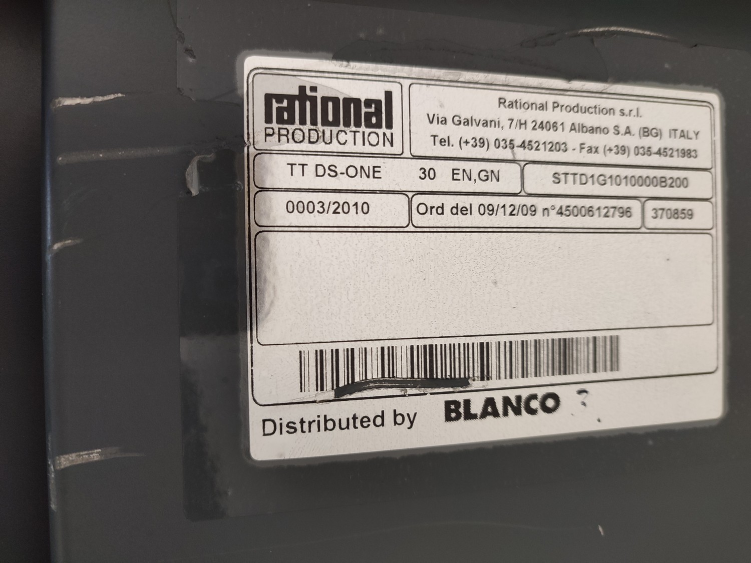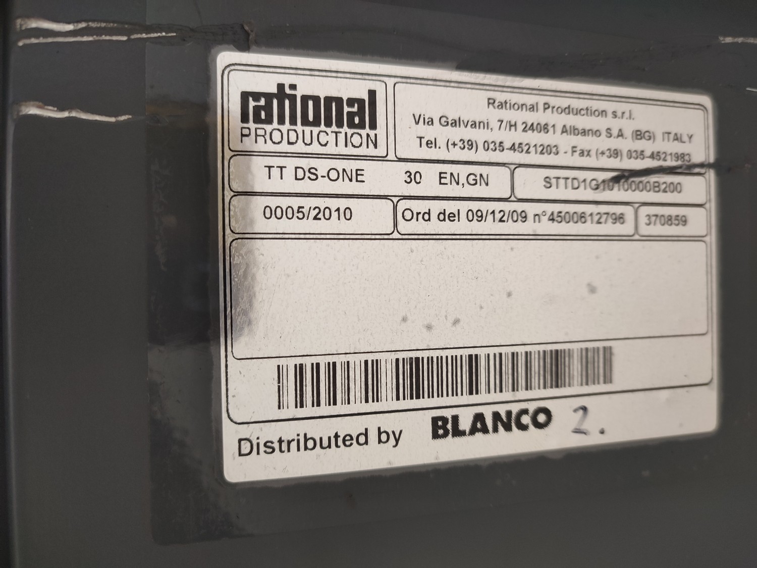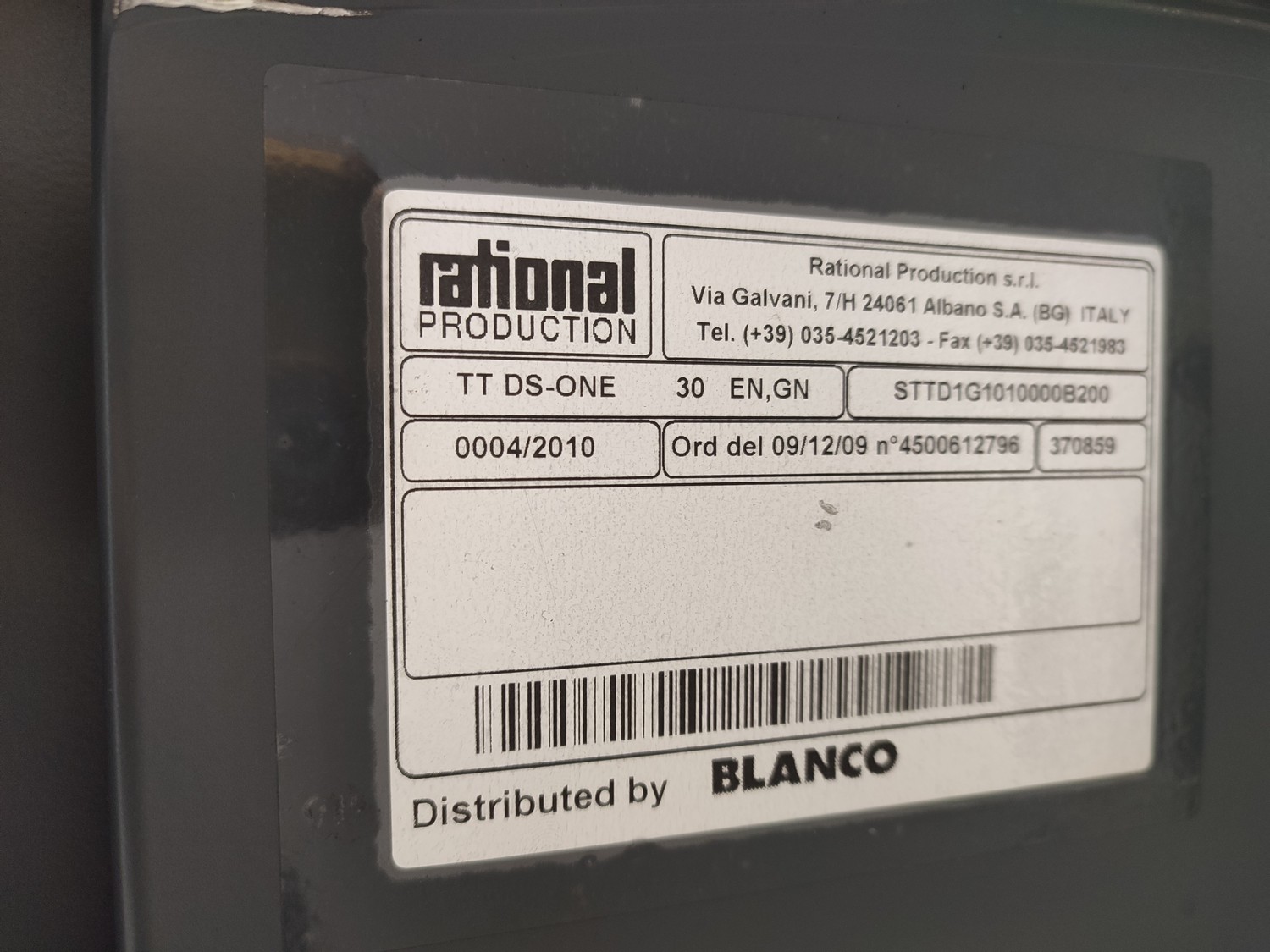 Rational Production s.r.l dissociated convection system. consisting of: convection docking station and 3 insulated neutral shuttles, convection docking station, type: DS-ONE 20/30 CC, serial number: 0001/2010, 400 V, 3 Ph, 50 Hz, 9850 W, refrigerant: R-404A / 1200 gram, shuttle, type: TT DS-ONE 30 EN, GN, serial number: 0005/2010; 0004/2010; 0003/2010, docking station dimensions: 730 mm x 380 mm x 2000 mm, shuttle dimensions: (3x) 800 mm x 900 mm x 1630 mm.