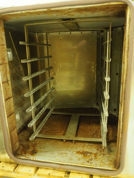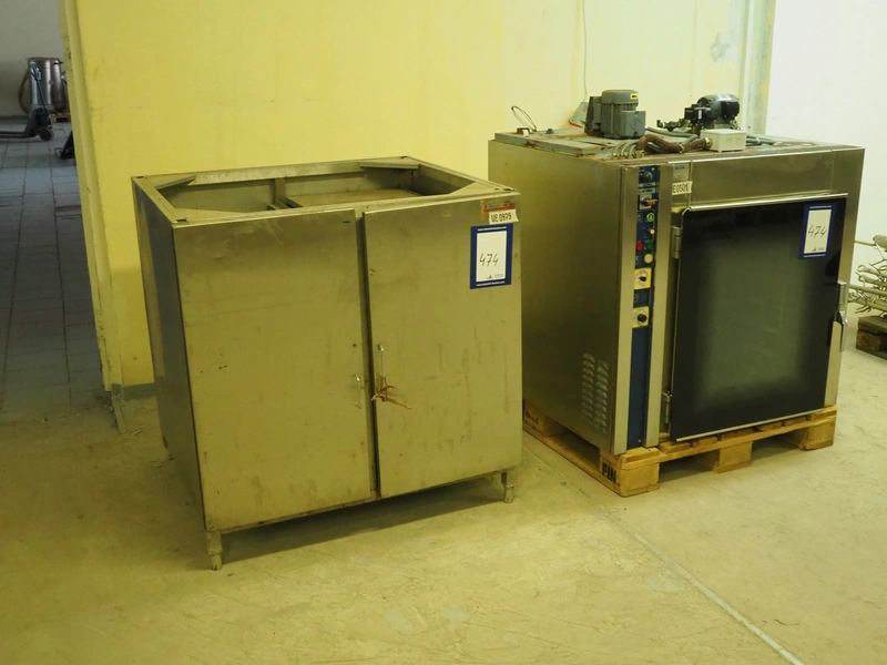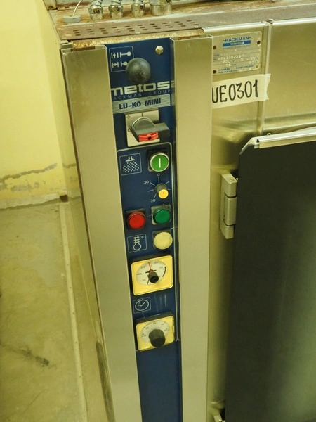 Hackman Metos combi steamer, type: MINI, number: 242208, year of construction: 1995, 400 V, 3 Ph, 50 Hz, 23 A, 16 kW, 7 floors, dimensions each floor: 450 mm x 570 mm, distance between floors: 100 mm, total dimensions: 1050 mm x 950 mm x 1150 mm.