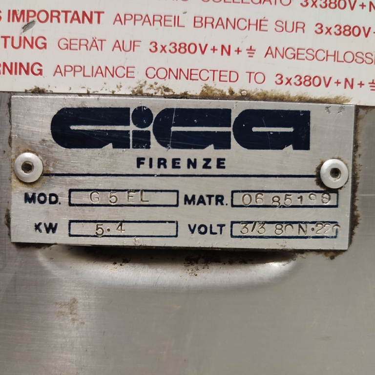 Giga Firenze combi steamer, model: G 5 EL, serial number: 0685190, 5 floors, dimensions each floor: 530 mm x 320 mm, inside dimensions: 630 mm x 360 mm x 340 mm, 5.4 kW, total dimensions: 800 mm x 680 mm x 510 mm.
