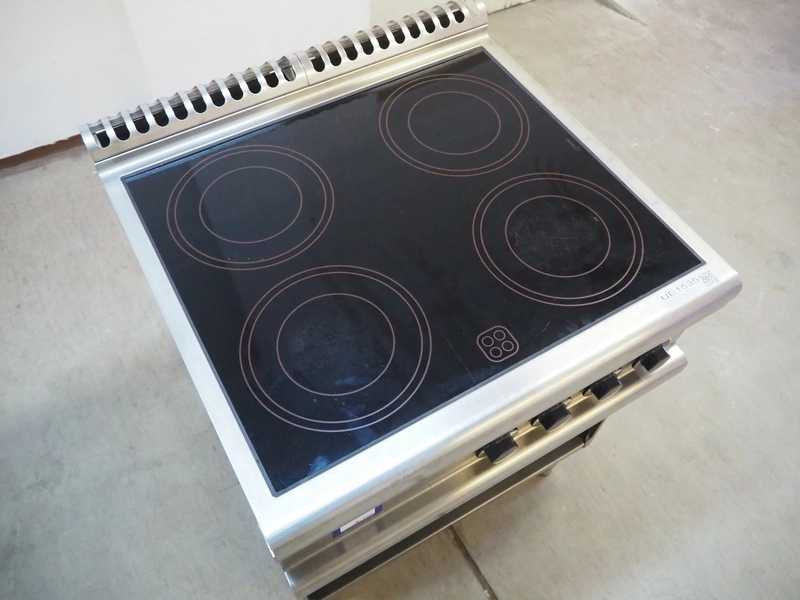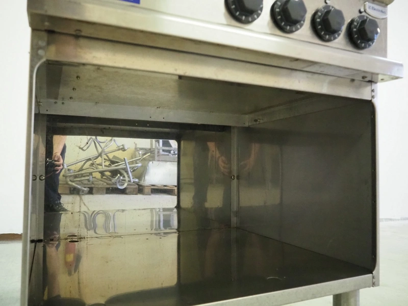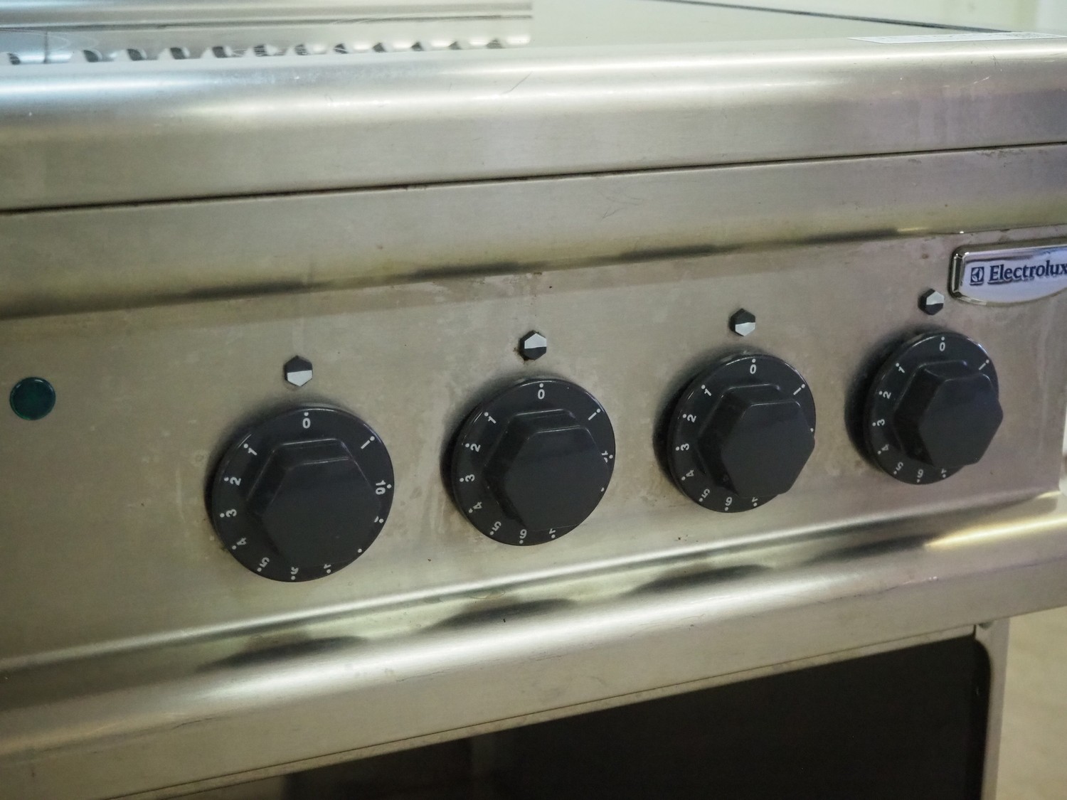 Electrolux 4 pits infrared stove, model: RIV/E2, serial number: 2210001, year of construction: 2002, 400 V, 50/60 Hz, 8.8 kW, dimensions: 700 mm x 700 mm x 930 mm.