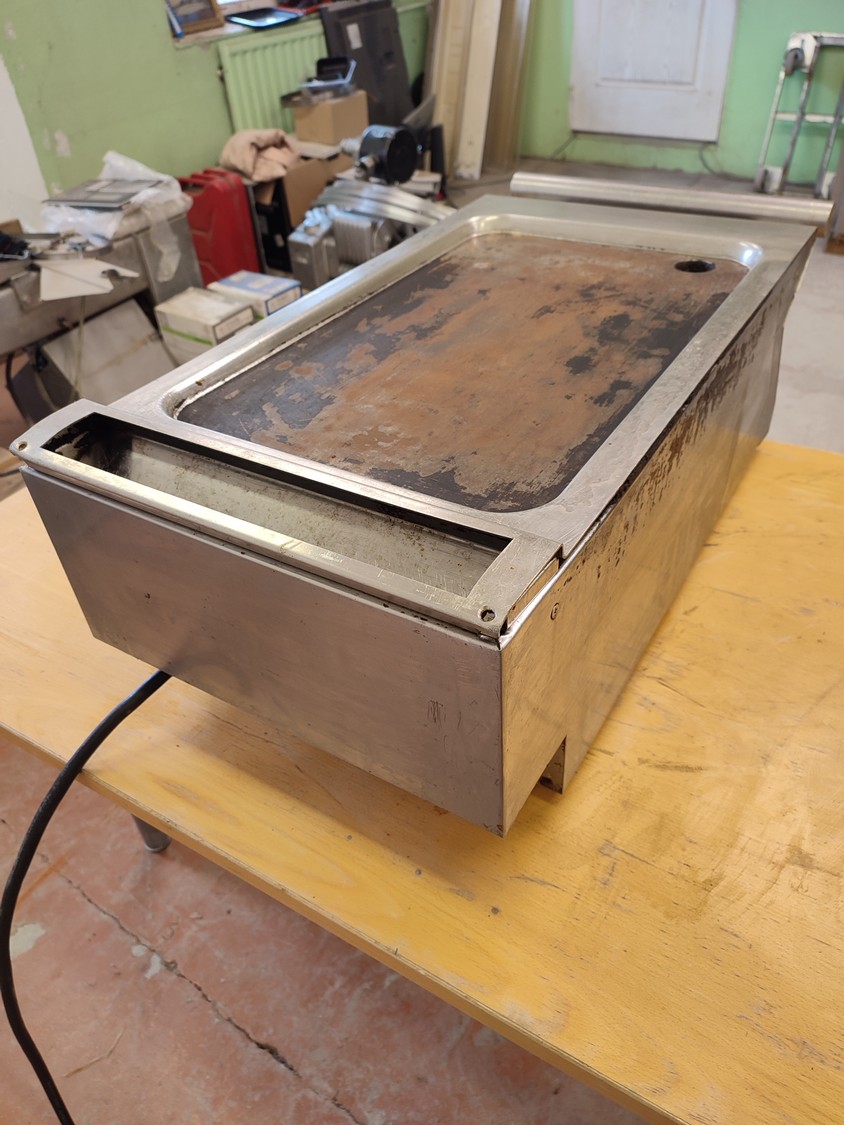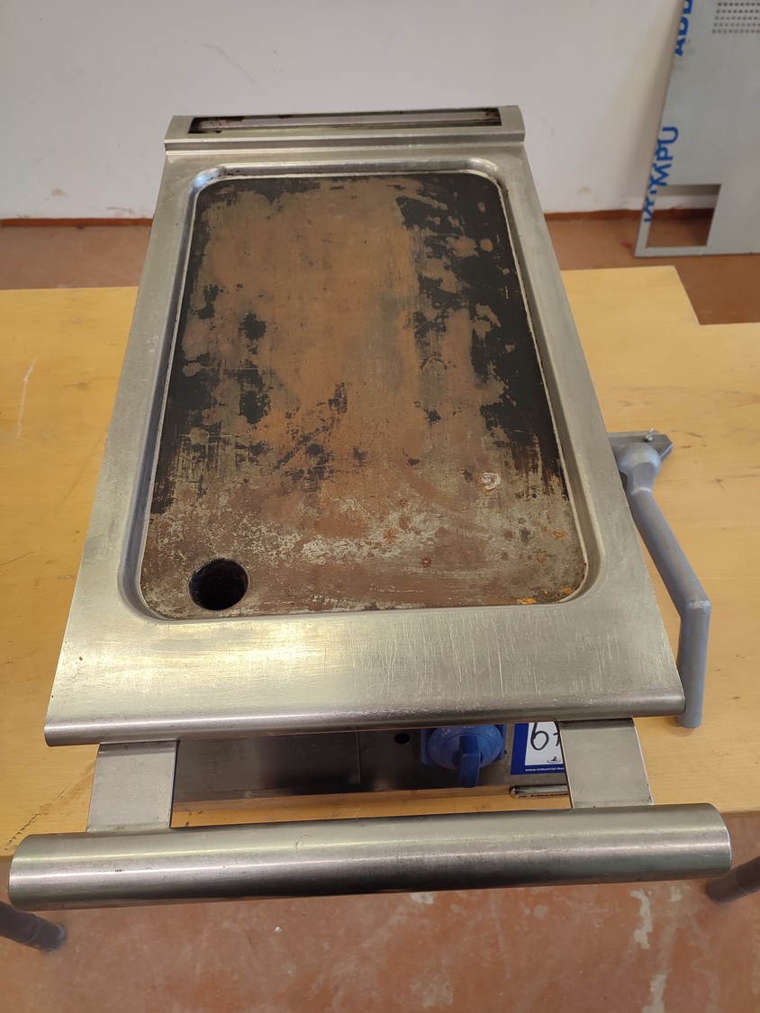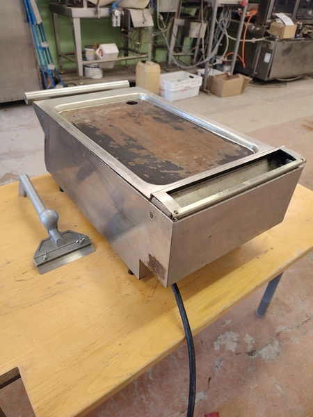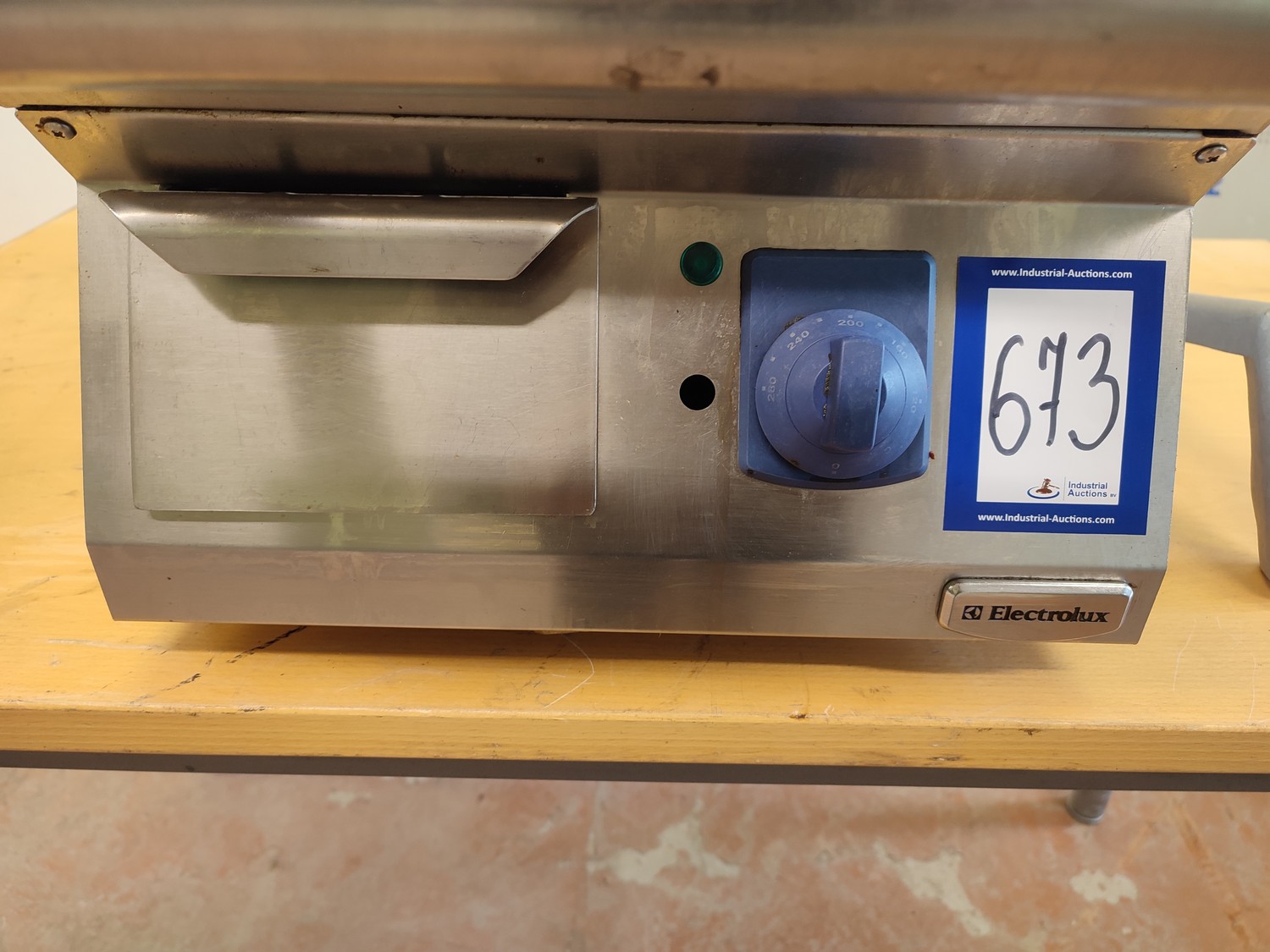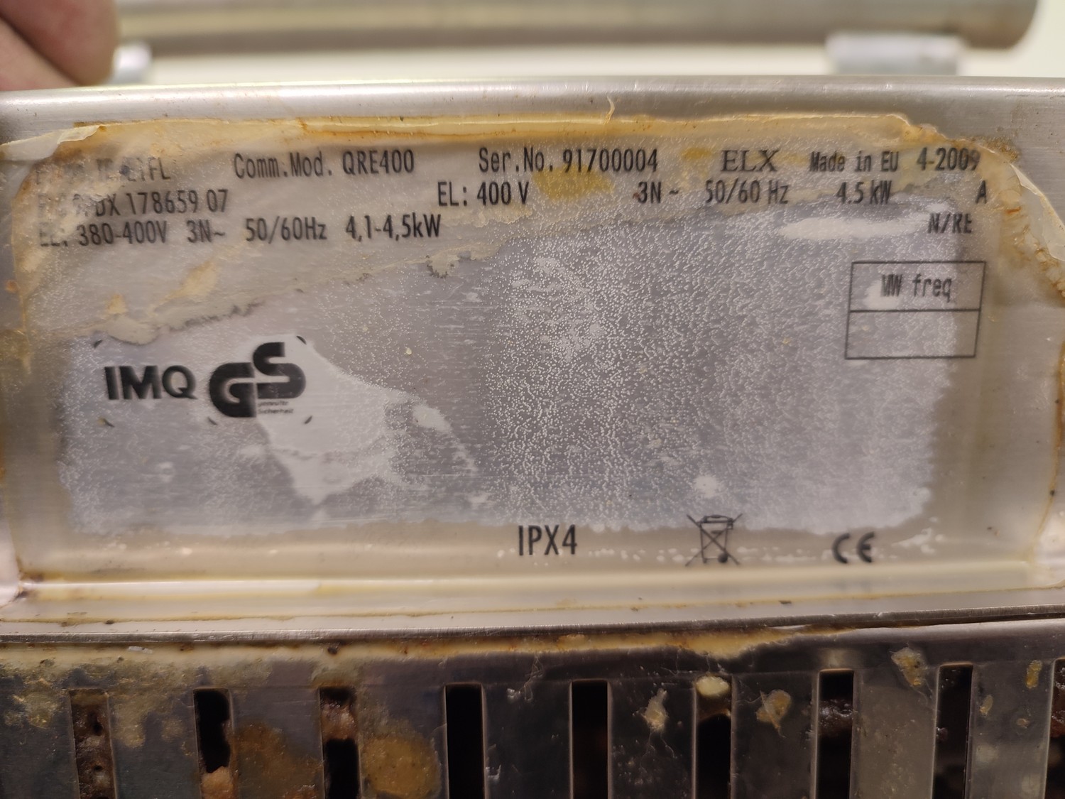 Electrolux fry top, model: QRE400, serial number: 91700004, 380-400 V, 3 Ph, 50/60 Hz, 4.1-4.5 kW, dimensions: 400 mm x 820 mm x 370 mm.
