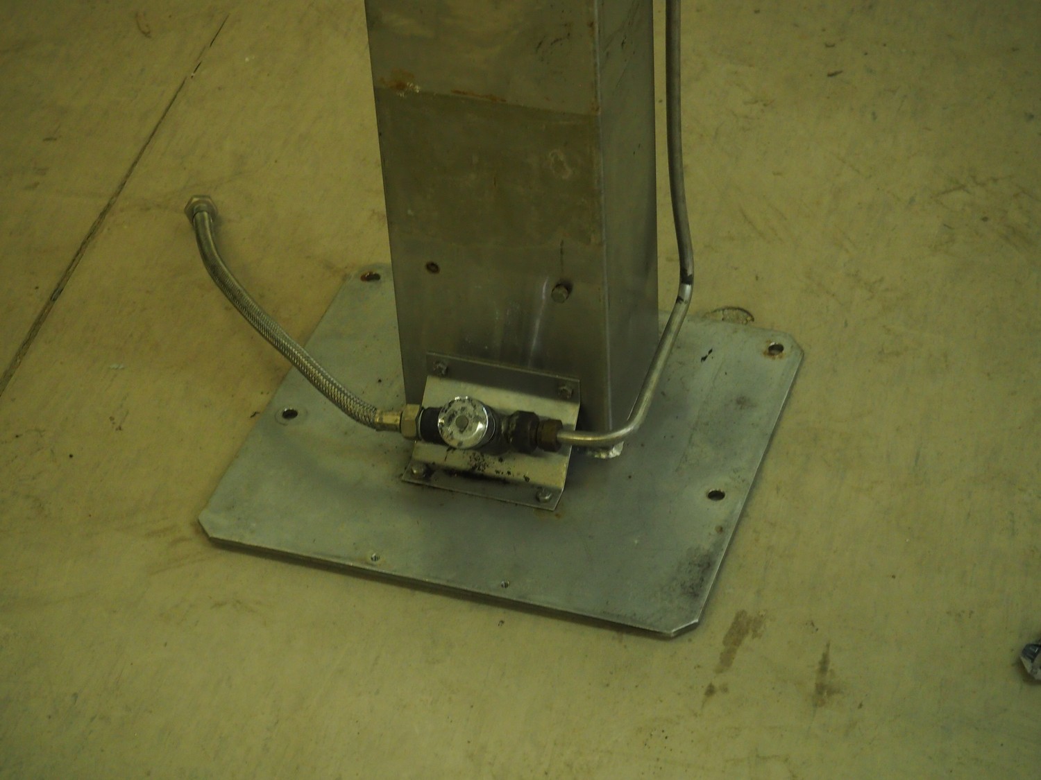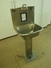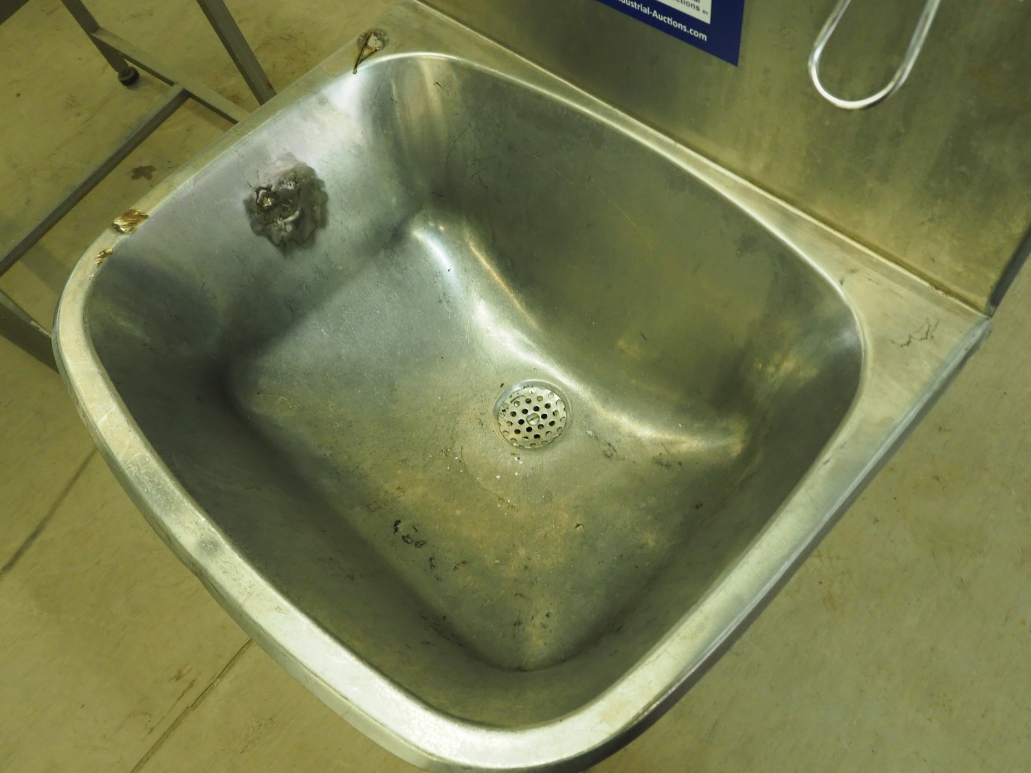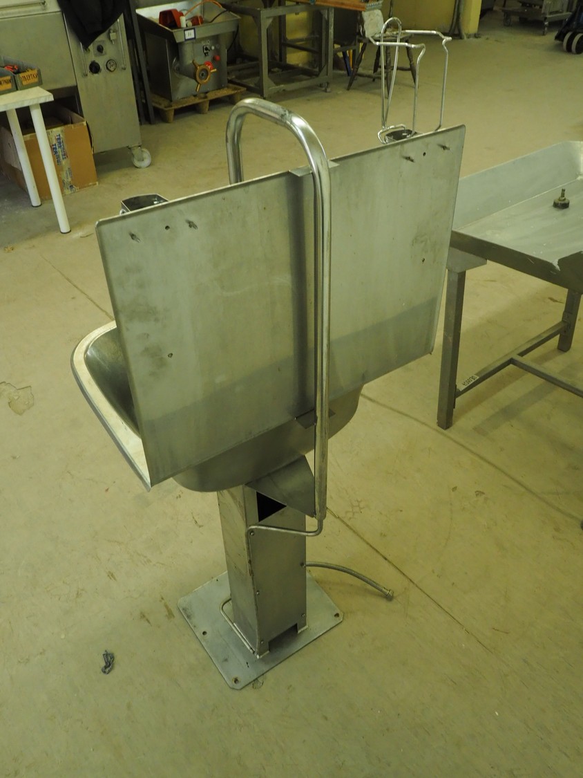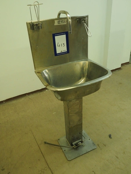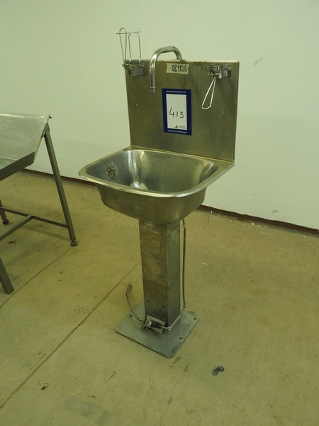 S/s sink, foot control, dimensions: 560 mm x 440 mm x 1420 mm.
