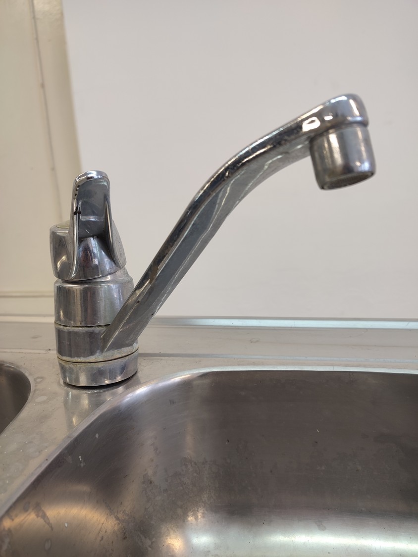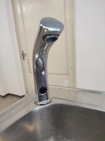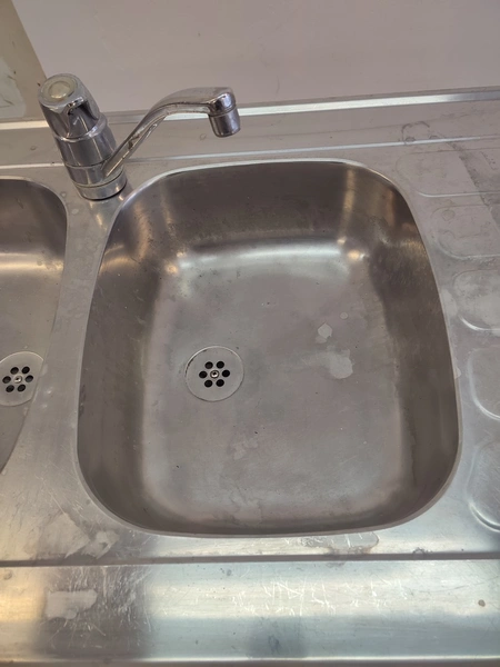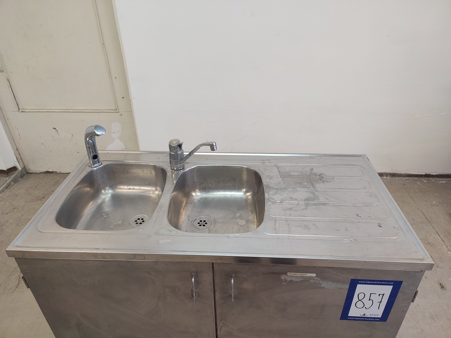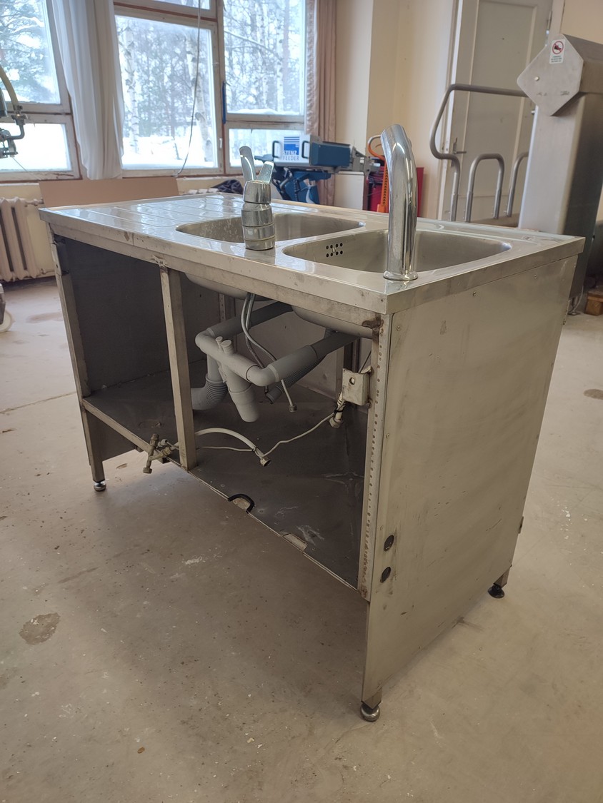 S/s cabinet with double sink, dimensions: 1200 mm x 600 mm x 1100 mm.