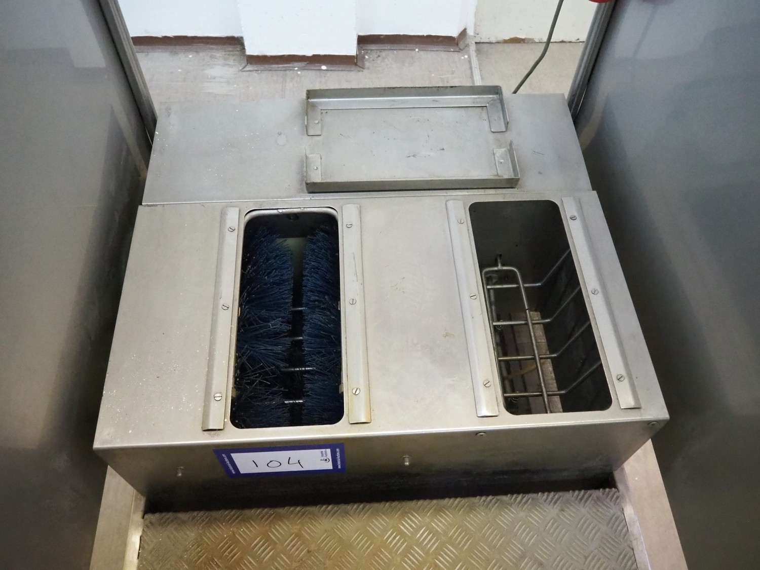 Sole cleaner, dimensions: 950 mm x 1200 mm x 1600 mm. Technical condition unknown, missing 2 brushes.