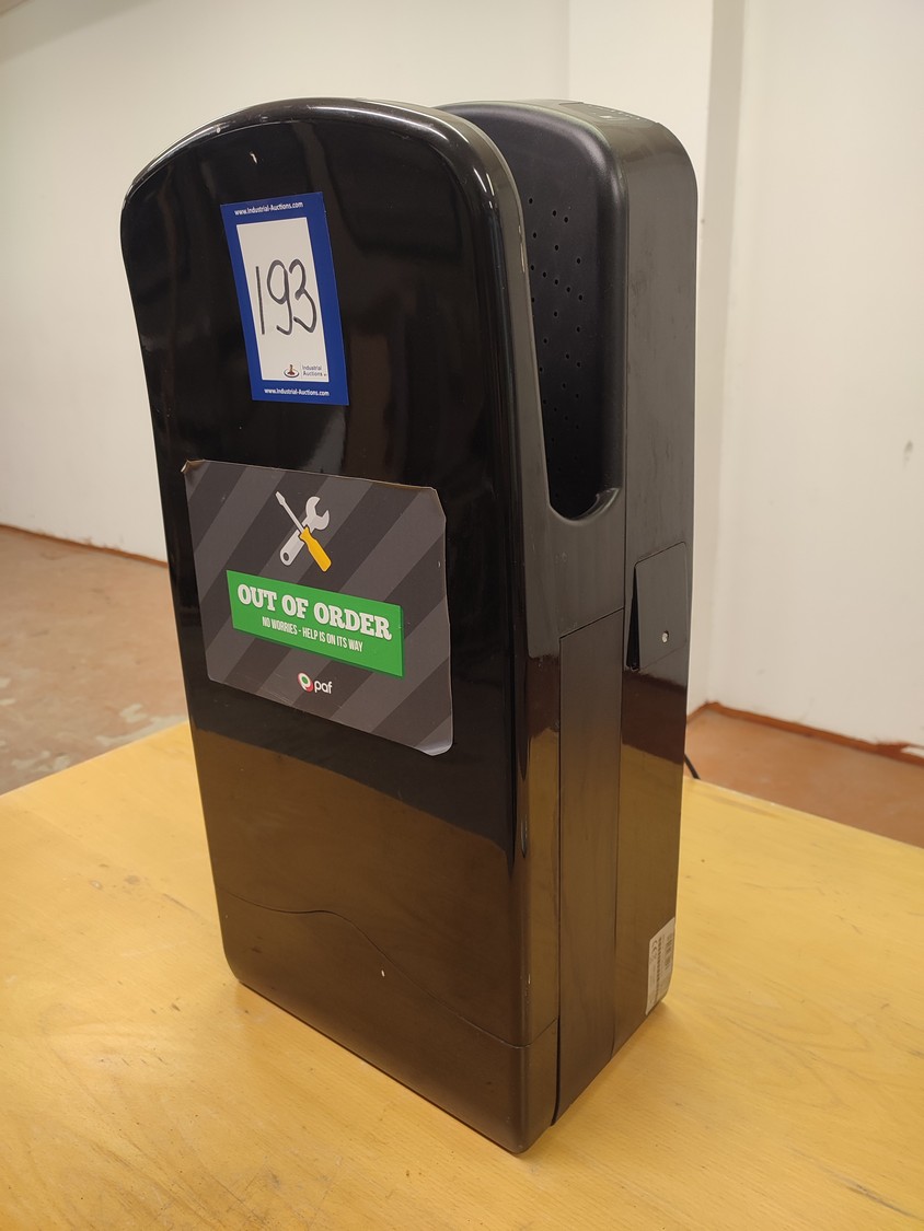 Veltia hand dryer, model: HD, product number: 8436037631243, serial number: 0121082NBL0002, year of construction: 08/03/2012, 220-240 V, 50/60 Hz, 1760 W, dimensions: 290 mm x 185 mm x 615 mm.