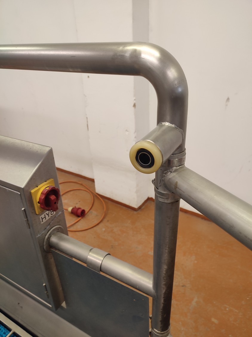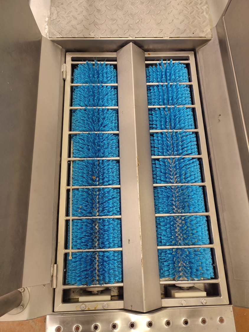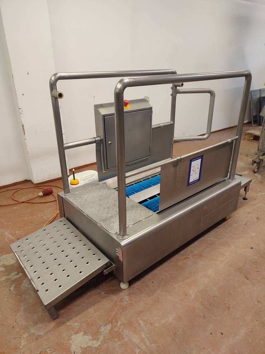 Hocker sole cleaner, type: DSOWM-800, machine number: 1121390-1, 400 V, 3 Ph, 2 x 0.25 kW, brush length: (2x) 750 mm, total dimensions: 2100 mm x 1060 mm x 1200.