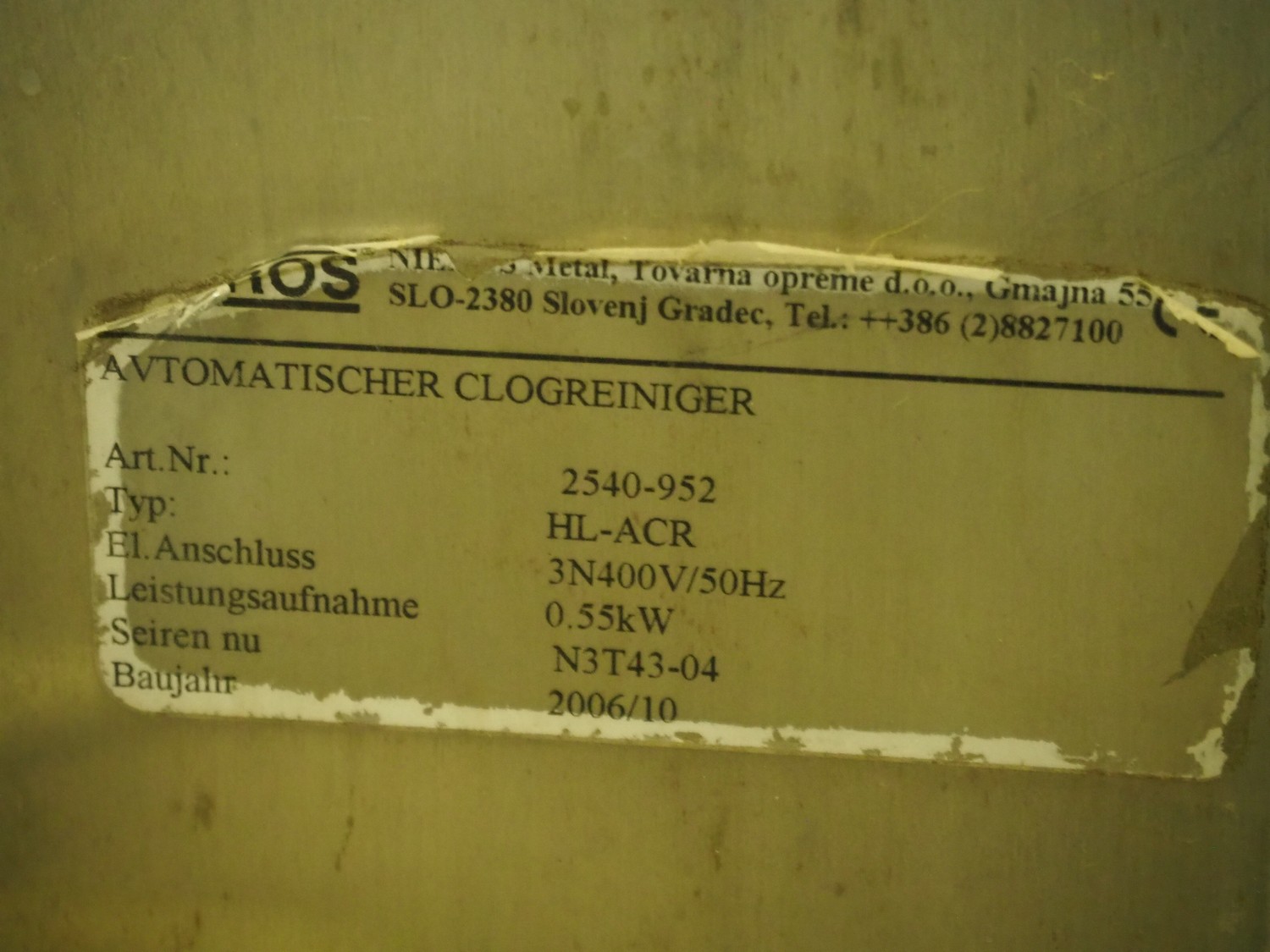 Nieros sole cleaner, type: HL-ACR, serial number: N3T43-04, year of construction: 2006/10, 400 V, 3 Ph, 50 Hz, 0.55 kW, brush width: 140 mm, brush length: 450 mm, total dimensions: 820 mm x 800 mm x 1240 mm.
