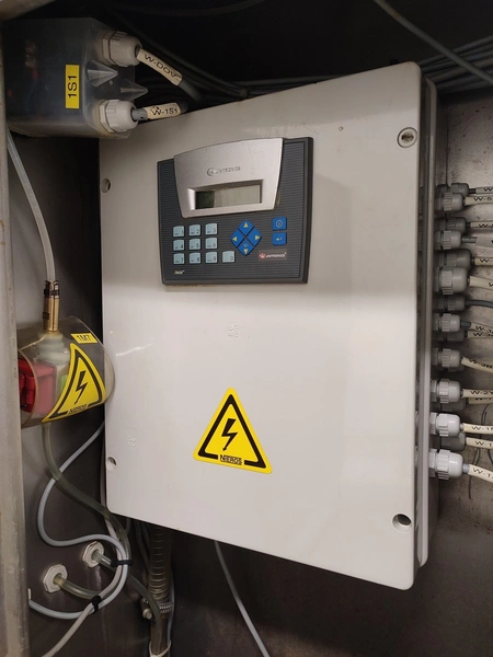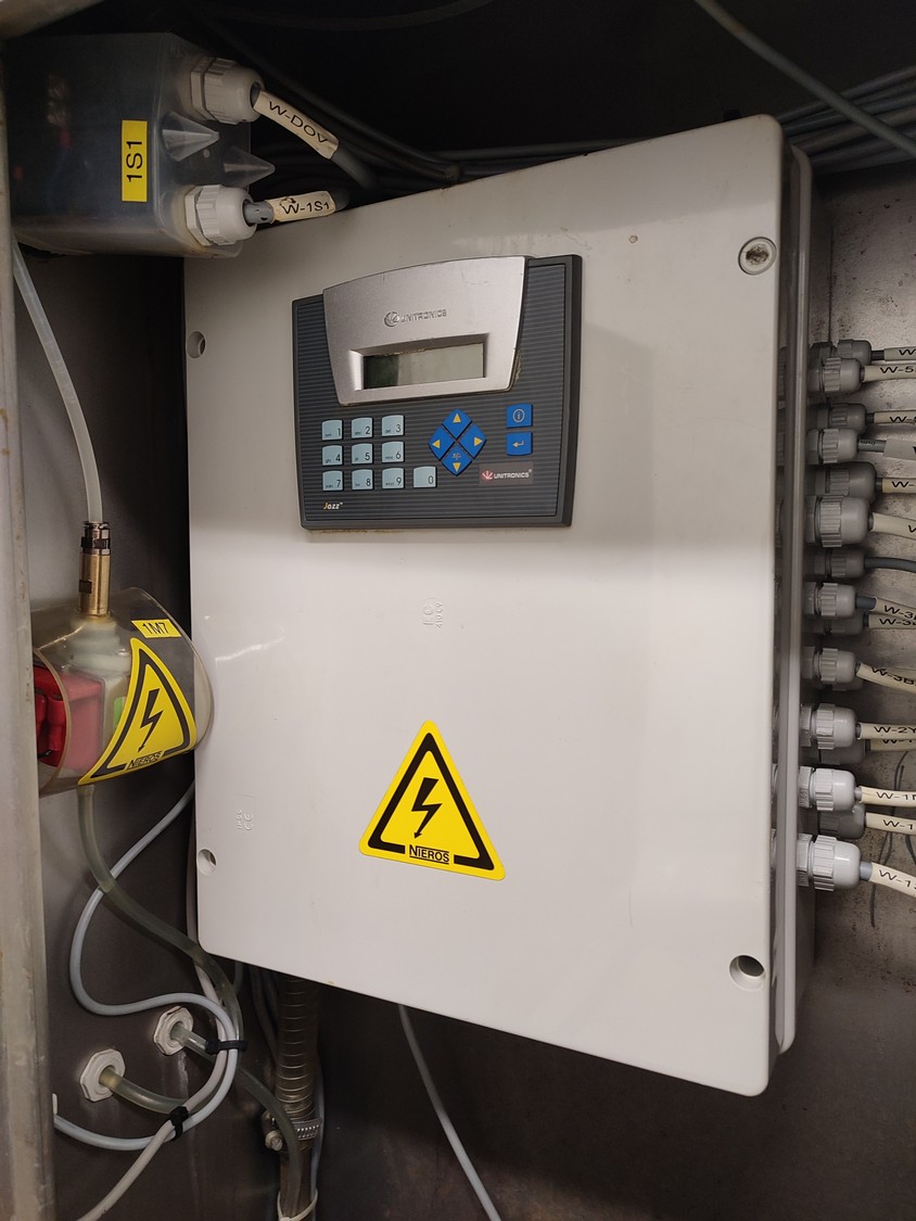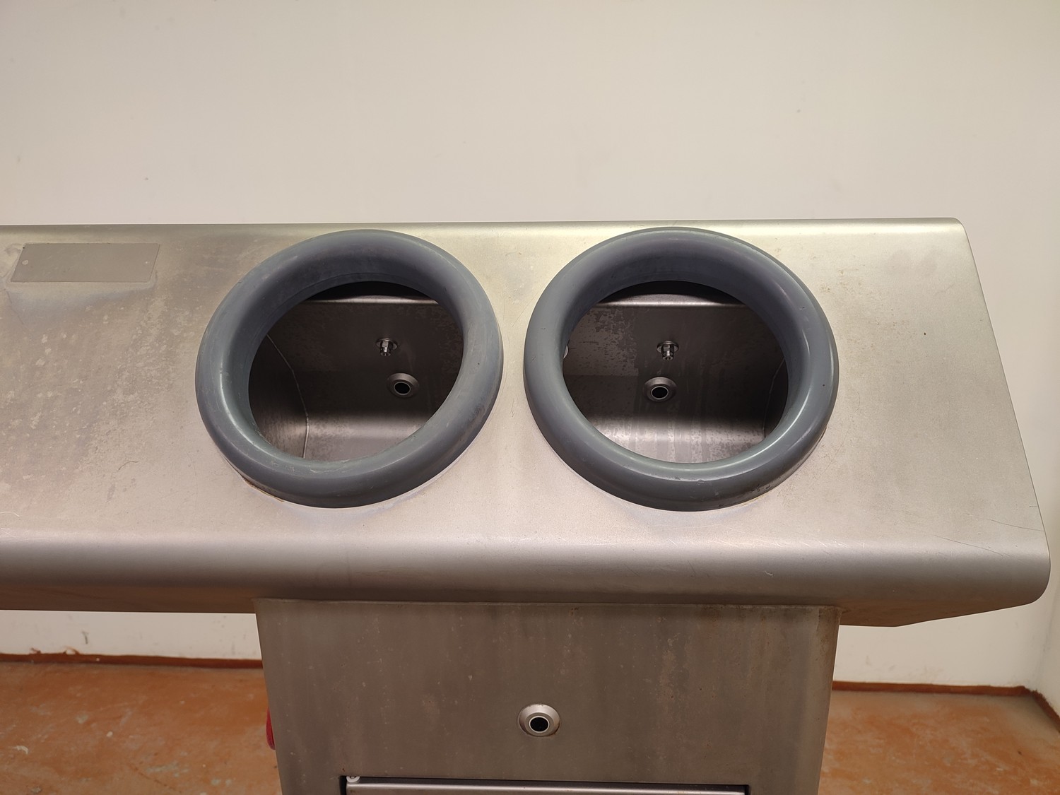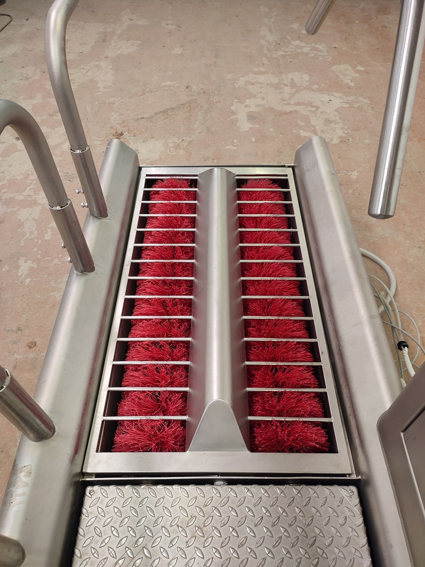 Nieros hygiene station with sole cleaner, tourniquet and hand disinfection, type: URK, serial number: N3F14-20, year of construction: 04/2015, 400 V, 3 Ph, 50 Hz, 0.71 kW, brush length: (2x) 900 mm, total dimensions: 1880 mm x 1000 mm x 1600 mm.