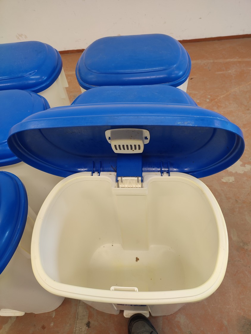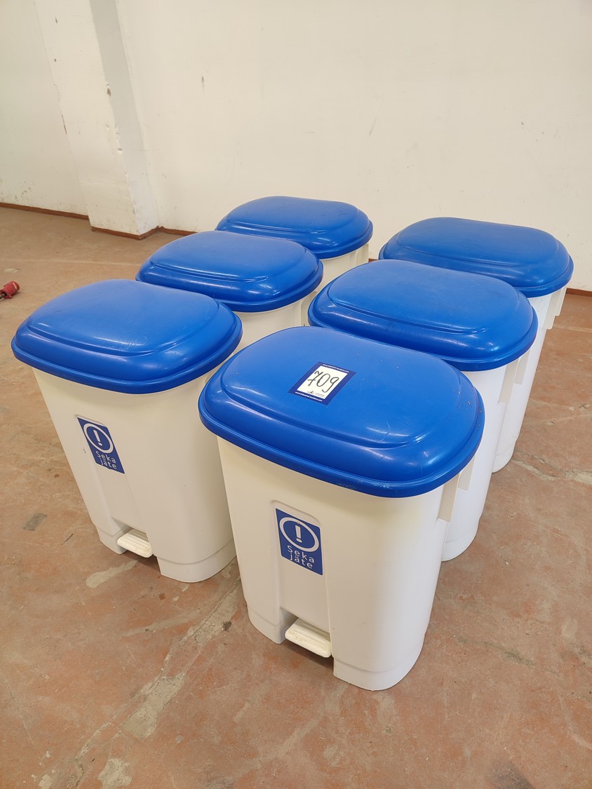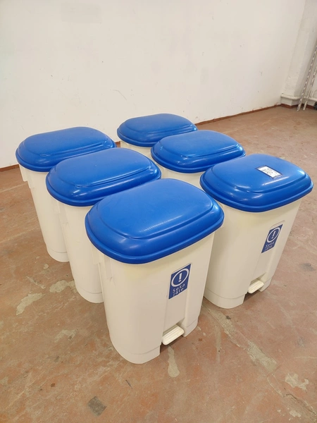 6 plastic trash cans, dimensions: (6x) 520 mm x 380 mm x 670 mm.