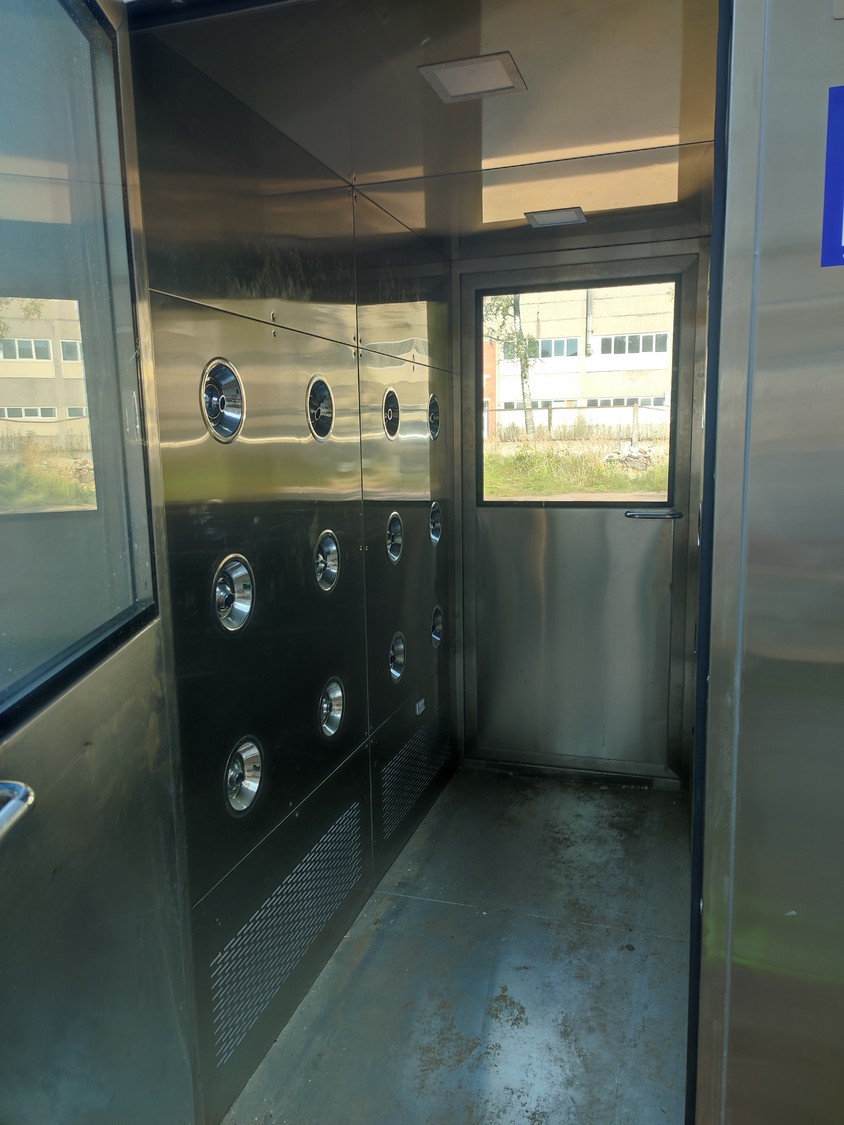Cleanroom air shower, dimensions: 1500 mm x 2530 mm x 2270 mm.