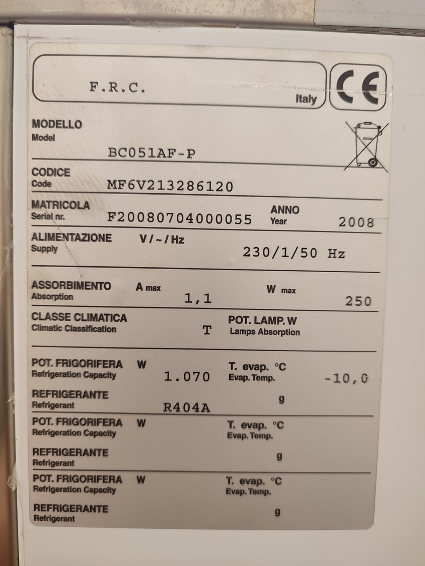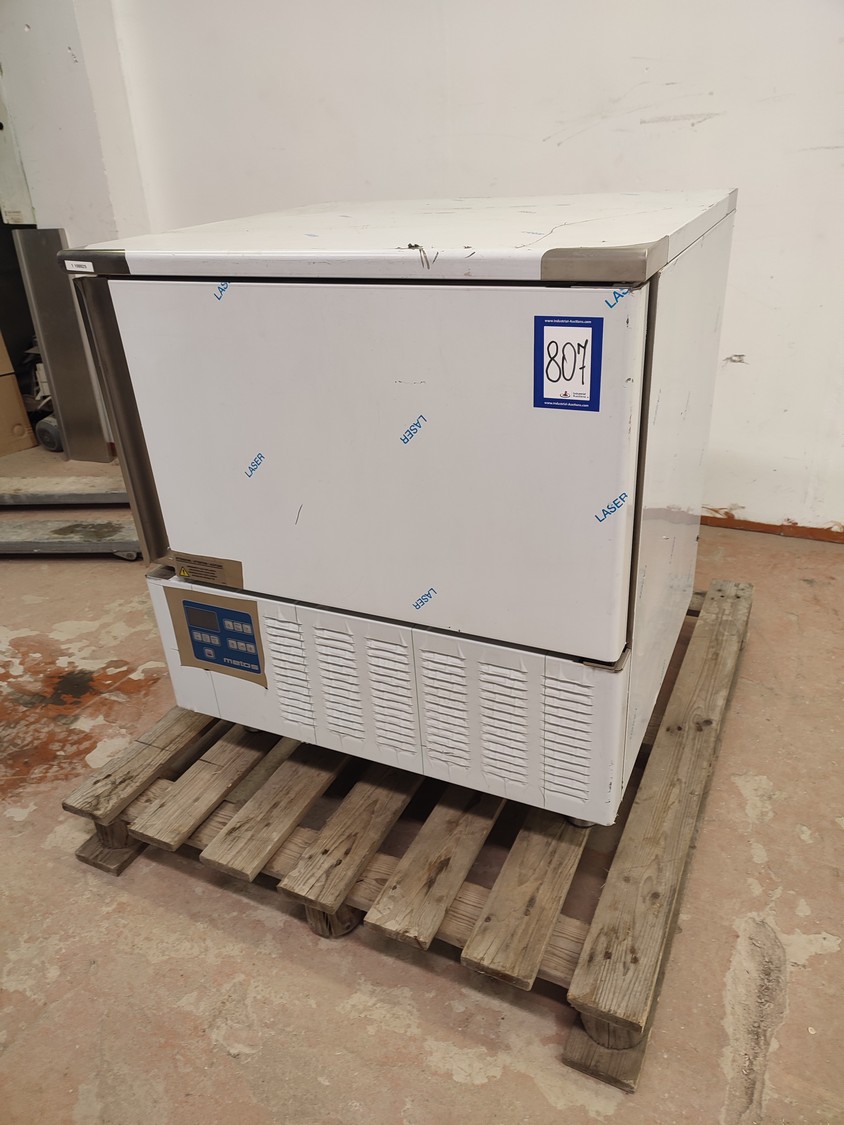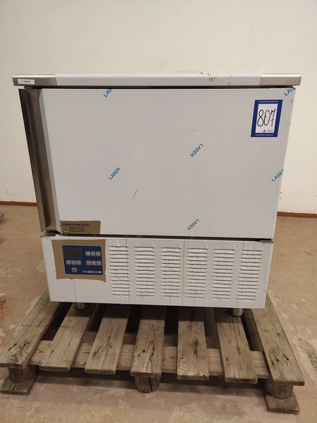Metos F.R.C. blast chiller, model: BC051AF-P, serial number: F20080704000055, year of construction: 2008, 230 V, 1 Ph, 50 Hz, 1.1 A, 250 W, refrigerant: R404A, 5 floors, dimensions each floor: 600 mm x 370 mm, total dimensions: 790 mm x 700 mm x 880 mm.