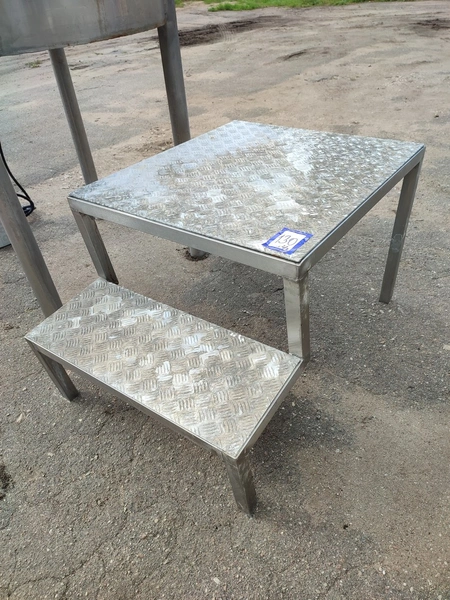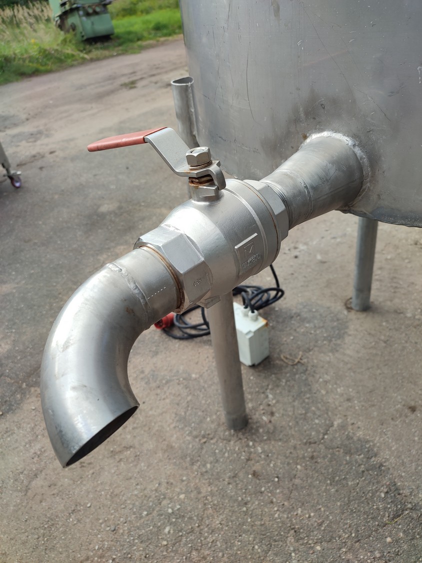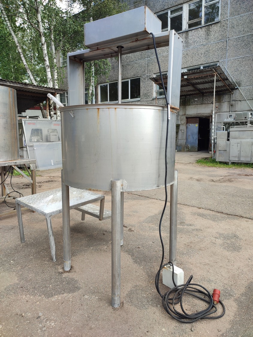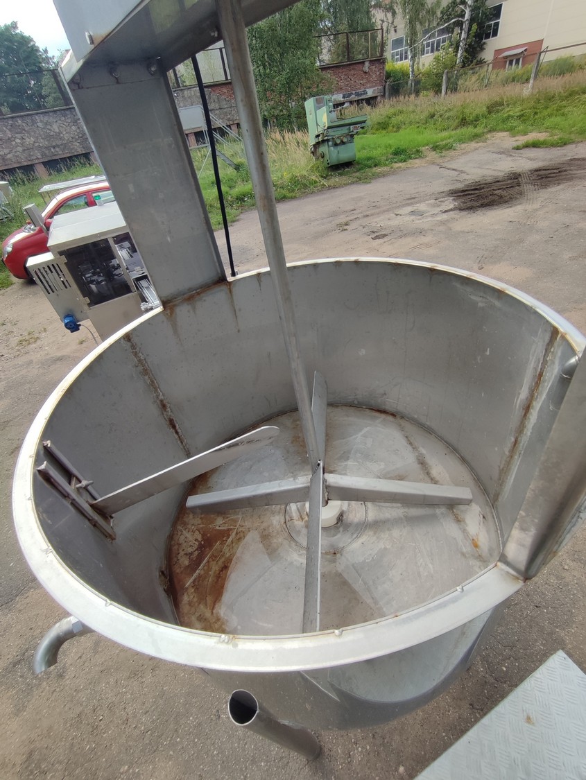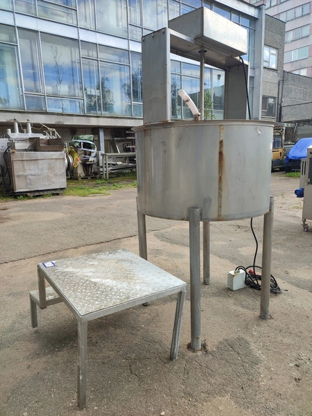 Brine mixer, inside dimensions: Ø 1150 mm x 700 mm, total dimensions: 1180 mm x 1550 mm x 2500 mm. Including s/s stairs, dimensions: 750 mm x 1110 mm x 610 mm.