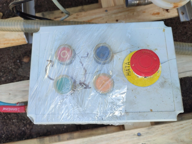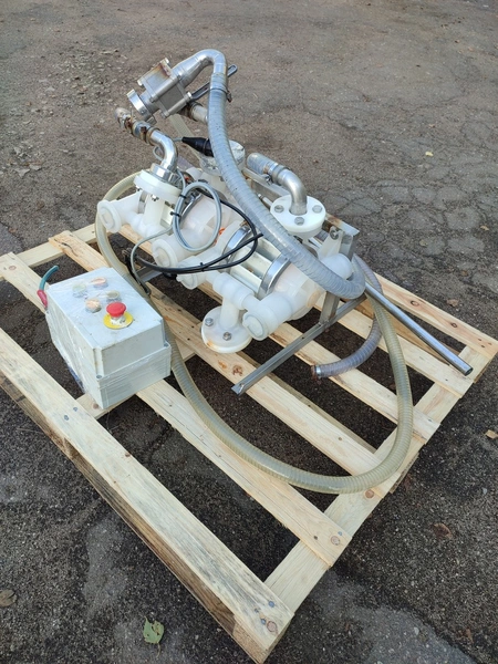 Brine dispenser, inside dimensions: Ø 1100 mm x 1200 mm, total dimensions: 1700 mm x 1300 mm x 2400 mm.