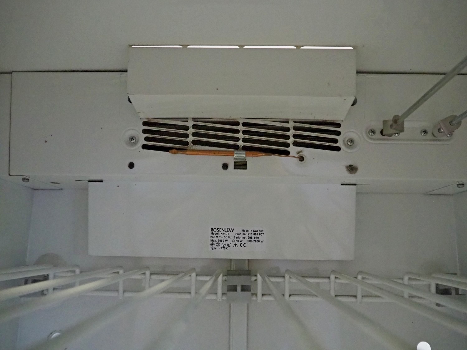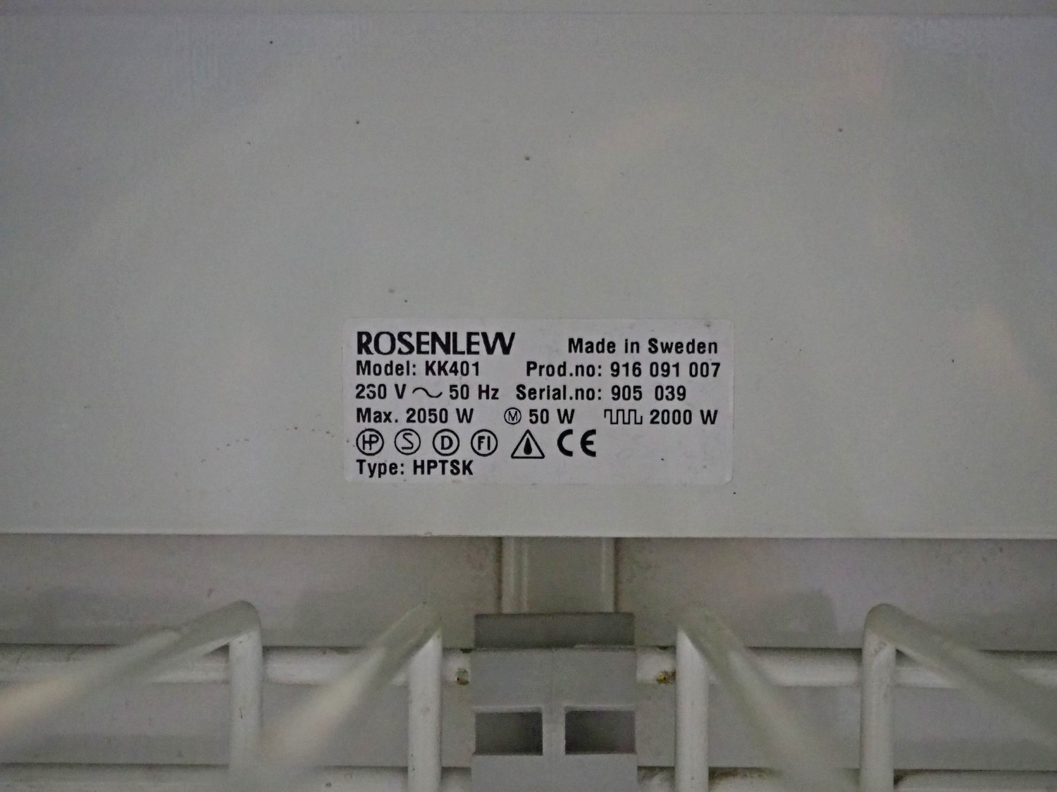 Rosenlew drying cabinet, model: KK401, serial number: 905 039, 230 V, 50 Hz, 2050 W, 4 floors, floor dimensions: 550 mm x 500 mm, total dimensions: 600 mm x 600 mm x 1860 mm.