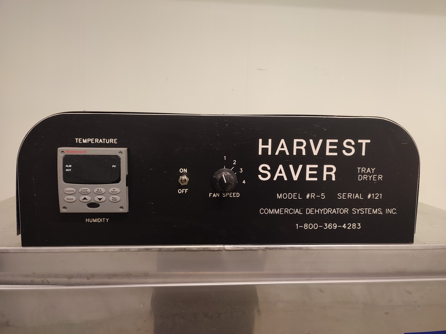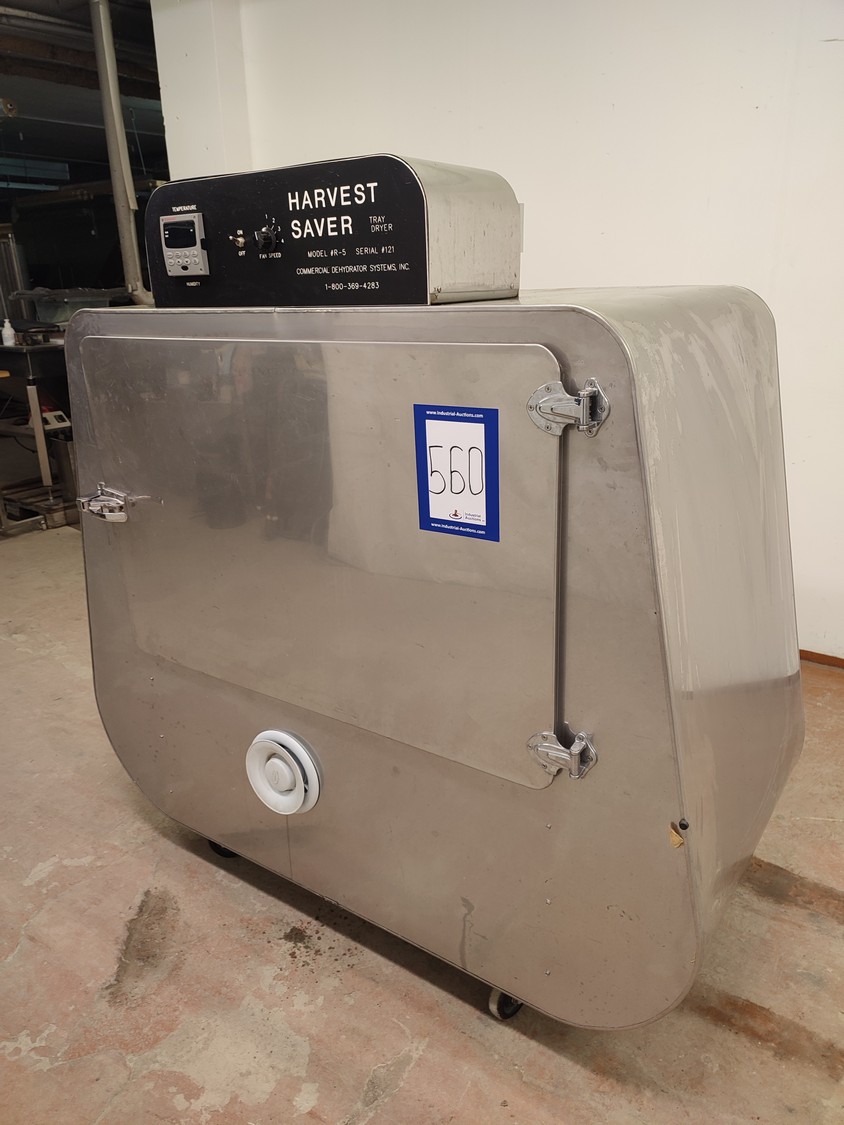 Harvest Saver tray dryer, model: #R-5, serial number: #121, 15 floors, floor dimensions: 980 mm x 610 mm x 45 mm, total dimensions: 1530 mm x 850 mm x 1550 mm.