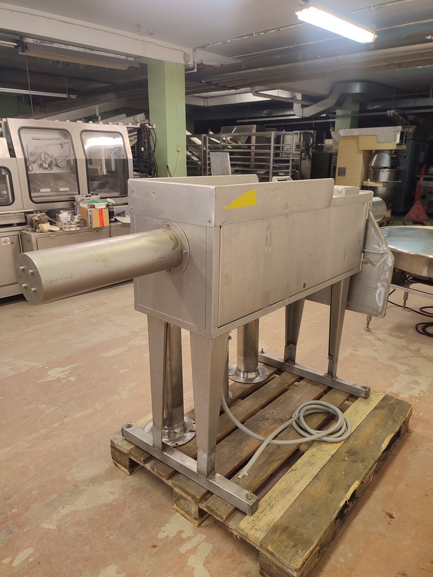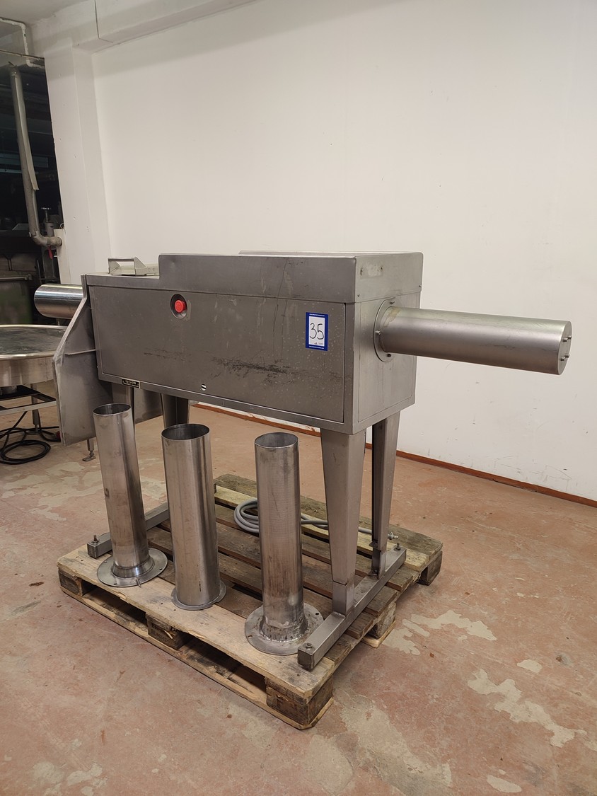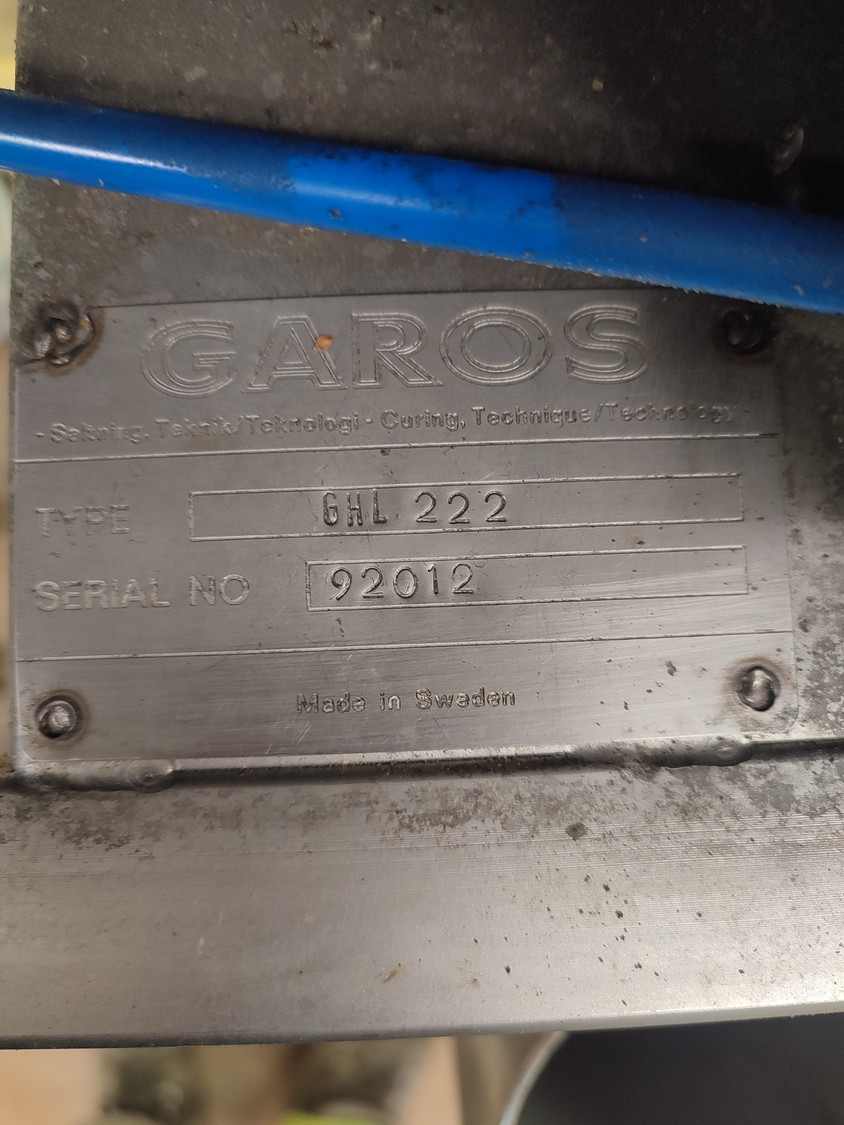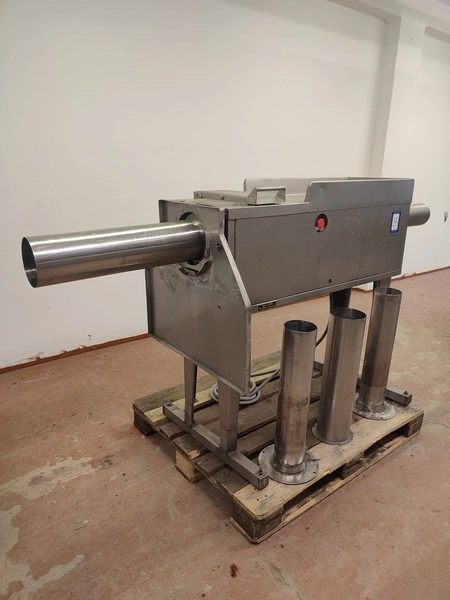 Garos meat press, type: GHL 222, serial number: 92012, dimensions chamber: Ø 120 mm x 360 mm, total dimensions: 2250 mm x 710 mm x 1155 mm.