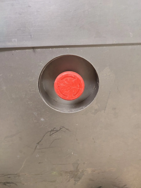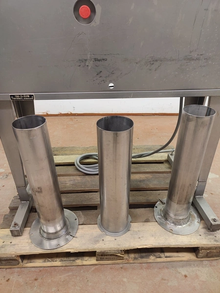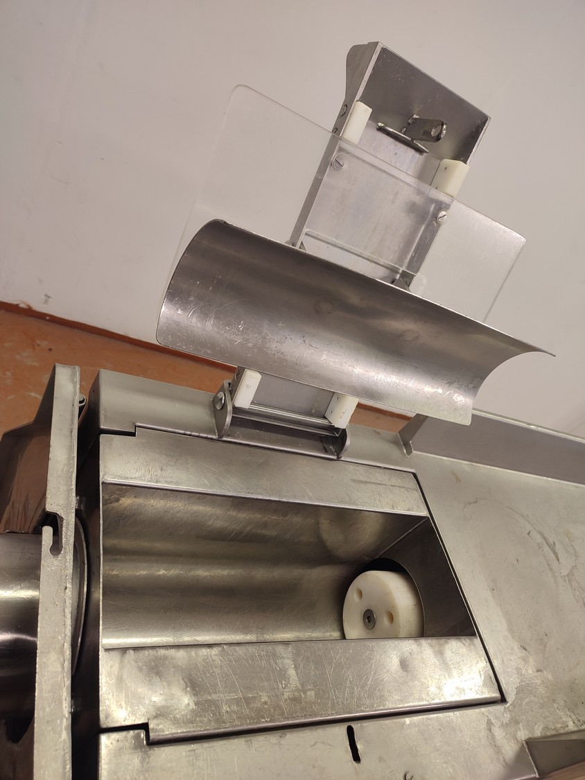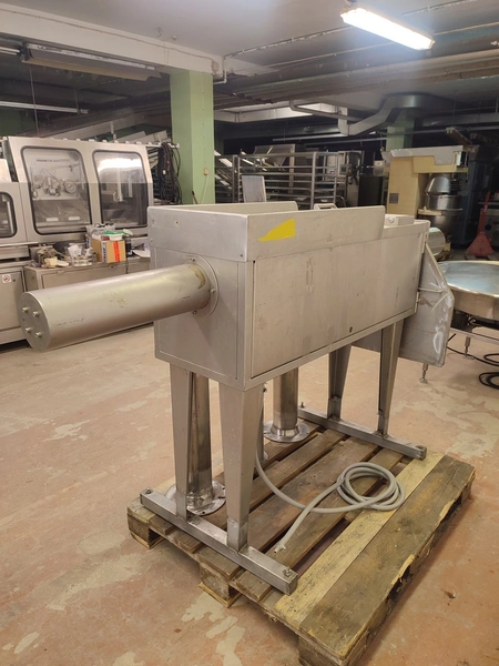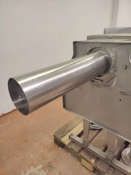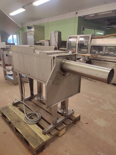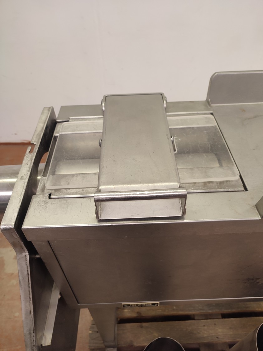 Garos meat press, type: GHL 222, serial number: 92012, dimensions chamber: Ø 120 mm x 360 mm, total dimensions: 2250 mm x 710 mm x 1155 mm.
