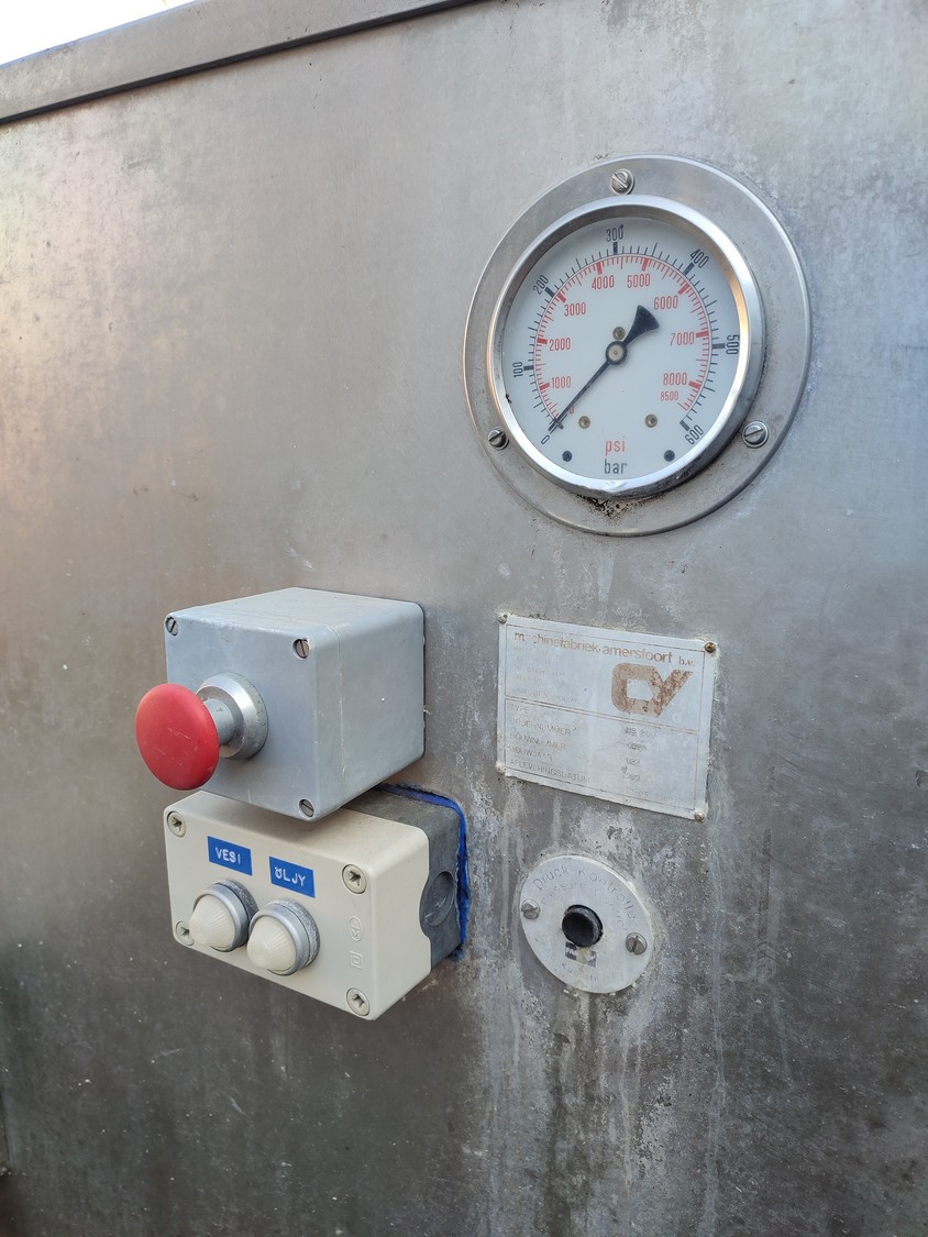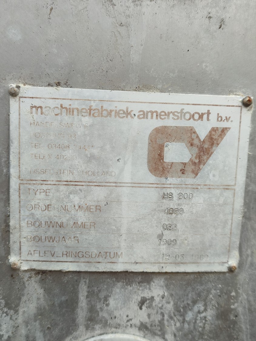 Machinefabriek Amersfoort b.v. bone separator, type: HS 200, number: 022, year of construction: 1989, dimensions: 5030 mm x 1400 mm x 2300 mm. Including s/s tool trolley, dimensions tool trolley: 660 mm x 560 mm x 760 mm.