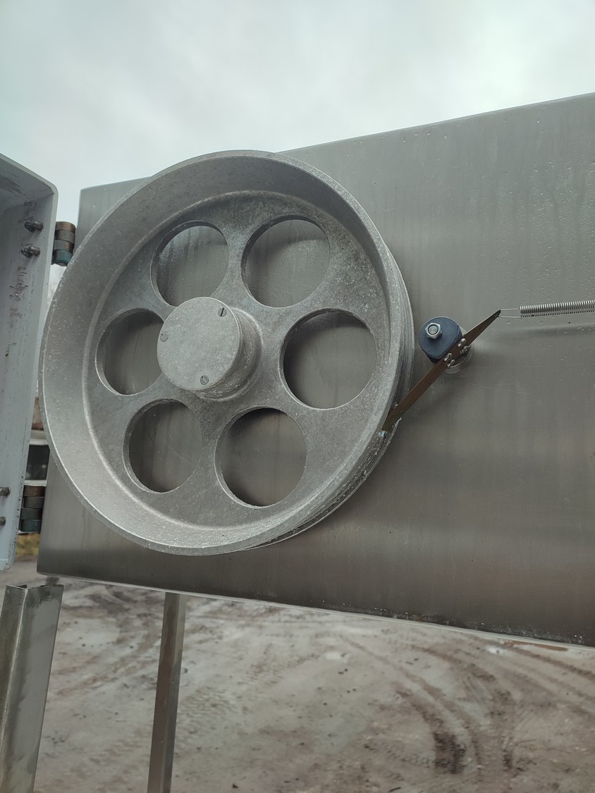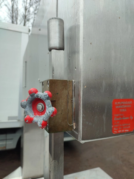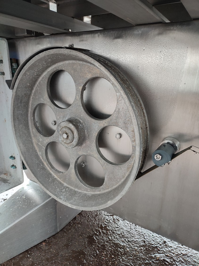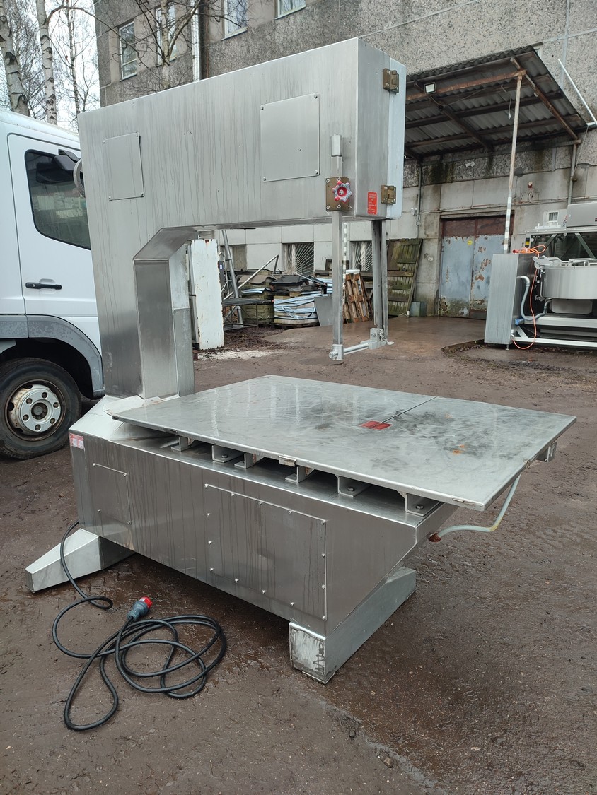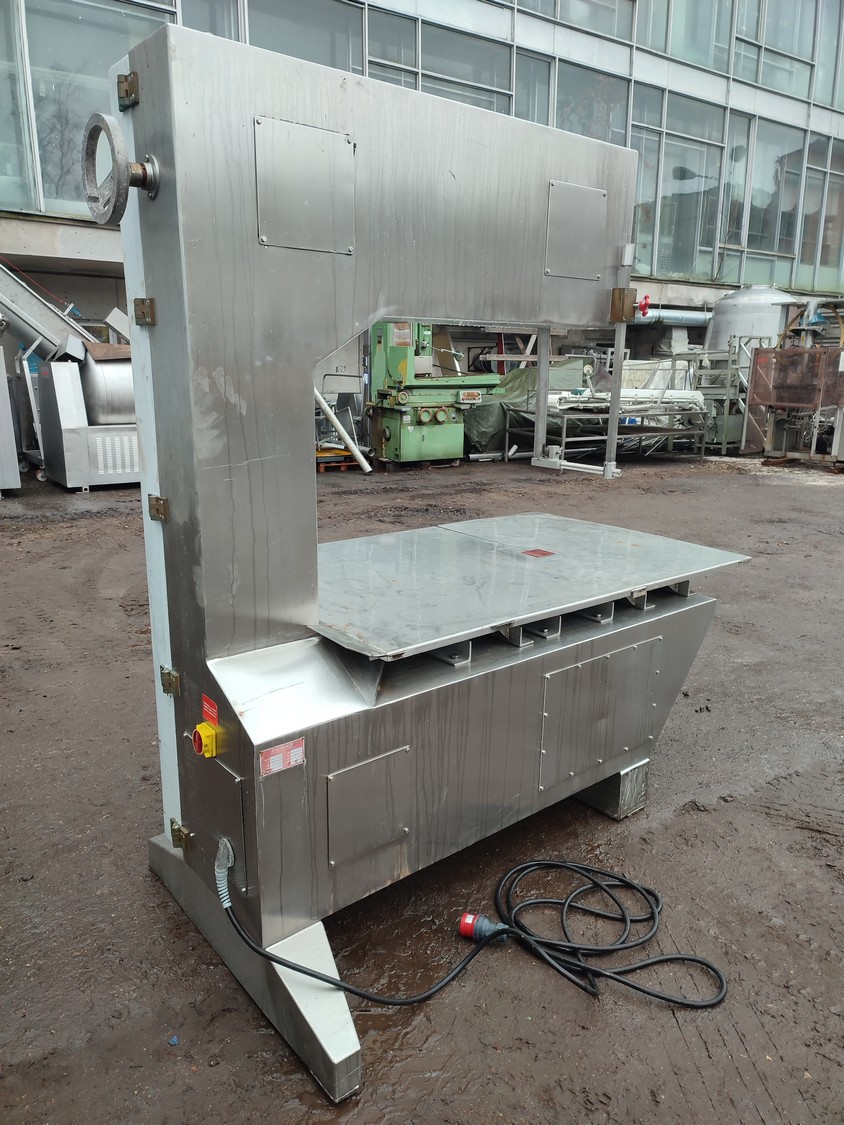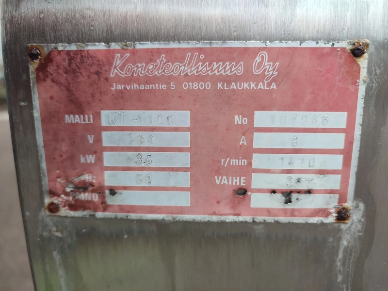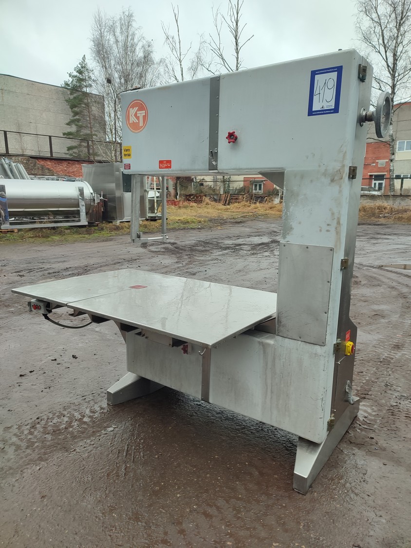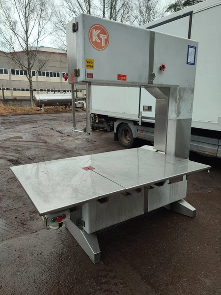 Koneteollisuus Oy bandsaw, model: KT-1100, number: 107966, 380 V, 3 Ph, 50 Hz, 8 A, 3.5 kW, dimensions table: 1650 mm x 1060 mm, total dimensions: 2100 mm x 1400 mm x 2100 mm.