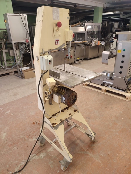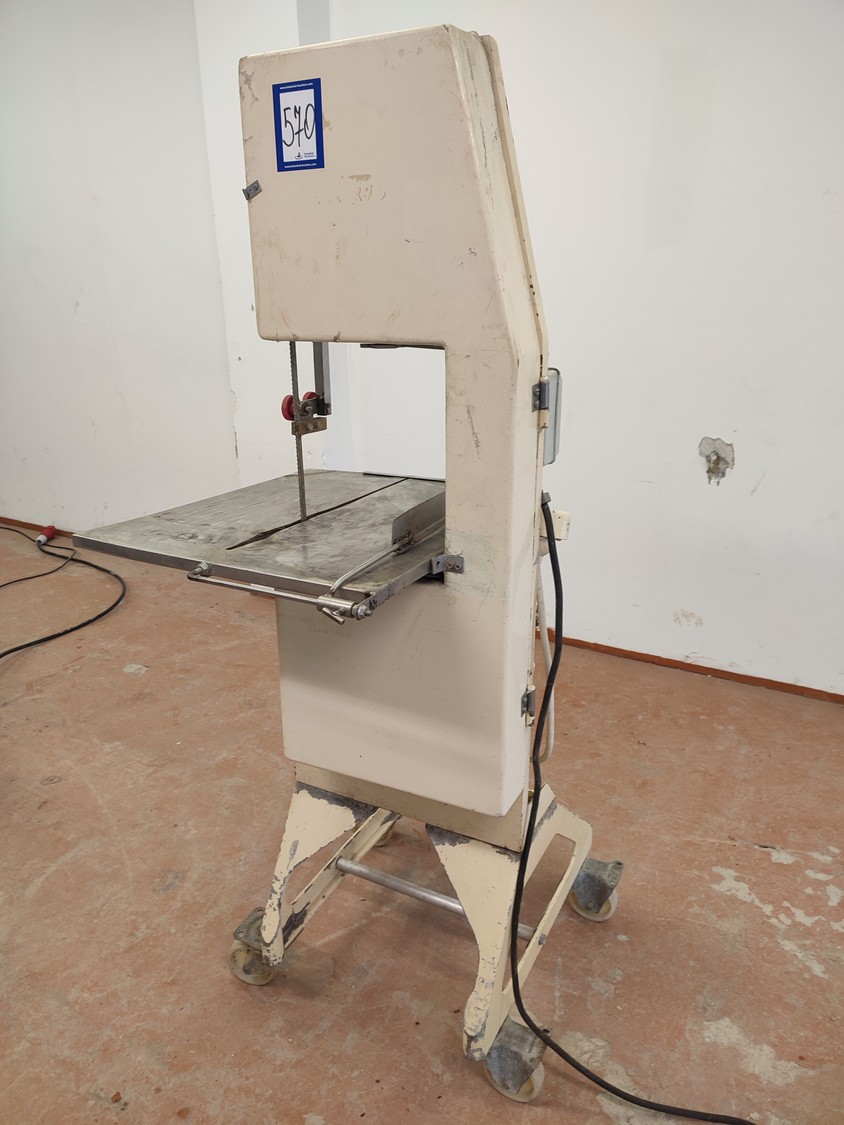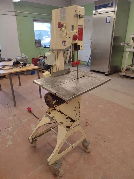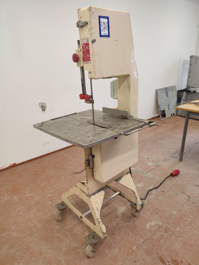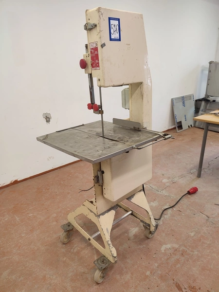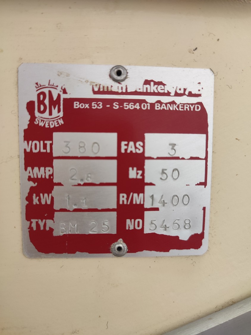 Bankeryds Maskin AB mobile band saw, type: BM 25, number: 5468, 380 V, 3 Ph, 50 Hz, 2.8 A, 1.1 kW, dimensions table 520 mm x 600 mm, total dimensions 720 mm x 700 mm x 1600 mm.