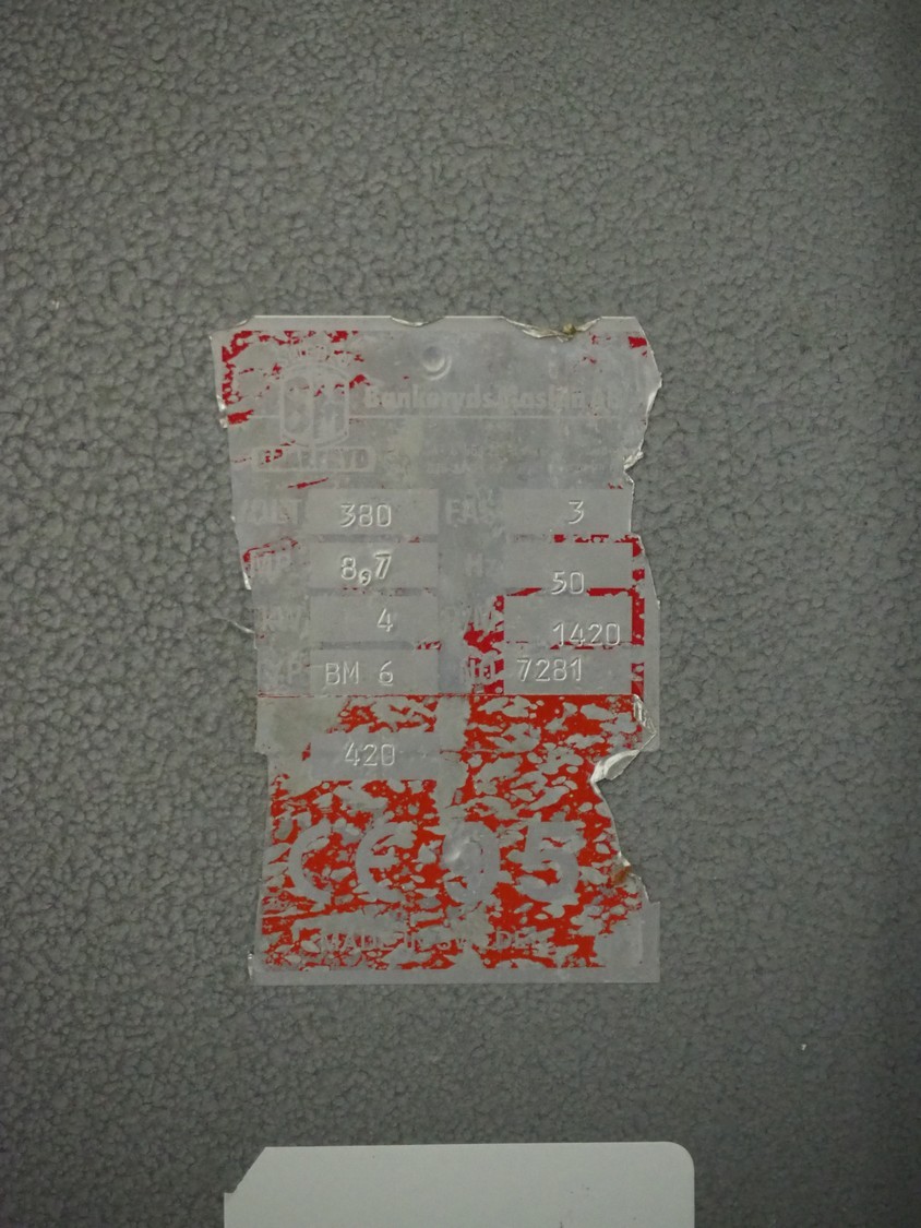 Bankeryds Maskin AB bandsaw, type: BM 6, number: 7281, 380 V, 3 Ph, 50 Hz, 4 kW, 1420 rpm.