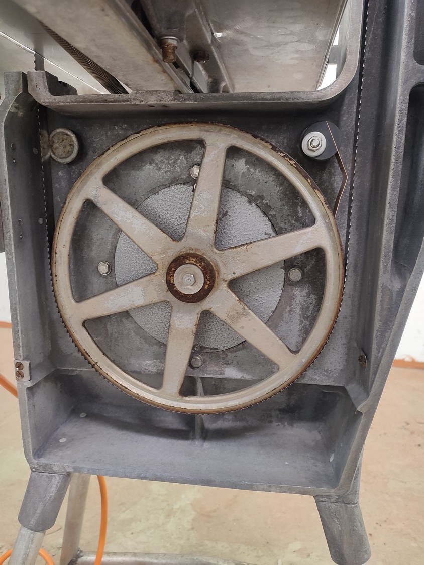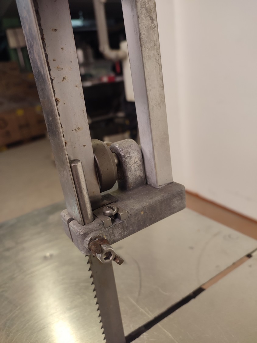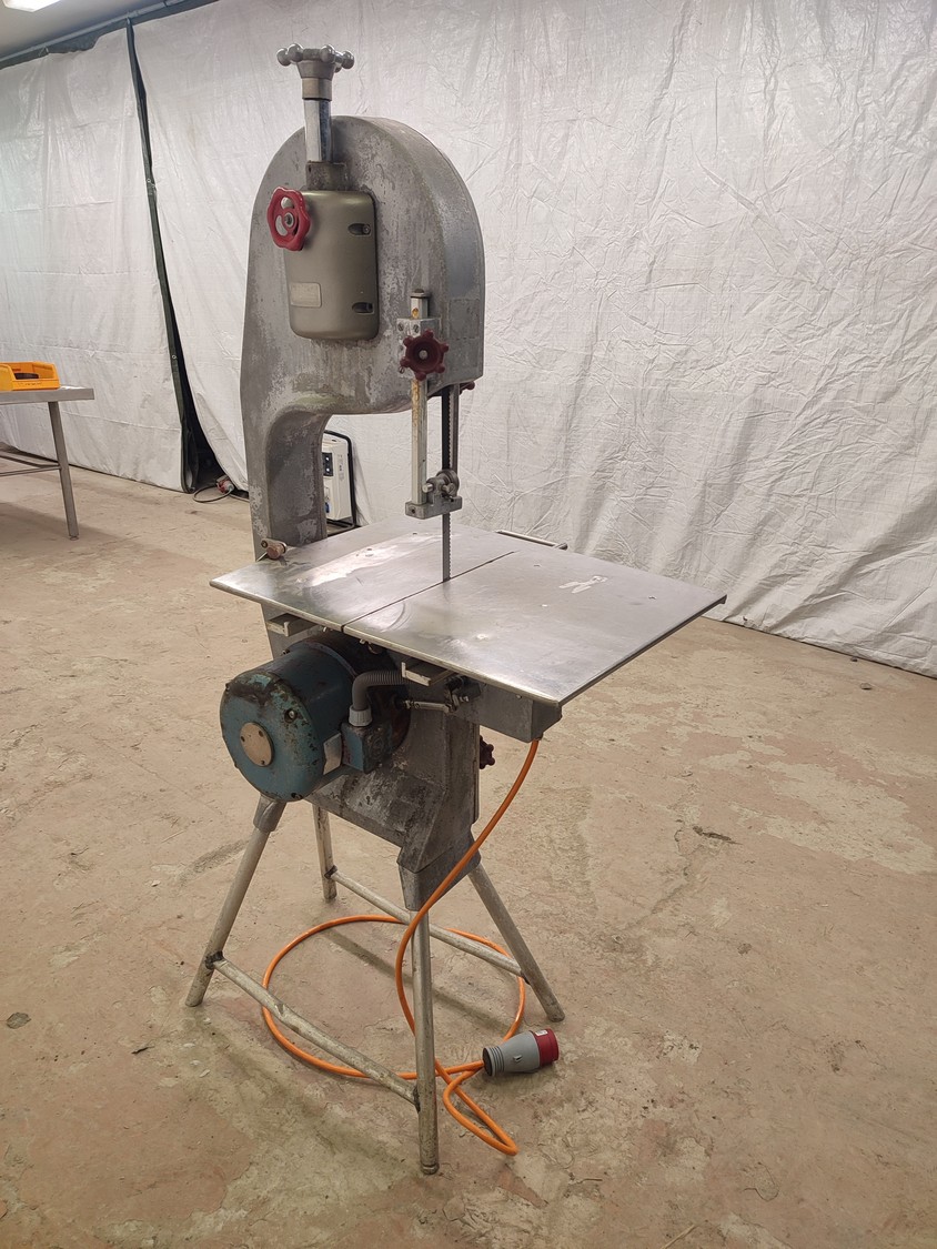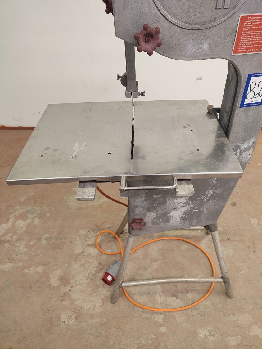 Koneteollisuus OY band saw, model: KT-325, dimensions saw table: 650 mm x 480 mm, total dimensions: 800 mm x 580 mm x 1670 mm.