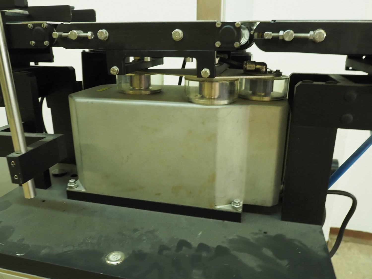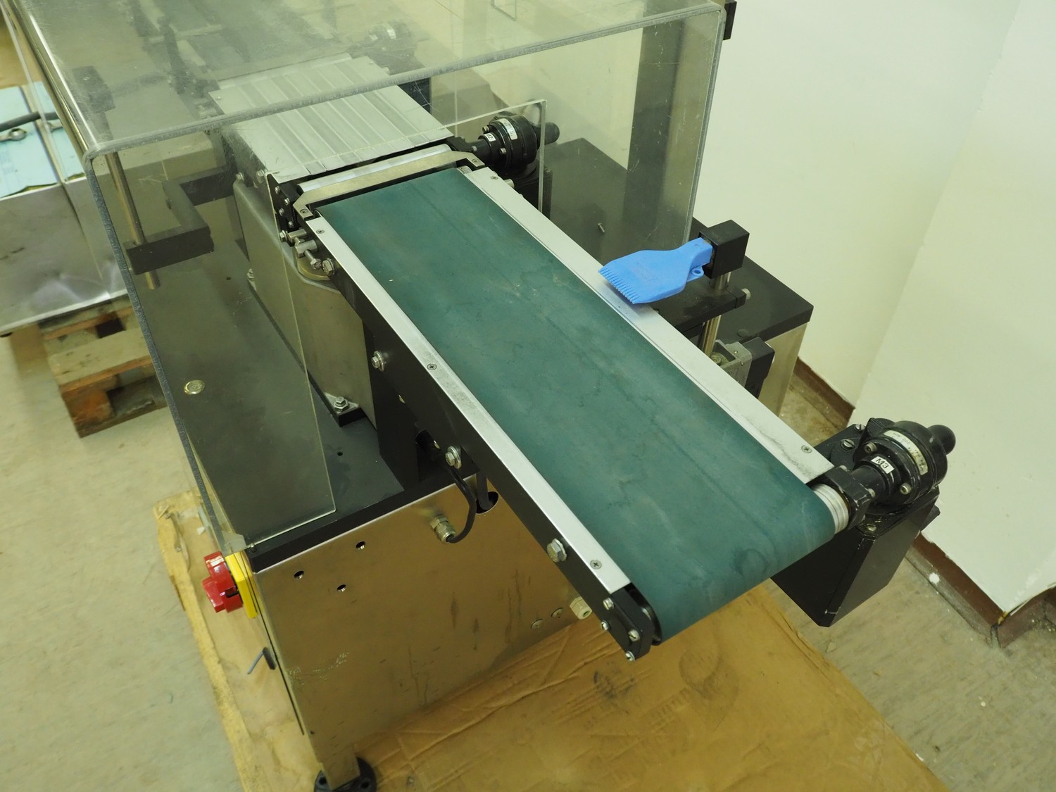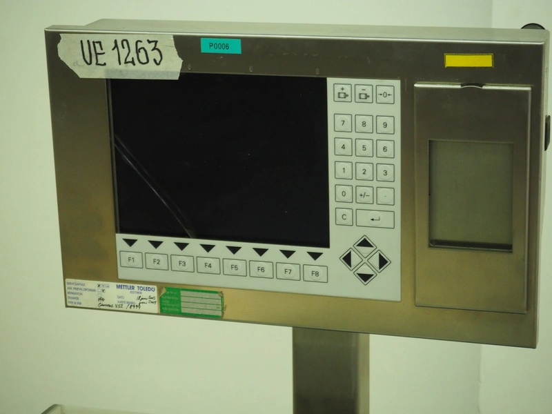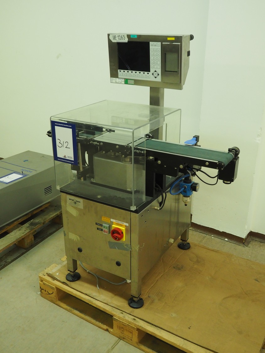 Garvens Automation GmbH checkweigher, type: VS 2, serial number: 8999, year of construction: 1995, 230 V, 50 Hz, capacity: 200 gram, plastic belt, belt width: (2x) 120 mm, total dimensions: 930 mm x 700 mm x 1250 mm. Incomplete, 1 missing belt.